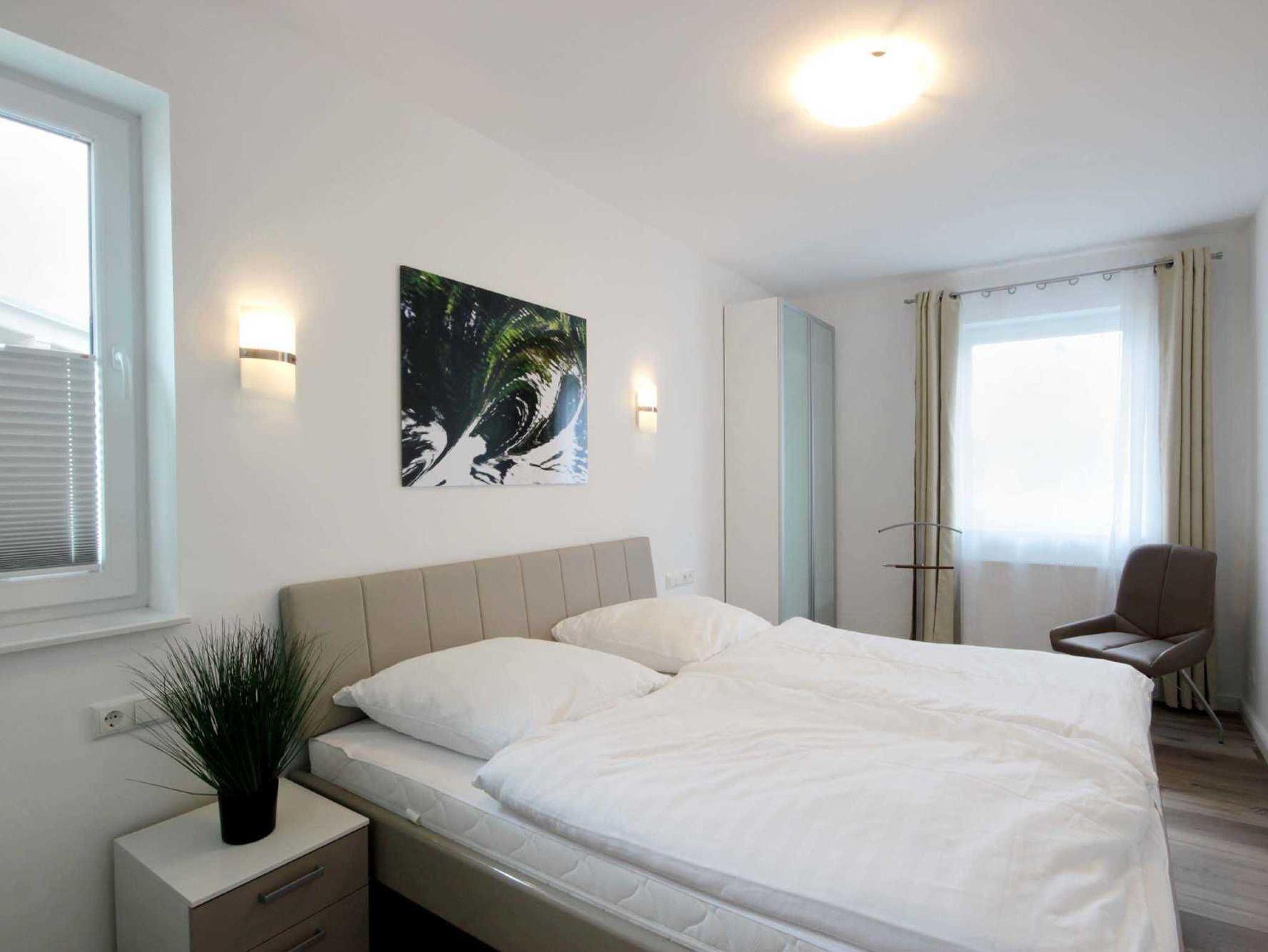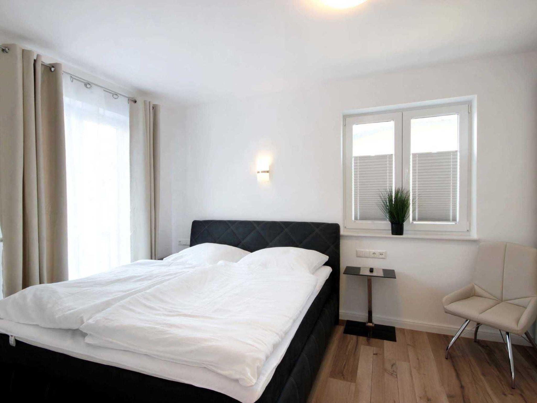 Über eine Treppe gelangen Sie in das Obergeschoss des Hauses mit 3 separaten Schlafzimmern. Hier erwarten Sie himmlische Träume in 2 gemütlichen Boxspringbetten und einem Standard-Doppelbett. In jedem Schlafraum befinden sich 1-2 Kleiderschränke. 2 Schlafräume haben einen weiteren Flachbildfernseher (43 Zoll). Ein Schlafzimmer verfügt über den direkten Zugang zum Balkon. Auf dieser Etage befindet sich nicht nur ein weiteres Tageslicht-Bad mit Dusche, Badewanne, Waschtisch und WC, sondern auch eine hauseigene Infrarotsauna (Münzbetrieb).