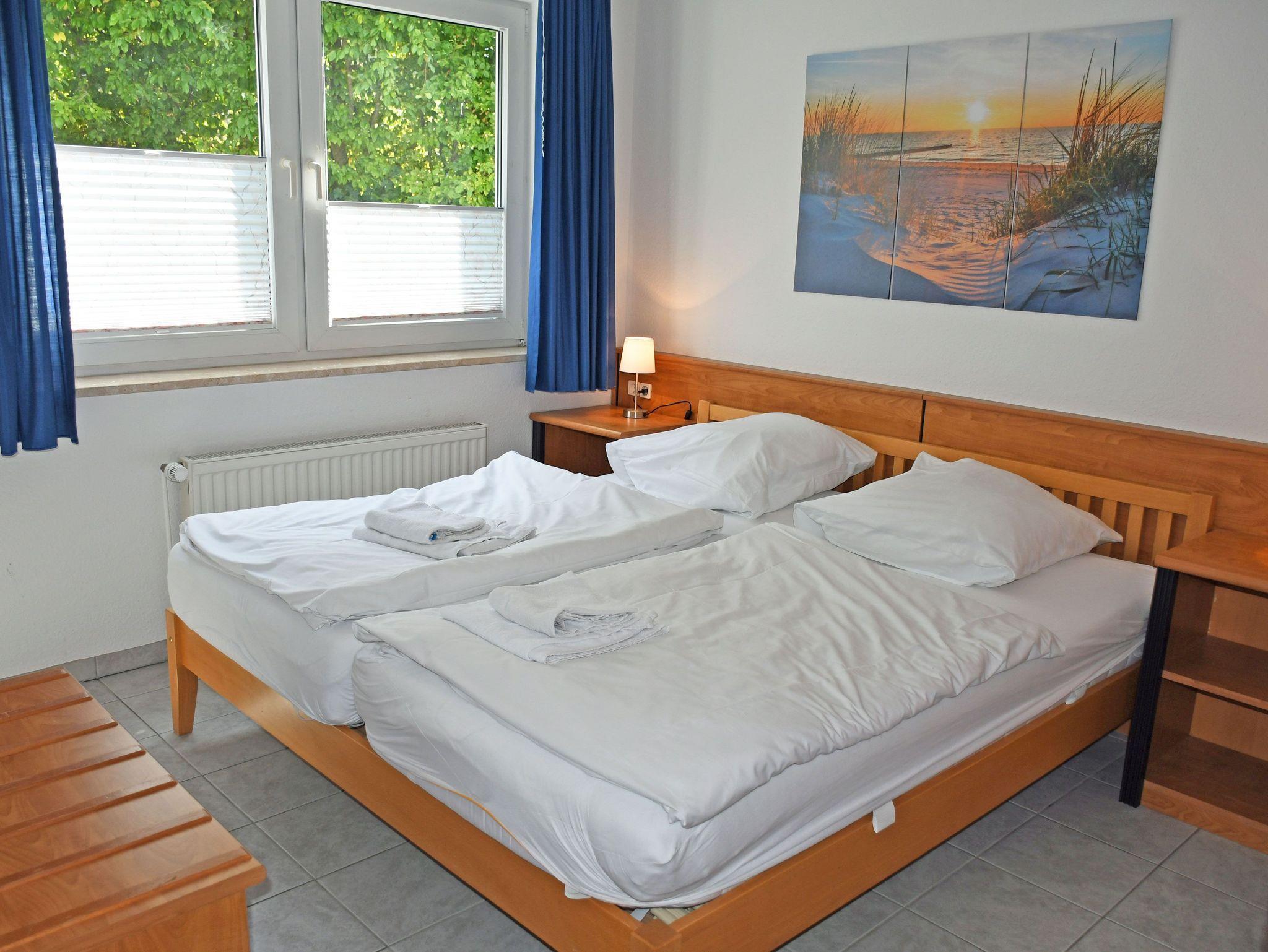 · Schlafzimmer mit einem Doppelbett (180 x 200 cm), Nachttischen und großem Kleiderschrank