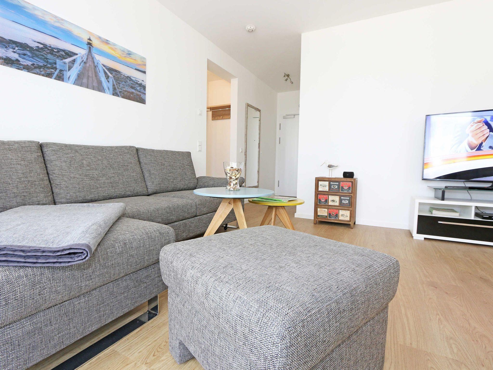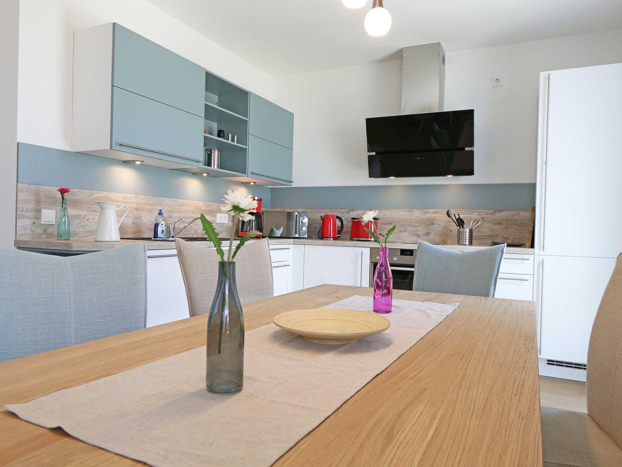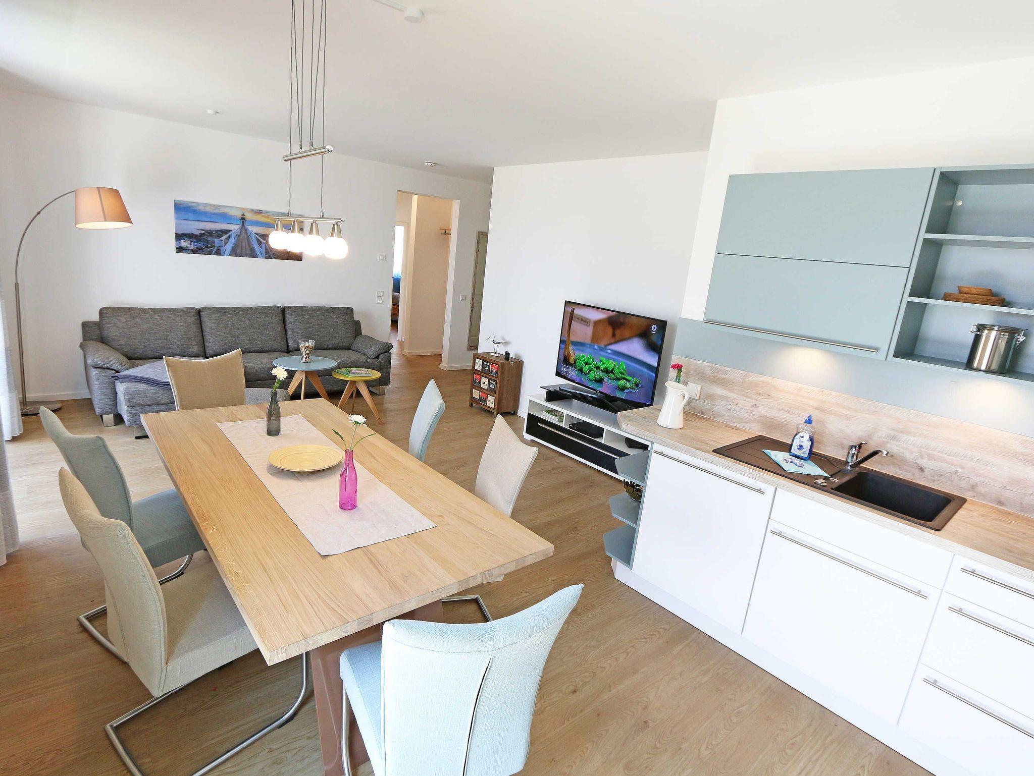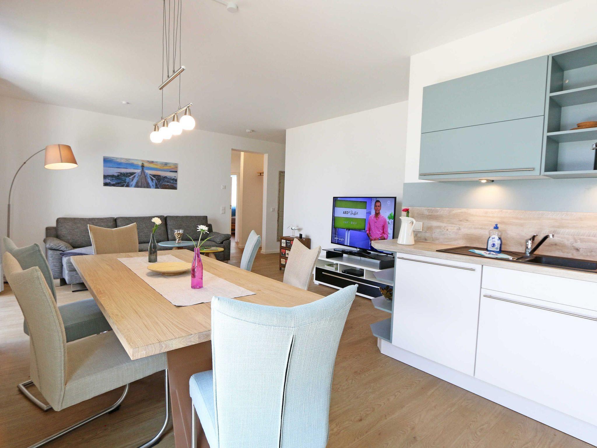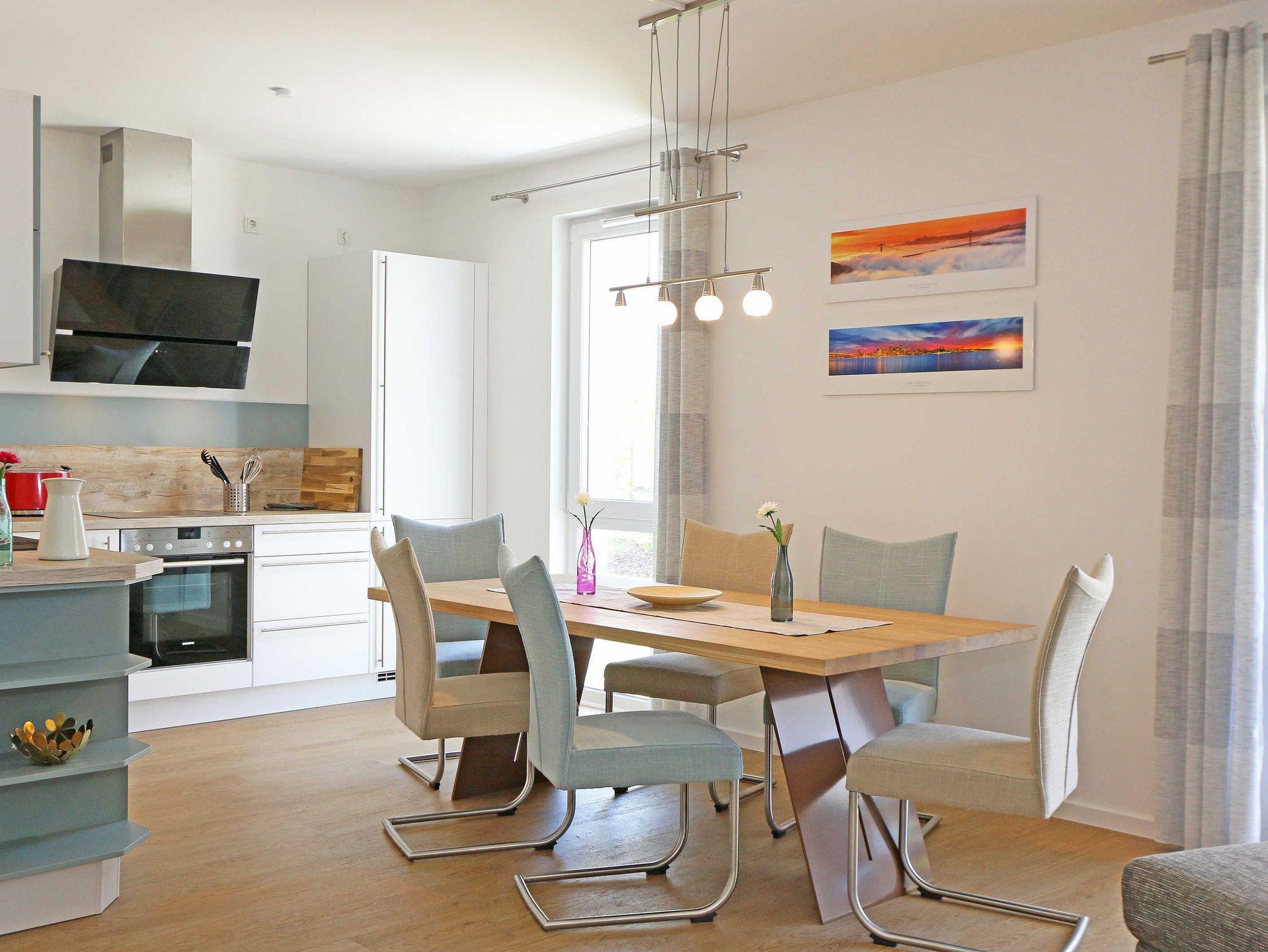 Die Wohnung Nr. 3 in der Villa Anni ist eine komfortable, ca. 83 m² große und stilvoll eingerichtete Nichtraucherferienwohnung im Erdgeschoss. Sie bietet mit ihren 3 Schlafzimmern ausreichend Platz für 5 Erwachsene + 1 Kleinkind bis 3 Jahre im Kinderreisebett. Zusätzlich kann auf die Couch im Wohnbereich zur Schlafcouch erweitert werden. Der kombinierte Wohn-/Koch- und Essbereich mit der modernen und integrierten Küchenzeile lässt mit Ceranfeld, Backofen, Geschirrspüler, Mikrowelle, Kühlschrank mit Gefrierfach, Kaffeemaschine, Senseo Padmaschine, Wasserkocher, Toaster und diversen Küchenutensilien keine Wünsche offen. Ein großzügiger Essbereich fügt sich der Küchenzeile an. Der offene Wohnbereich verfügt über eine gemütliche Sitzecke mit Couchtisch, eine Leselampe, ein Smart-TV, DAB-Radio, Heimkino mit LG 4K Laser Beamer und 100 Zoll Bilddiagonale, Quadral DTS 5.1 Soundsystem, einen Blu-Ray-Player sowie eine Hifi-Anlage mit Bluetooth sowie Internetradio. Auch auf einen Internetanschluss (WLAN) sowie einen Netflix Zugang, Amazon Prime, Disney+ und Sky Q mit folgenden Paketen: Serien und Dokus, Sport: Formel 1, Moto GP und Fußball Bundesliga Zugang müssen Sie in Ihrem Urlaub nicht verzichten. Dieses ist für Sie inklusive! Eine Auswahl an Gesellschaftsspielen, Blu Ray Sammlung und Urlaubslektüre sorgt für gelungene Abwechslung. Die nach Westen ausgerichtete, überdachte und bestuhlte Terrasse mit Sonnenschirm ist direkt vom Wohnbereich sowie aus einem Schlafzimmer aus zu erreichen. Das erste Schlafzimmer verfügt über ein Doppelbett mit Kaltschaummatratzen (1,60m x 2,00m / H3), Flachbild-TV, verstellbaren Lattenrosten, Nachttischablagen und einen Kleiderschrank. Das zweite Schlafzimmer verfügt über ein Doppelbett mit Kaltschaummatratzen (1,60m x 2,00m / H3), Nachttischablagen, Flachbild-TV und einen Kleiderschrank. Im dritten Schlafzimmer befindet sich ein Einzelbett (0,90m x 2,00m) mit Nachttischablage und einen Kleiderschrank. Zwei Bäder sind mit ebenerdigen Duschen, Waschplatz, WC, Kosmetikspiegel, Fön und Handtuchheizkörper ausgestattet. Ein Bad verfügt zusätzlich über eine Waschmaschine. Alle Räumlichkeiten sind mit Fußbodenheizung versehen und sorgen für eine angenehme Wärme. Für unsere kleinen Gäste steht 1x Kinderreisebett (ohne Zusatzmatratze, ohne Bettinlett) und 1x Hochstuhl inklusive zur Verfügung. Ihre Fahrräder können Sie auf der Terrasse abstellen, welche Sie von außen bequem erreichen können. Ein eigener PKW-Stellplatz (Nr. 3) befindet sich in der Tiefgarage (Einfahrtshöhe 2,00 m) des Hauses. Haustiere sind in der Wohnung nicht erlaubt! Die Erstausstattung eines Wäschepaketes (komplette Bettwäsche, 1 Duschhandtuch, 2 kleine Handtücher) können Sie bis 14 Tage vor Anreise gegen einen Aufpreis dazu buchen oder durch eigene ergänzen. Ab 2 gebuchten Paketen erhalten Sie einmalig 1 Geschirrhandtuch und 1 Duschvorleger hinzu.