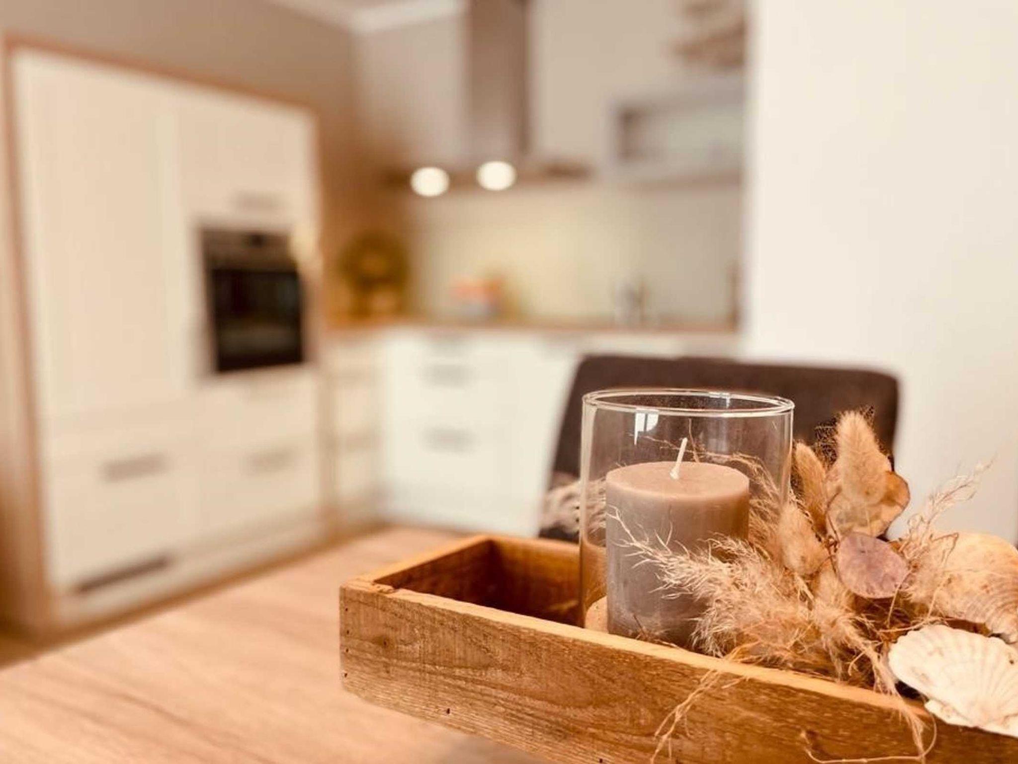 Die stilvoll ausgestattete Küche lässt mit Ihrem 4-fach Ceranfeld, geräumigen Kühlschrank, Geschirrspüler, Filter-Kaffeemaschine, Wasserkocher, Mikrowelle, Toaster und einer umfangreichen Ausstattung an Geschirr und Gläsern keinen Wunsch mehr offen.