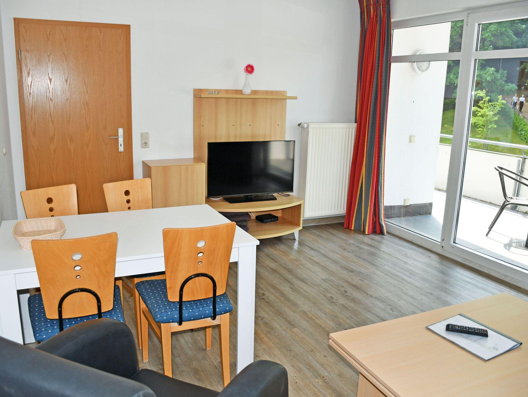 Unsere ruhig gelegenen, hellen und lichtdurchfluteten 2-Raum-Ferienwohnungen mit Balkon oder Terrasse sind wie folgt ausgestattet: