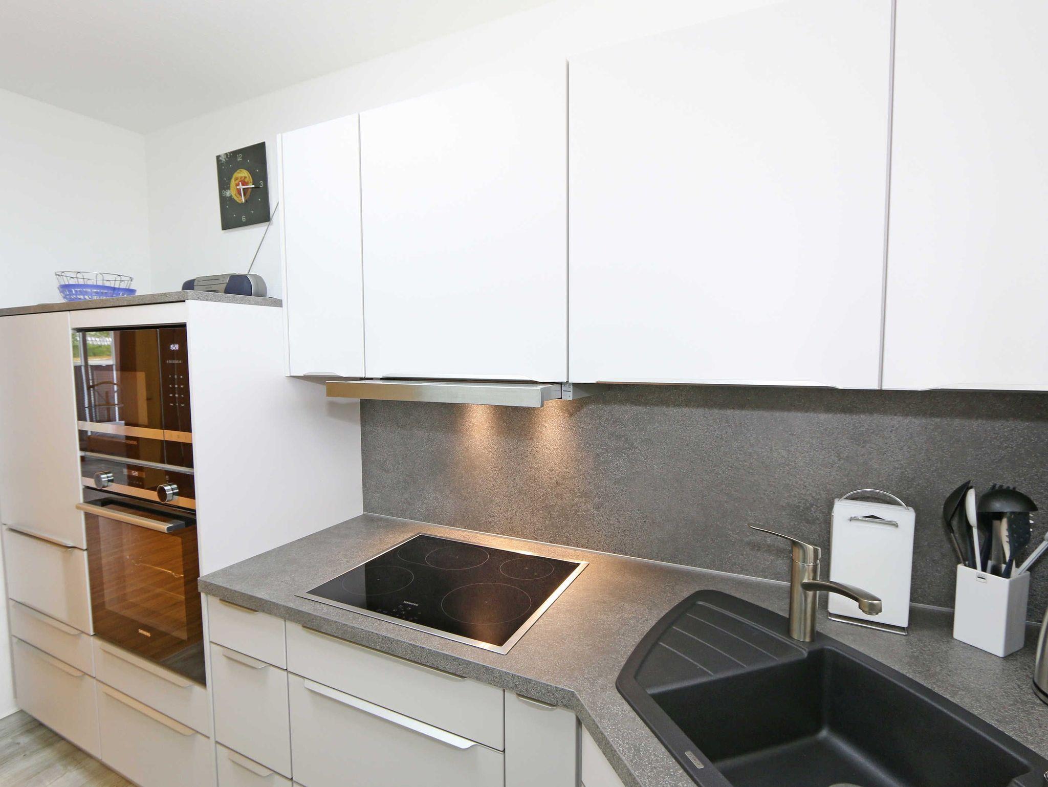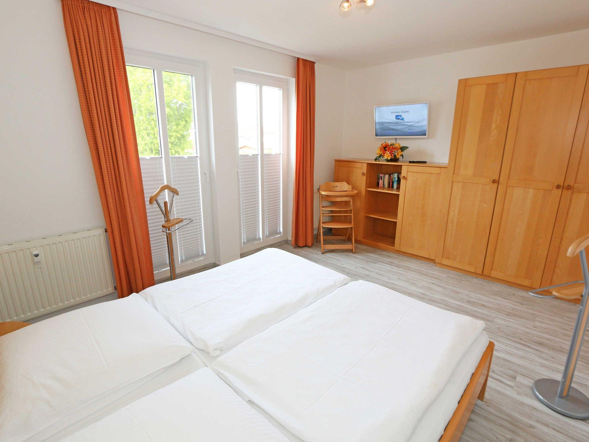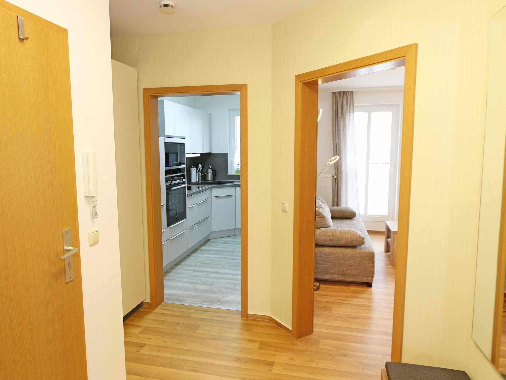 Die gemütliche 2-Zimmerwohnung (Nichtraucher) befindet sich im modernen Anbau der Villa Vineta im 1. Obergeschoss. Die Wohnung ist mit einem Bodenbelag in Holzoptik sowie hellen Wohnzimmermöbeln ausgestattet. Mit ihren ca. 56 qm bietet Ihnen die Wohnung ausreichend Platz für 2 bis 4 Personen. Der Wohnbereich wird durch eine hochwertige Schlafcouch (1,60 m x 2,00 m, Aufbettungsmöglichkeit für 3./4. Person) mit Couchtisch, Leselampe, kleinem Sideboard mit Smart-TV mit Sky (Auswahl von Sport, Film, Dokumentation), Blu-Ray-Player und einer Mini-Stereo-Anlage mit CD-Player und DAB-Radio abgerundet. Auf einen Internetzugang (WLAN) brauchen Sie nicht zu verzichten. Dieser ist inklusive für Sie. Der gemütliche Essplatz mit 4 Stühlen passt sich dem Wohnbereich an. Von hier aus erreichen Sie den teilüberdachten und bestuhlten Südbalkon, von dem Sie einen Meerblick in Richtung Südstrand und der Halbinsel Mönchgut haben. Die separate neu renovierte Küche ist komplett mit Backofen, Induktionsfeld, Mikrowelle, Geschirrspüler, Kühlschrank mit Gefrierschrank, Kaffeemaschine, Toaster, Wasserkocher und diversen Küchenutensilien ausgestattet. Das ruhig nach Norden gelegene Schlafzimmer verfügt über ein Doppelbett (1,80 m x 2,00 m) mit verstellbaren Lattenrosten, Nachttischkonsolen sowie einem Kleiderschrank und ein Smart-TV (nur Internet TV möglich). Ein Kinderreisebett kann hier aufgestellt werden. Das Schlafzimmer und der Wohnbereich sind mit Verdunklungsplissees versehen. Das geflieste Tageslichtbad ist mit einem Waschtisch, Kosmetikspiegel, Fön, WC und Dusche ausgestattet. Ein PKW-Stellplatz (Nr. 12) gehört zur Wohnung und befindet sich hinter dem Haus. 1x Hochstuhl und 1x Kinderreisebett (ohne Zusatzmatratze, ohne Bettinlett) sind für unsere kleinen Gäste inklusive. Für Ihre geliehenen oder auch mitgebrachten Fahrräder stehen Ihnen ein Fahrradständer sowie ein Fahrradkeller zur Verfügung. 1 Haustier ist gegen eine Gebühr ein gern gesehener Gast. Die Erstausstattung eines Wäschepaketes (komplette Bettwäsche, 1 Duschhandtuch, 2 kleine Handtücher) können Sie bis 14 Tage vor Anreise gegen einen Aufpreis dazu buchen oder durch eigene ergänzen. Ab 2 gebuchten Paketen erhalten Sie einmalig 1 Geschirrhandtuch und 1 Duschvorleger hinzu.