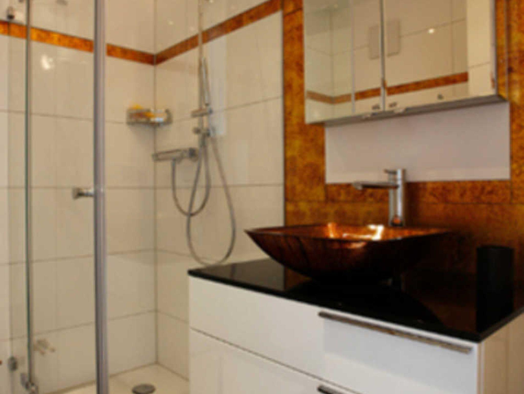 Zwei Bäder, eines davon mit Badewanne, das andere mit bodengleicher Dusche garantieren höchsten Badespaß ? noch dazu bei leiser Musik oder den aktuellen Nachrichten. Beide Bäder sind mit je einem WC, einem Waschtischschrank und einem Spiegelschrank mit Kosmetikspiegel und Haartrockner komfortabel ausgestattet.
