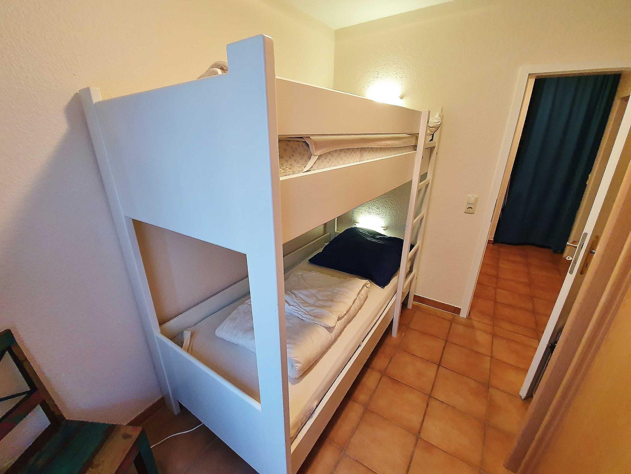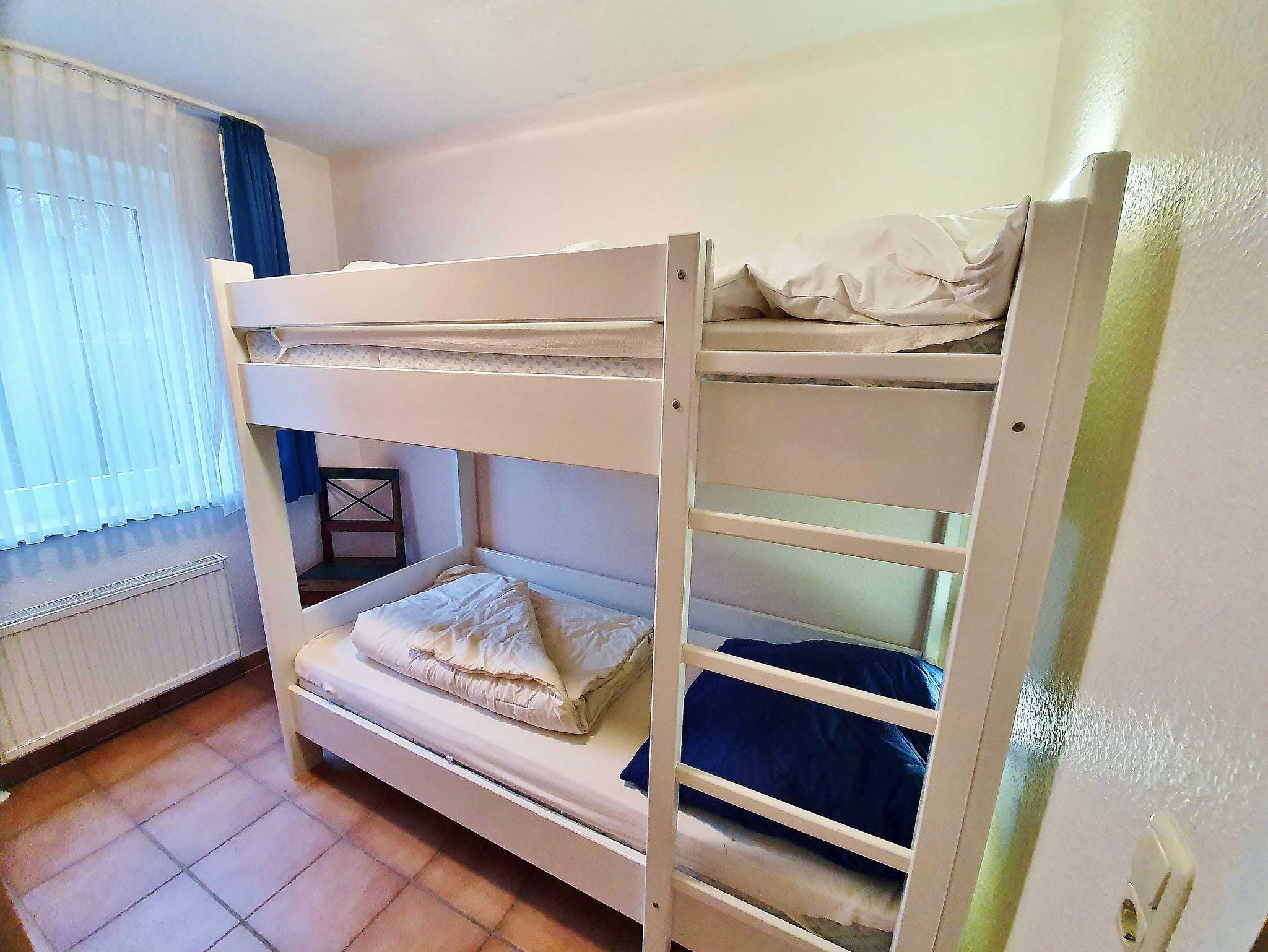 * 2. Schlafzimmer mit massivem Etagenbett für 2 Kinder und Kleiderschrank