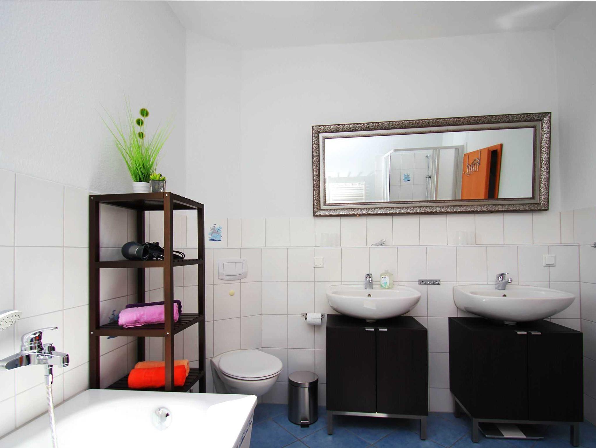 In der Wohnung gibt es 2 Bäder. Ein Tageslichtbad mit Badewanne, WC und Doppelwaschbecken, ein Bad mit Dusche, WC und einem Waschbecken.
