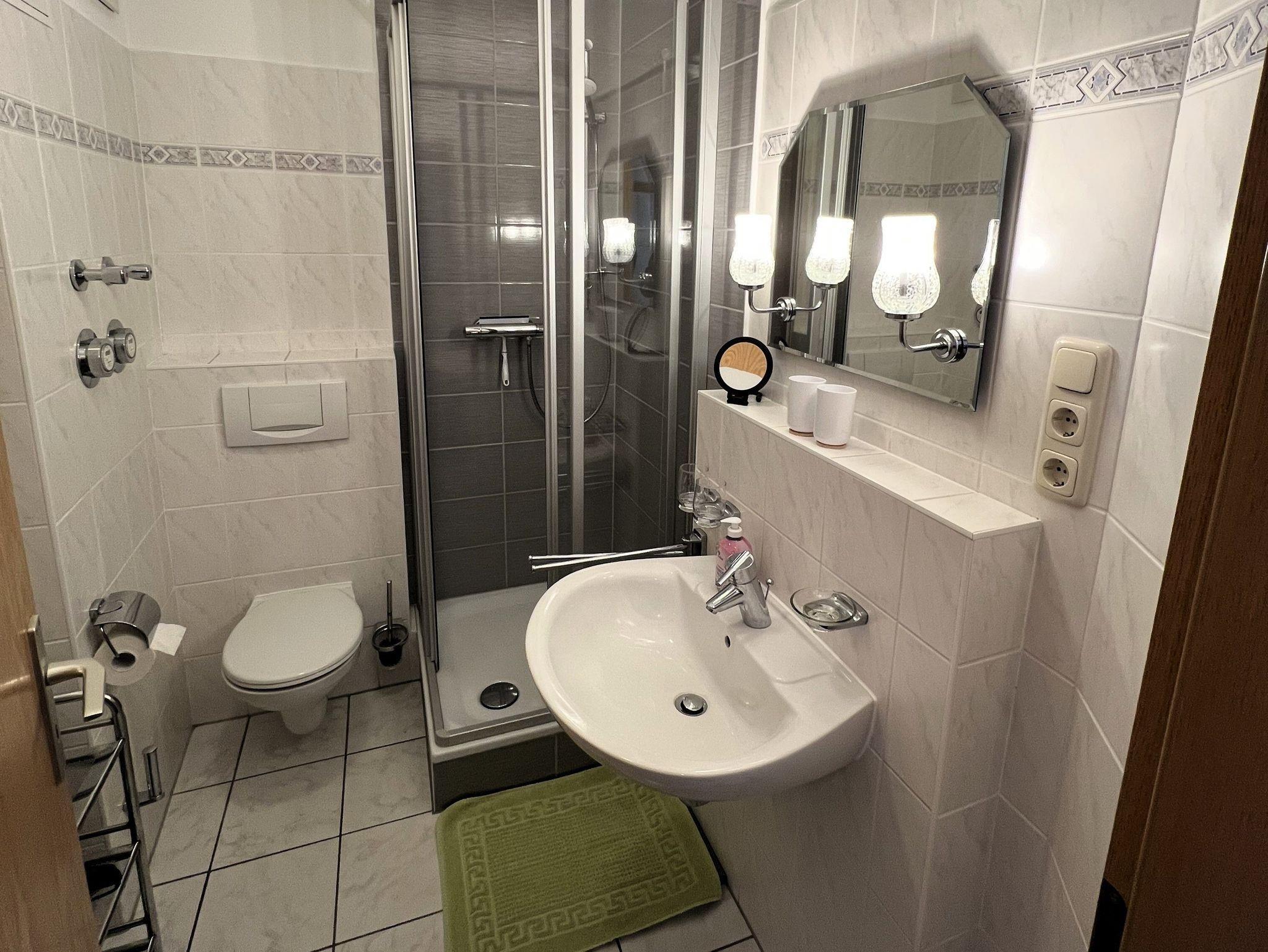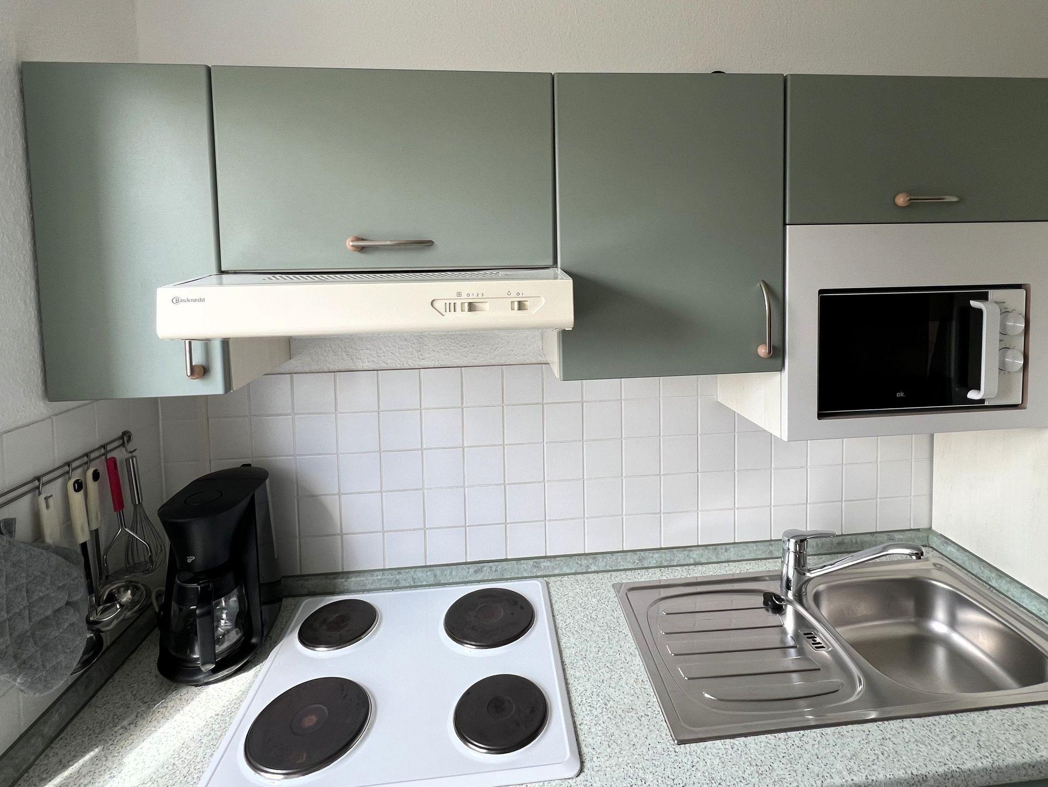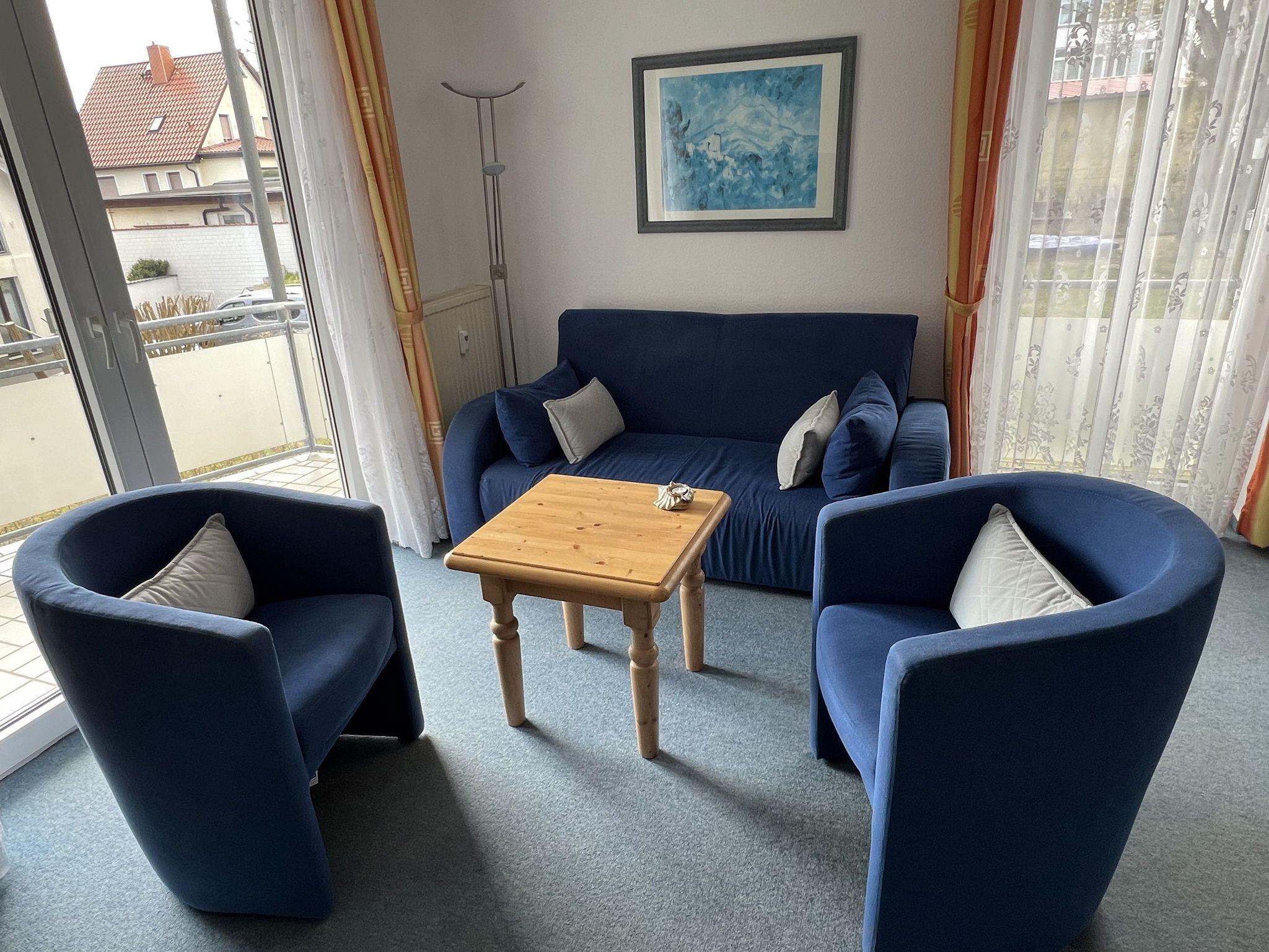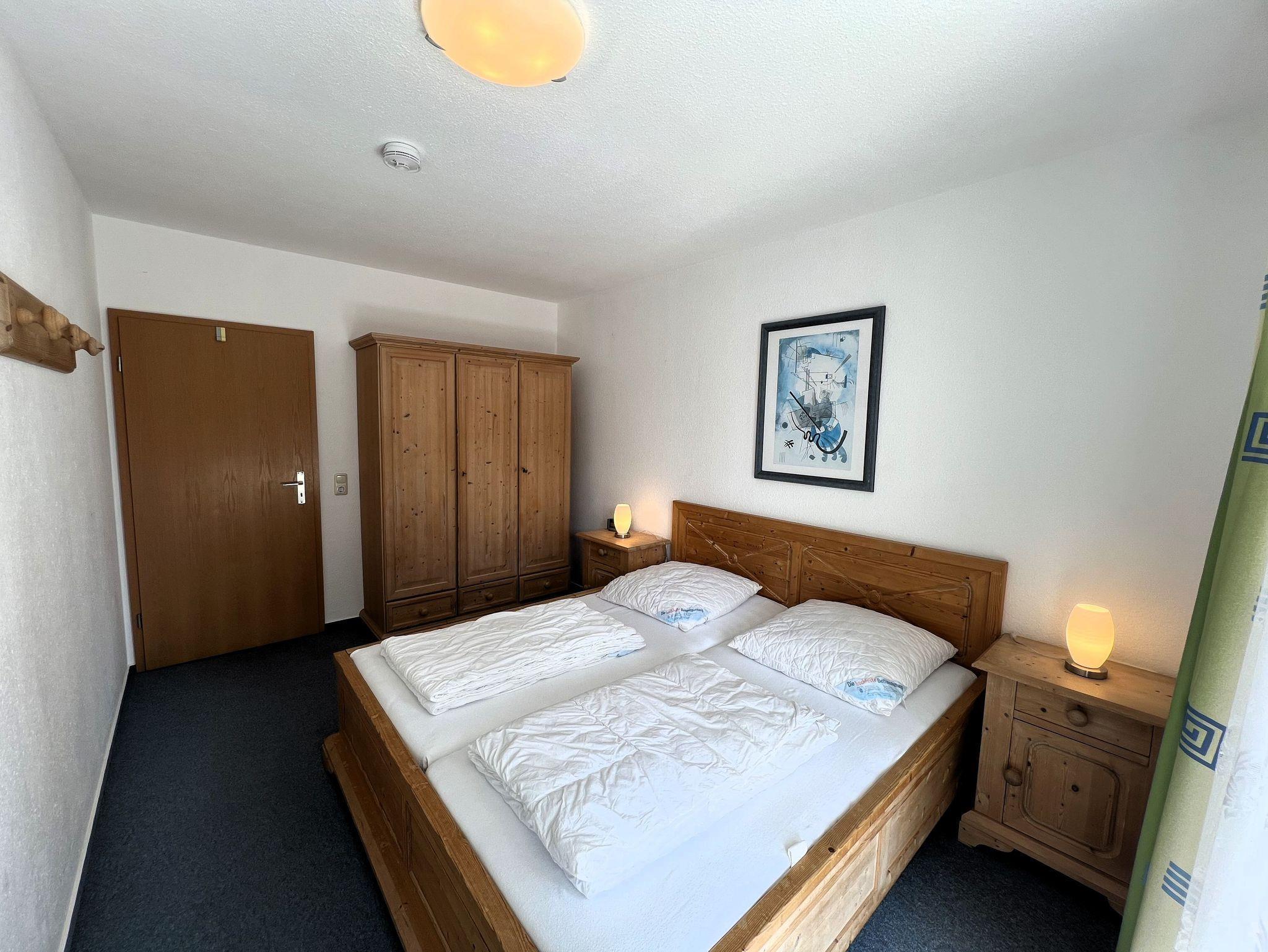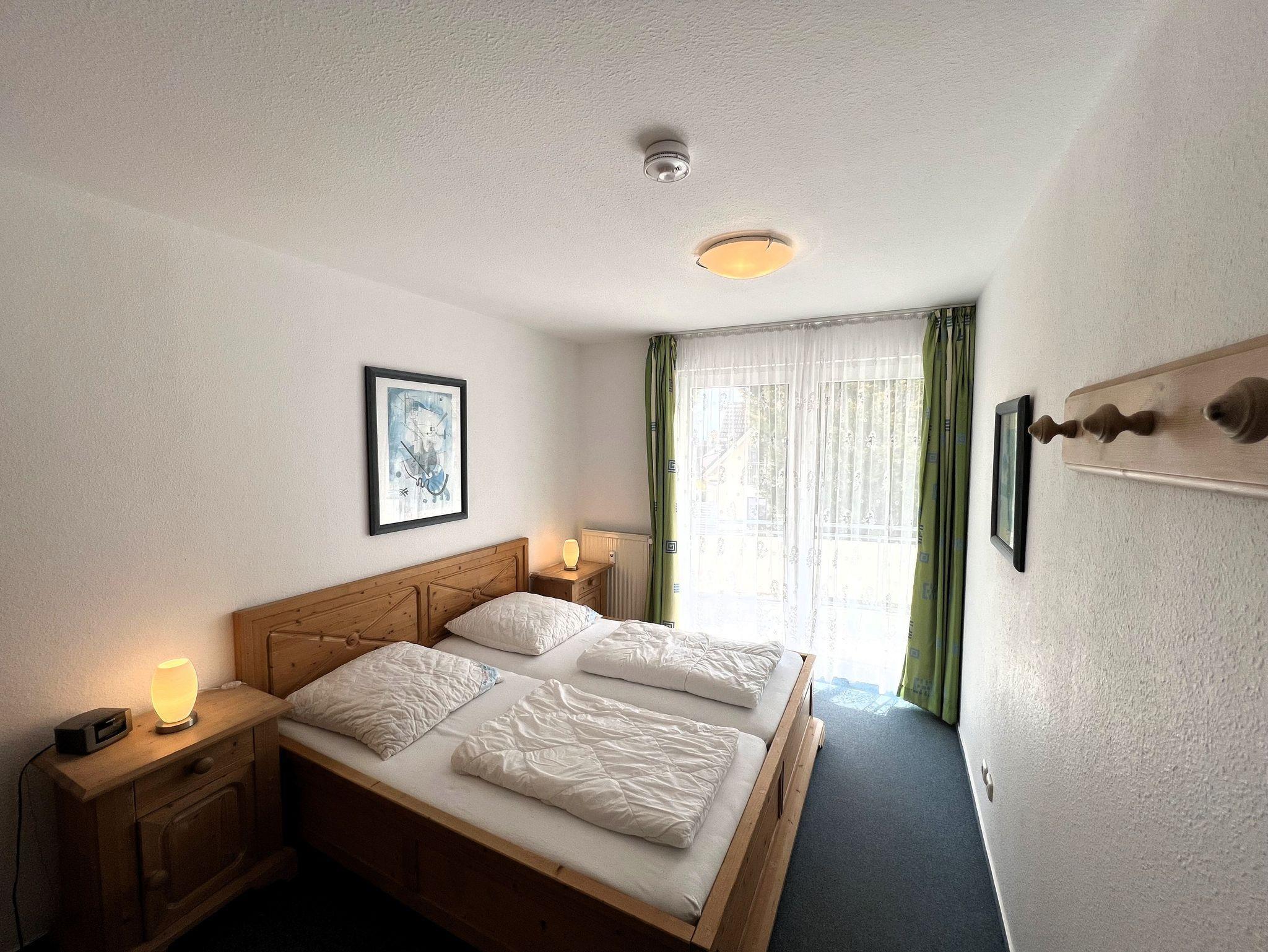 Sie wohnen in einem großzügigen 2-Zimmer-Appartement für bis zu 4 Personen auf 57 m² Wohnfläche im Erdgeschoss. Ein Schlafzimmer mit Doppelbett, Wohn-/Schlafraum mit bequemer Doppelbettcouch, separater Essplatz, voll ausgestatteter Küchenzeile mit Geschirrspüler und Mikrowelle, Dusche/WC, Balkon mit Elektrogrill, SAT-Farb-TV und Telefon. Außenstellplatz für PKW.