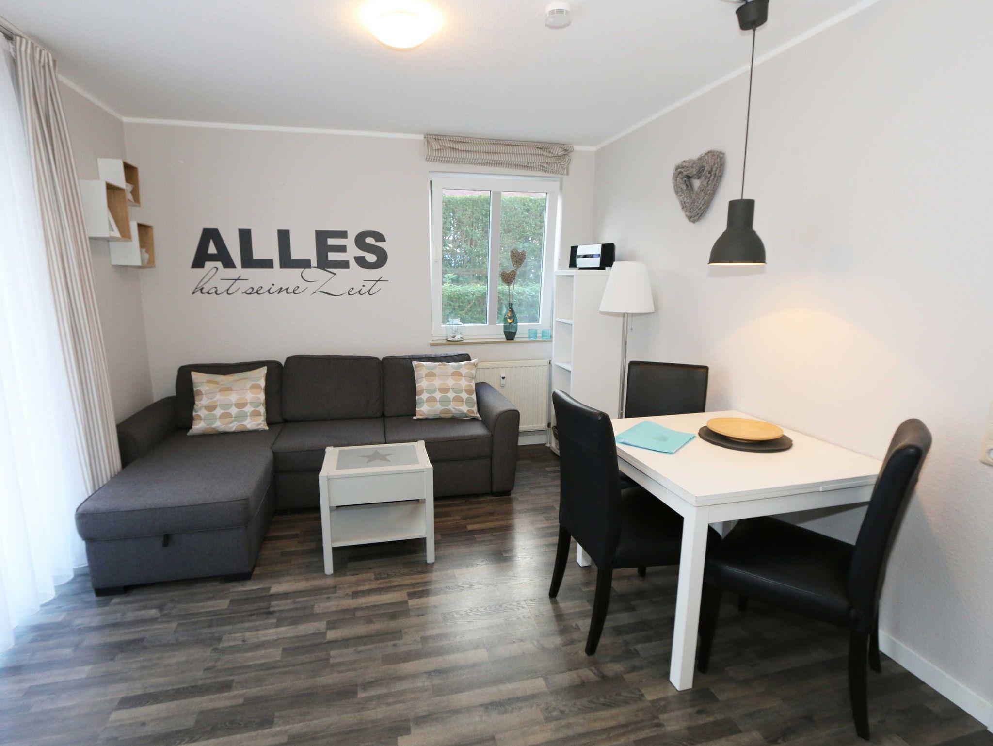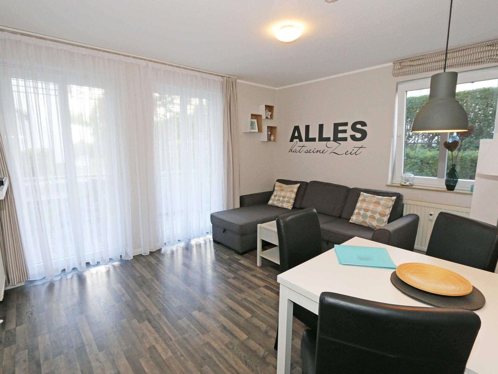 Die Nichtraucherferienwohnung mit 42 m² befindet sich im Erdgeschoss der Villa Buskam. Zu der Wohnung, die für 2 bis 4 Personen ausgelegt ist, gehört ein geräumiger und bestuhlter Südbalkon, auf dem Sie ab mittags die Sonne genießen können. Zu erreichen ist der Balkon über den Wohnbereich der Ferienwohnung. Im Wohnbereich gibt es eine gemütliche Eckcouch, die zu einem Doppelbett (1,40m x 2,00m), für die 3. und 4. Person umgebaut werden kann sowie ein Couchtisch und eine Leselampe ist ebenfalls vorhanden. Für Ihre Unterhaltung sorgt ein Smart-TV und eine Bluetooth Stereoanlage mit CD-Player (MP3-fähig mit USB-Anschluss) mit DAB-Radio und ein Blu-Ray- Player. Der Wohnraum wird durch einen Essplatz mit Tisch (ausziehbar) und 4 Stühlen komplettiert. Auch im Urlaub brauchen Sie auf einen WLAN-Zugang nicht zu verzichten, denn der ist für Sie inklusive vorhanden. Die separate Küche ist mit einer Küchenzeile mit Cerankochfeld, Dunstabzugshaube, Backofen, Geschirrspüler, Kühlschrank mit Eisfach, Kaffeemaschine, Wasserkocher, Toaster und diversen Küchenutensilien ausgestattet. Das Schlafzimmer ist mit einem Boxspringbett (1,60m x 2,00m) und Nachttischkonsolen ausgestattet. Ein Kleiderschrank befindet sich im Eingangsbereich der Wohnung. Das geflieste Badezimmer ist ausgestattet mit einer ebenerdigen Dusche, Waschplatz, WC, Handtuchheizkörper, Kosmetikspiegel und Fön. Alle Räume sind mit Heizkörpern versehen. Im Wohnbereich und Küche wurde die Fenster mit Insektenschutz versehen. Haustiere sind nicht erlaubt. Die Wohnung verfügt über einen eigenen abschließbaren Fahrradkeller im Haus wo Sie auch gegen Gebühr eine Waschmaschine und Trockner nutzen können. Ein immer verfügbarer Parkplatz ist für Sie in der Schulstrasse Nr. 12 reserviert und ist in knapp 3 Minuten leicht zu Fuß erreichbar. Die Erstausstattung eines Wäschepaketes (komplette Bettwäsche, 1 Duschhandtuch, 2 kleine Handtücher, 2 Geschirrhandtücher) können Sie bis 14 Tage vor Anreise gegen einen Aufpreis dazu buchen oder durch eigene ergänzen.