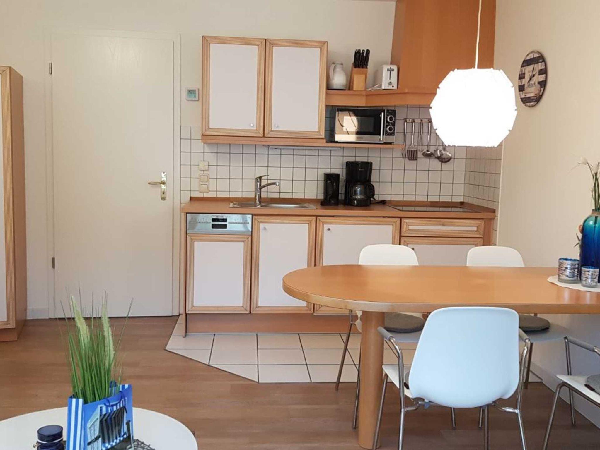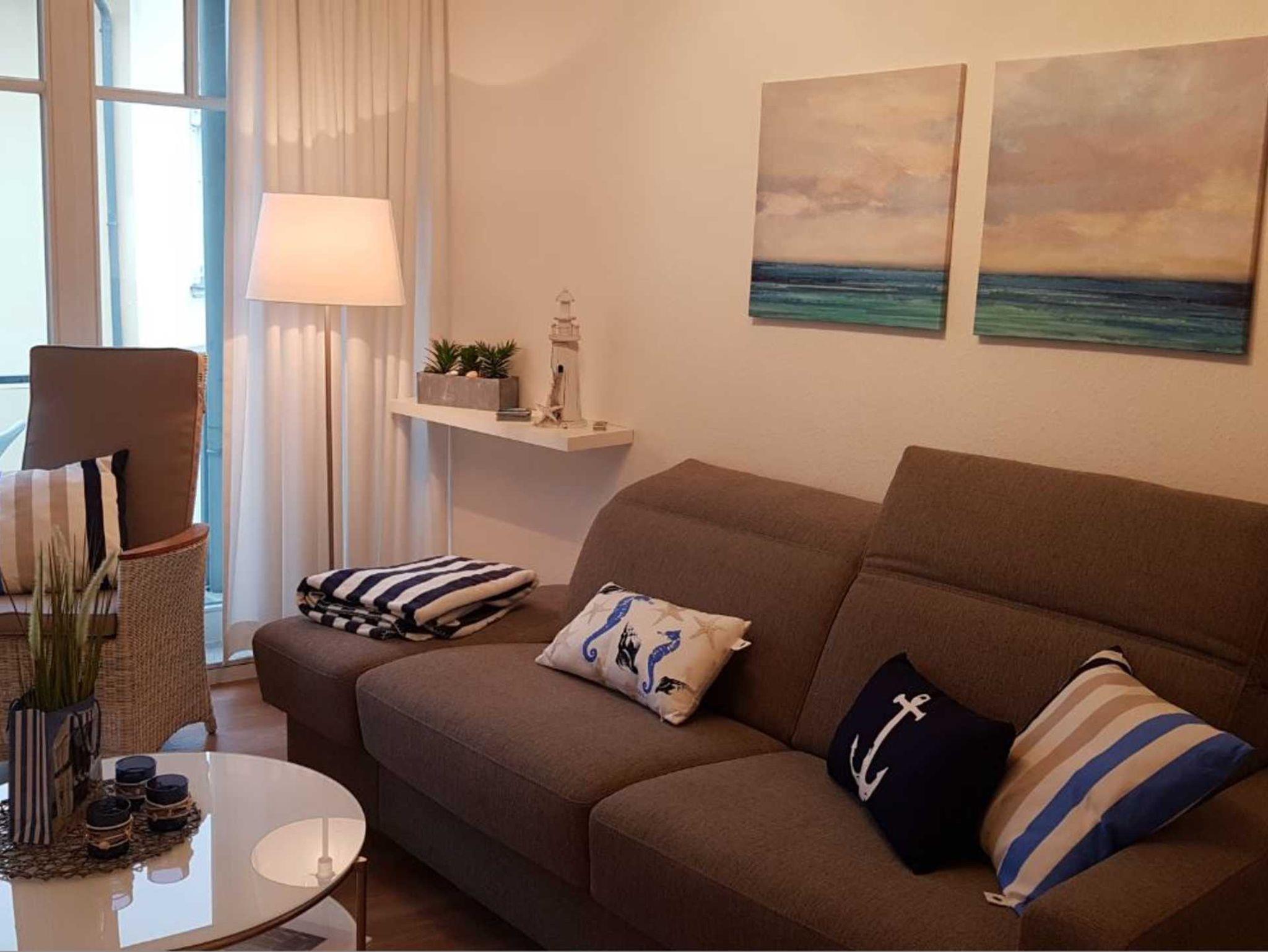 Die frisch renovierte 2-Zimmer-Ferienwohnung (45m² / Nichtraucher) befindet sich im 1.OG eines sehr gepflegten Appartementhauses in erster Reihe zum Strand und zum Ort.