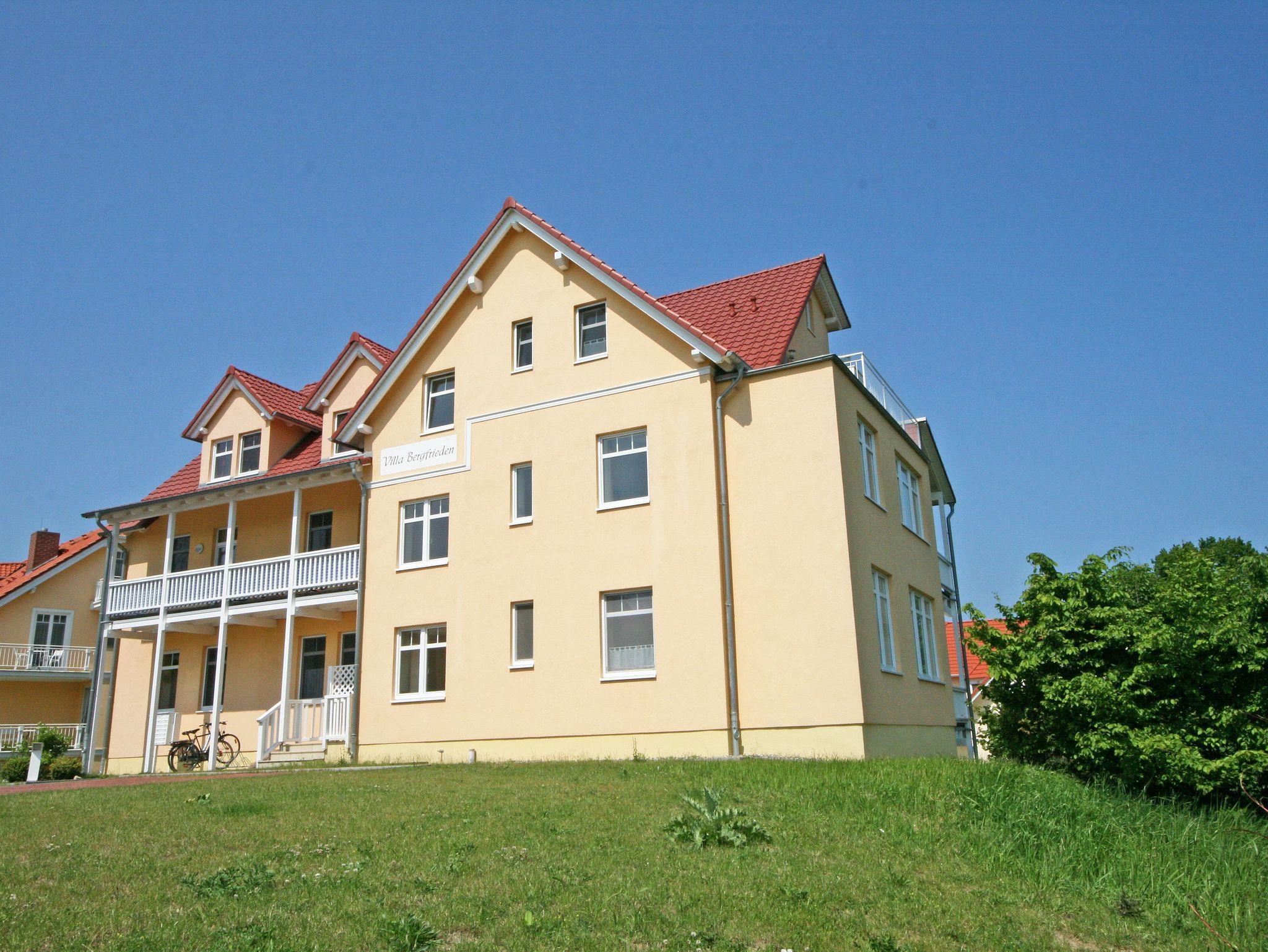 Die Villa Bergfrieden liegt auf einer kleinen Anhöhe direkt neben dem Küstenwald am Rande des Biosphärenreservates. Trotz der absolut ruhigen Lage ohne Autoverkehr, liegt die Villa Bergfrieden zentral. Zum wunderschönen Nordstrand und zum Ortszentrum sind es fußläufig nur zwei bis fünf Gehminuten. Die bevorzugte Lage wird noch unterstrichen durch den herrlichen Panoramablick bis zu den Kreidefelsen.