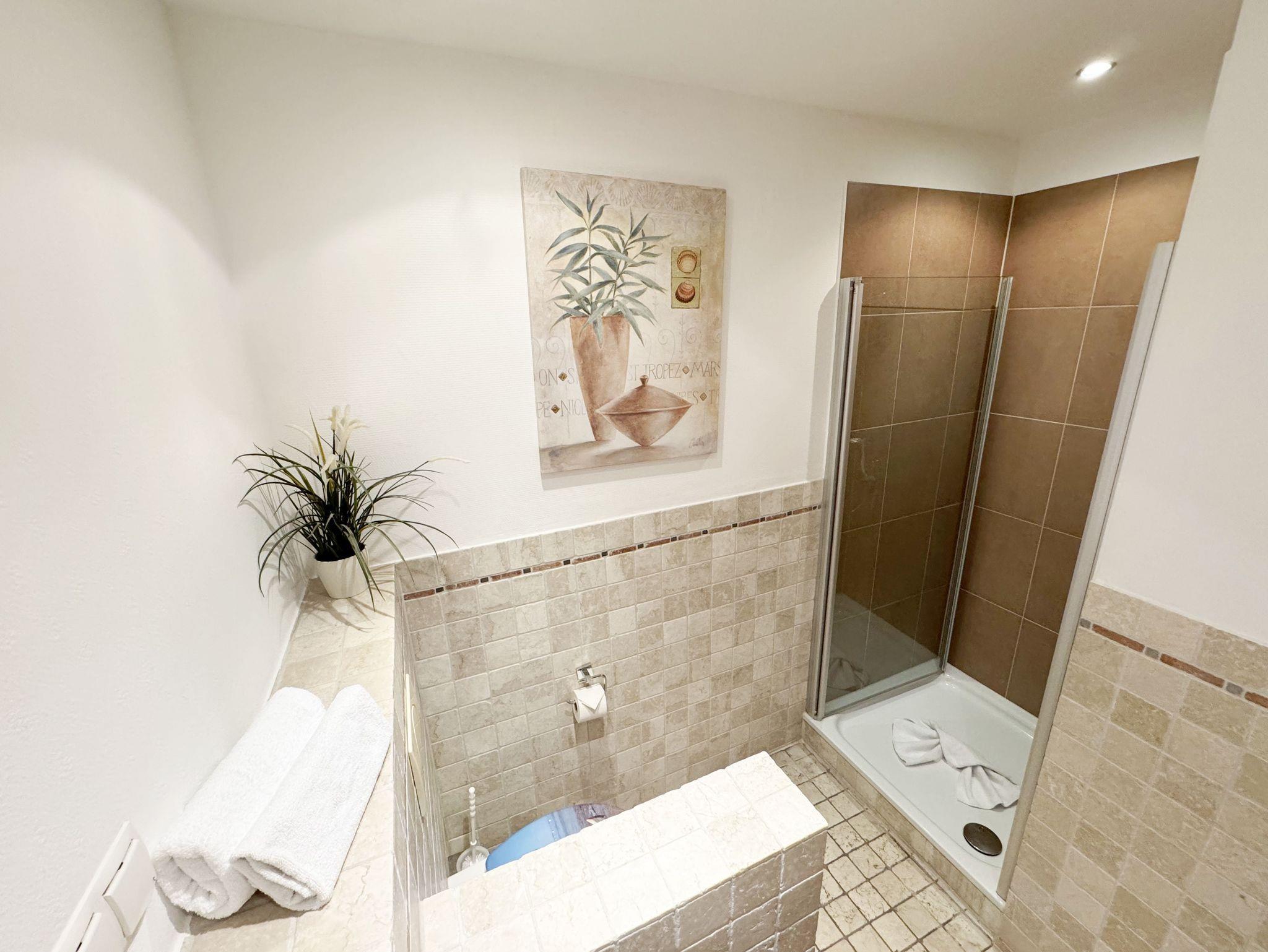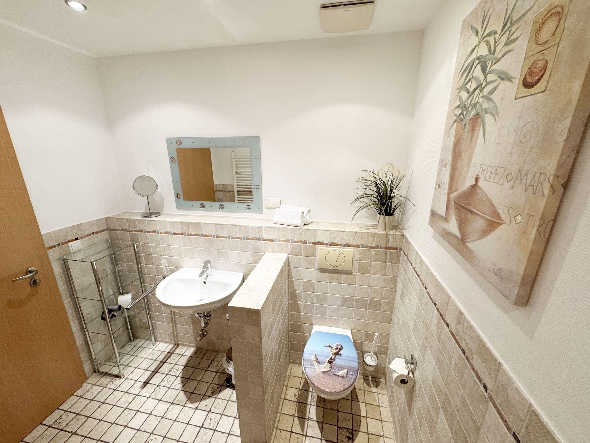 Die komfortable Nichtraucherferienwohnung in der Villa Bergfrieden bietet mit ca. 53 qm Platz für max. 2 bis 4 Personen. Die Wohnung befindet sich in der 1. Etage. Der Wohn- und Essbereich besteht aus einer gemütlichen, ausziehbaren Couchecke (Aufbettungsmöglichkeit für 3./4. Person, 1,40m x 2,00m), einem Couchtisch, einer Anrichte mit einem Smart-TV, einem DVD-Player, einem Radio mit CD-Player sowie einen WLAN-Zugang, welcher für Sie inklusive ist. Abgerundet wird der Bereich mit einer kleinen Auswahl an Gesellschaftsspielen und Urlaubslektüre. Am angrenzenden Essbereich befindet sich eine voll ausgestattete moderne Küchenzeile mit einem Geschirrspüler, einer Spüle, einem Kühlschrank mit Eisfach, einen Backofen mit 4-Zonen-Cerankochfeld, einen Wasserkocher, einer Kaffeemaschine, einen Toaster, einer Cafissimo Maschine sowie diverse Küchenutensilien. Ein Esstisch komplettiert den Bereich. Das helle Schlafzimmer besteht aus einem Doppelbett mit 2 einzelnen Matratzen (1,60m x 2,00m), verstellbare Lattenroste, Nachtischablagen mit Beleuchtung sowie einem Kleiderschrank. Vom Wohnbereich sowie auch vom Schlafzimmer können Sie den bestuhlten Balkon mit Sonnenschirm betreten. Hier haben Sie einen herrlichen Blick auf die Ostsee, wo Sie schon bei Ihrem Frühstück die Aussicht genießen können. Das innenliegende und geflieste Bad verfügt über eine Dusche, ein WC, einen Kosmetikspiegel und einen Fön. Im kleinen Abstellraum befindet sich ein Staubsauger, ein Wäscheständer, ein Bügelbrett und ein Bügeleisen sowie weitere Reinigungsutensilien. Bis zu 2 Haustiere können Sie gerne gegen eine Gebühr dazu buchen. Ihr PKW-Stellplatz Nr. 06 befindet sich direkt am Haus. Ihre geliehenen oder mitgebrachten Fahrräder können Sie in einem Fahrräderständer direkt vor dem Haus abstellen. Die Erstausstattung eines Wäschepaketes (komplette Bettwäsche, 1 Duschhandtuch, 2 kleine Handtücher) können Sie bis 14 Tage vor der Anreise gegen einen Aufpreis dazu buchen oder durch eigenes Ergänzen. Ab 2 gebuchten Paketen erhalten Sie einmalig 1 Geschirrtuch und einen Duschvorleger dazu.