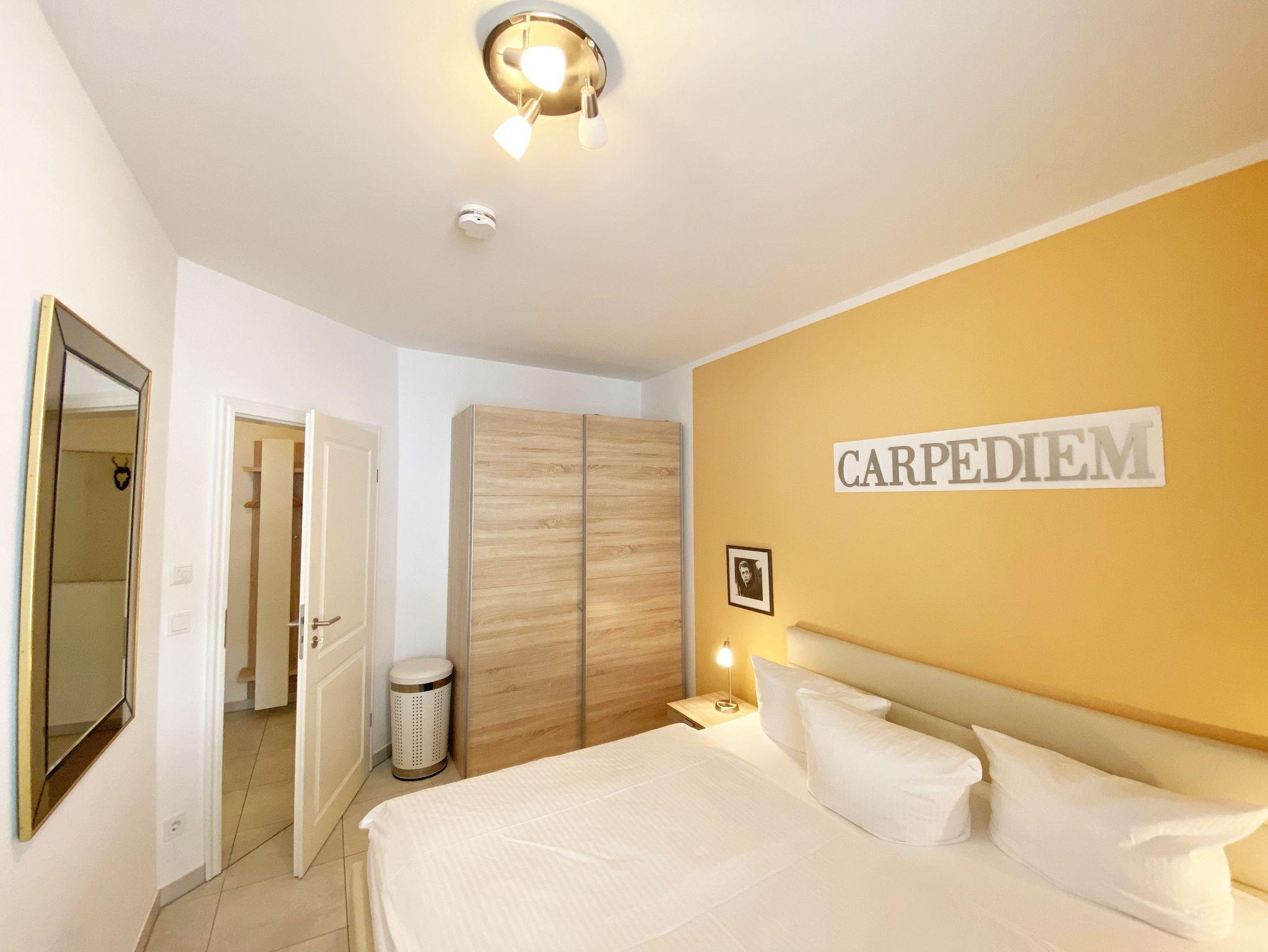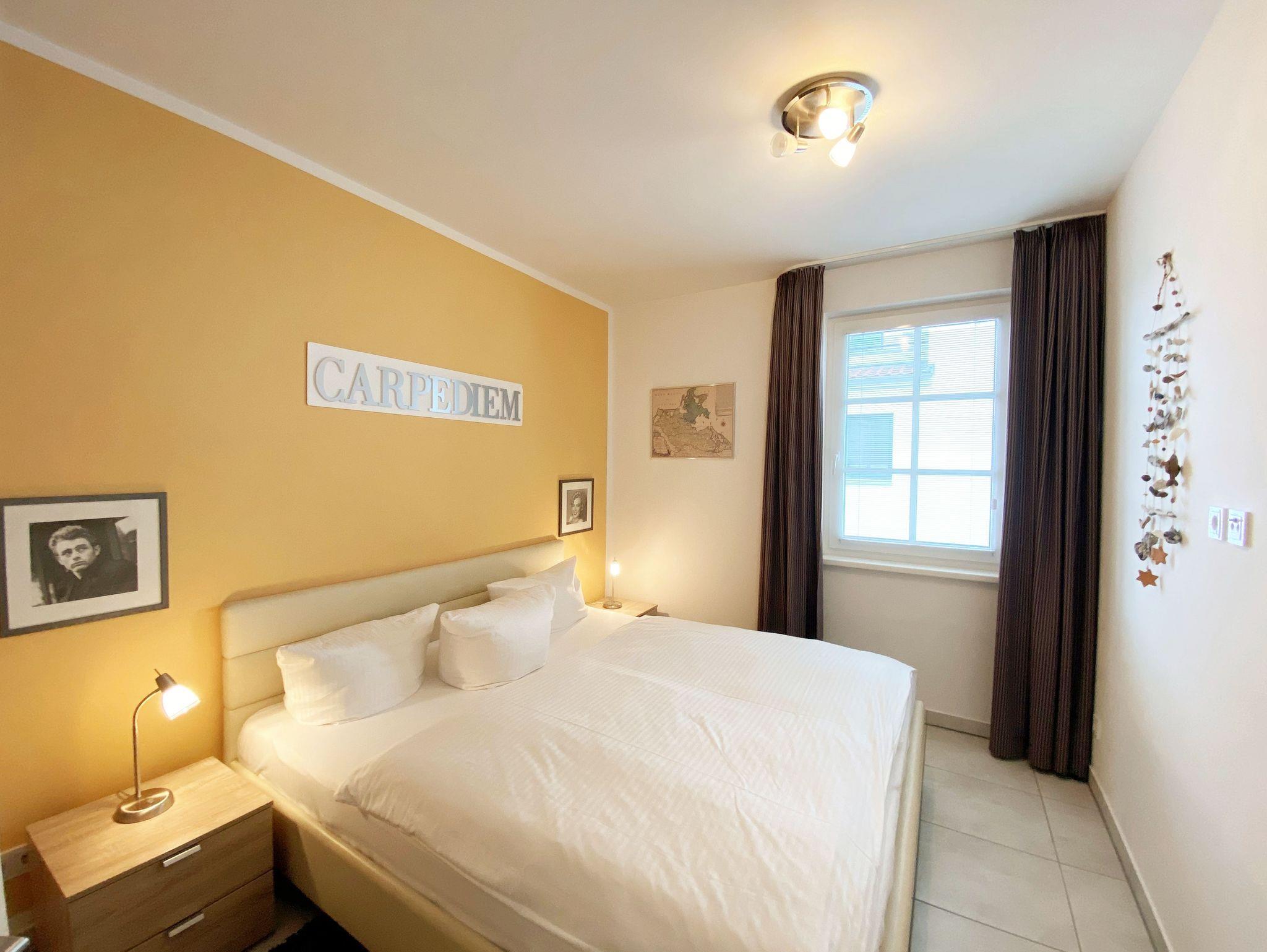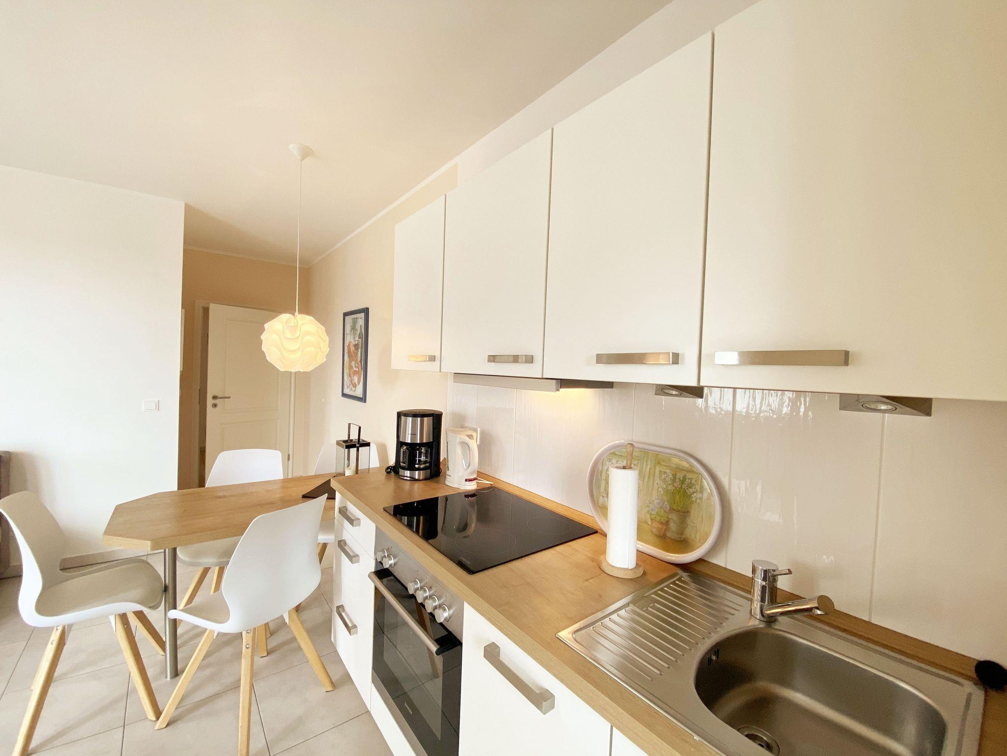 Die Wohnung Nr. 08 in der Villa Antje ist eine Nichtraucherwohnung und bietet mit Ihren ca. 42 qm ausreichend Platz für max. 3 Erwachsene. Die modern ausgestattete Ferienwohnung verfügt über einen gemütlichen Wohnbereich mit einer Couch (Aufbettungsmöglichkeit für die 3. Person, 1,60m x 2,00m), ein Couchtisch, ein Sessel, eine Vitrine, ein TV-Board mit Flachbild-TV, einer Musikanlage mit CD-Player und Radio, einen WLAN-Anschluss sowie ausreichend Urlaubslektüre und Gesellschaftsspiele. Von hier gelangen Sie auf Ihren bestuhlten und überdachten Süd/West Balkon. Die angrenzende und offene Küchenzeile mit Essplatz ist ausgestattet mit einem Backofen, einem Cerankochfeld, einen Kühlschrank mit Gefrierfach, einen Geschirrspüler, einer Kaffeemaschine, einen Toaster sowie einen Wasserkocher. Im Schlafzimmer befindet sich ein Doppelbett (1,80m x2,00m), Nachttischablagen mit Beleuchtung, ein Kleiderschrank sowie einem Spiegel. Im Wohn- & Schlafbereich sorgen Verdunklungsmöglichkeiten sowie Insektenschutzgitter für einen ruhigen Schlaf. Das Tageslichtbad wird durch eine ebenerdige Dusche, ein WC, ein Waschtisch, ein Handtuchtrockner, einen Fön, einen Kosmetikspiegel, sowie genügend Abstellmöglichkeiten, abgerundet. Alle Räumlichkeiten sind gefliesst und mit einer Fußbodenheizung versehen. Ein separater Abstellraum umfasst zusätzlich Reinigungsutensilien sowie einen Wäscheständer und einen Staubsauger. Von der Tiefgarage, wo sich auch Ihr Stellplatz Nr. 08 befindet, erreichen Sie die Wohnung bequem mit dem Fahrstuhl. Ein Waschraum mit Waschmaschine und Trockner (kostenpflichtig) sowie ein abschließbarer Fahrradraum befindet sich ebenfalls in der Tiefgarage (Einfahrtshöhe 2,00m). Haustiere sind in der Wohnung nicht erlaubt. Die Erstausstattung eines Wäschepaketes (komplette Bettwäsche, 1 Duschhandtuch, 2 kleine Handtücher, 2 Geschirrhandtücher) können Sie bis 14 Tage vor Anreise gegen einen Aufpreis dazu buchen oder durch eigene ergänzen.