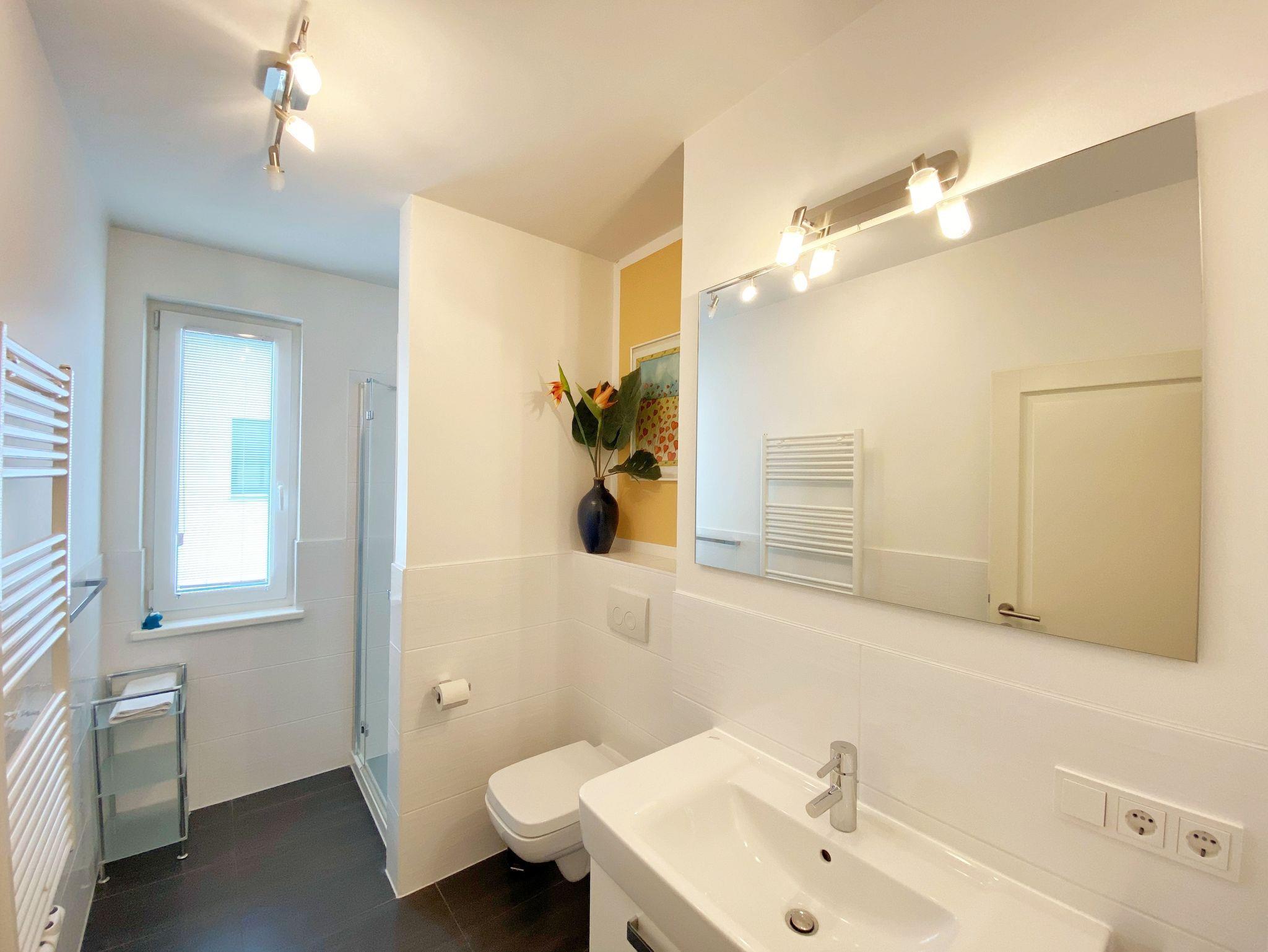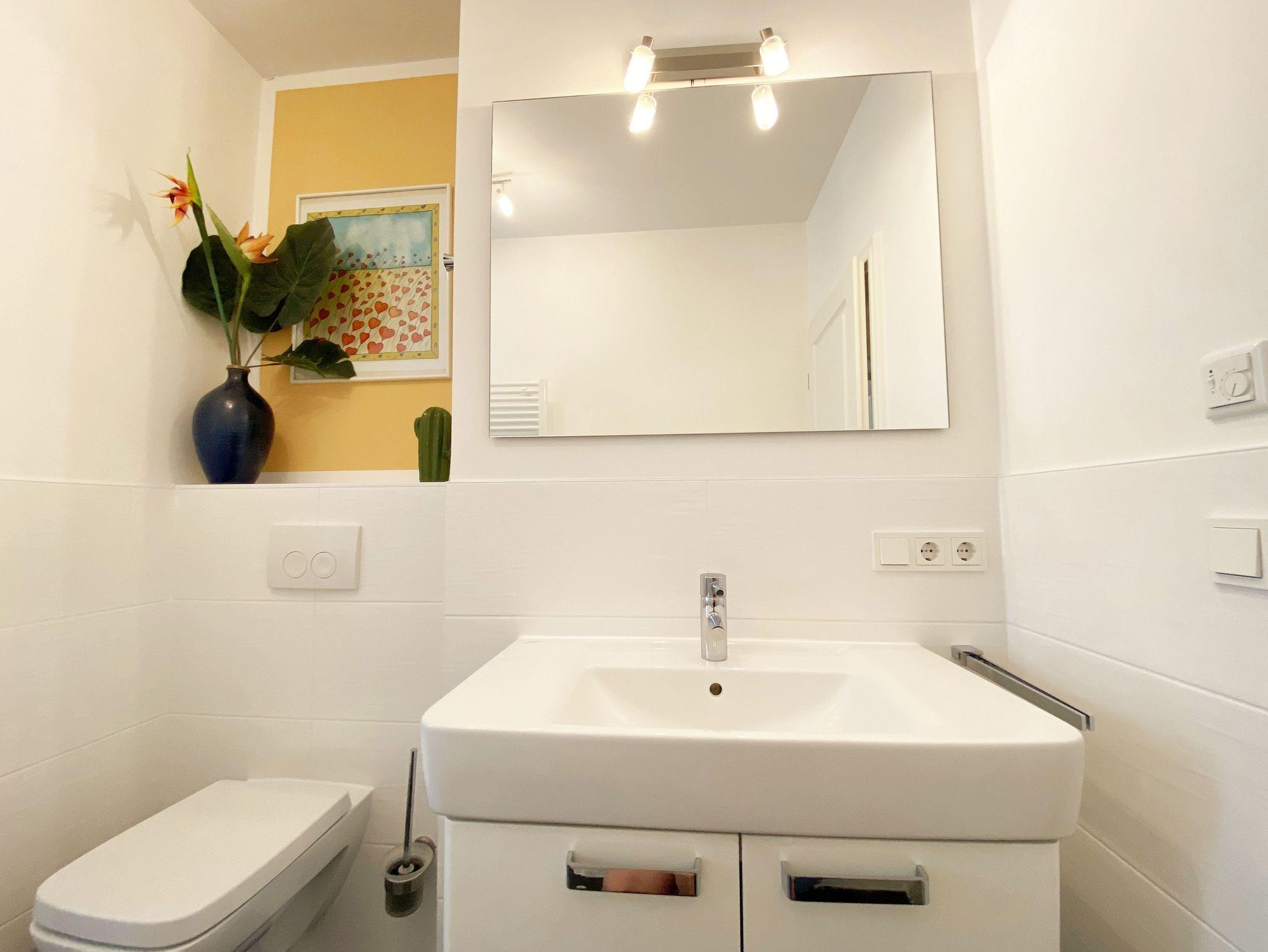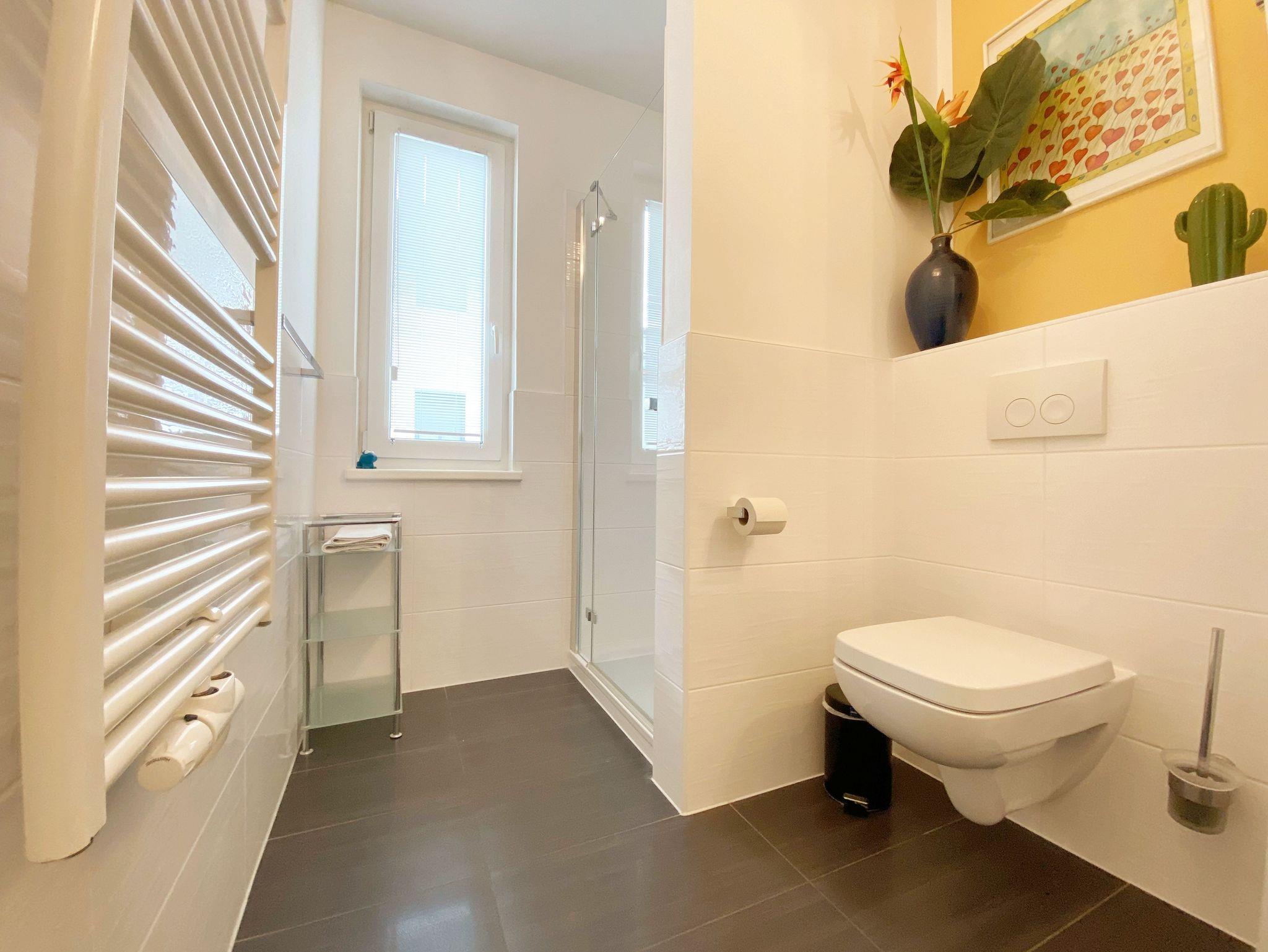 Die Wohnung Nr. 08 in der Villa Antje ist eine Nichtraucherwohnung und bietet mit Ihren ca. 42 qm ausreichend Platz für max. 3 Erwachsene. Die modern ausgestattete Ferienwohnung verfügt über einen gemütlichen Wohnbereich mit einer Couch (Aufbettungsmöglichkeit für die 3. Person, 1,60m x 2,00m), ein Couchtisch, ein Sessel, eine Vitrine, ein TV-Board mit Flachbild-TV, einer Musikanlage mit CD-Player und Radio, einen WLAN-Anschluss sowie ausreichend Urlaubslektüre und Gesellschaftsspiele. Von hier gelangen Sie auf Ihren bestuhlten und überdachten Süd/West Balkon. Die angrenzende und offene Küchenzeile mit Essplatz ist ausgestattet mit einem Backofen, einem Cerankochfeld, einen Kühlschrank mit Gefrierfach, einen Geschirrspüler, einer Kaffeemaschine, einen Toaster sowie einen Wasserkocher. Im Schlafzimmer befindet sich ein Doppelbett (1,80m x2,00m), Nachttischablagen mit Beleuchtung, ein Kleiderschrank sowie einem Spiegel. Im Wohn- & Schlafbereich sorgen Verdunklungsmöglichkeiten sowie Insektenschutzgitter für einen ruhigen Schlaf. Das Tageslichtbad wird durch eine ebenerdige Dusche, ein WC, ein Waschtisch, ein Handtuchtrockner, einen Fön, einen Kosmetikspiegel, sowie genügend Abstellmöglichkeiten, abgerundet. Alle Räumlichkeiten sind gefliesst und mit einer Fußbodenheizung versehen. Ein separater Abstellraum umfasst zusätzlich Reinigungsutensilien sowie einen Wäscheständer und einen Staubsauger. Von der Tiefgarage, wo sich auch Ihr Stellplatz Nr. 08 befindet, erreichen Sie die Wohnung bequem mit dem Fahrstuhl. Ein Waschraum mit Waschmaschine und Trockner (kostenpflichtig) sowie ein abschließbarer Fahrradraum befindet sich ebenfalls in der Tiefgarage (Einfahrtshöhe 2,00m). Haustiere sind in der Wohnung nicht erlaubt. Die Erstausstattung eines Wäschepaketes (komplette Bettwäsche, 1 Duschhandtuch, 2 kleine Handtücher, 2 Geschirrhandtücher) können Sie bis 14 Tage vor Anreise gegen einen Aufpreis dazu buchen oder durch eigene ergänzen.