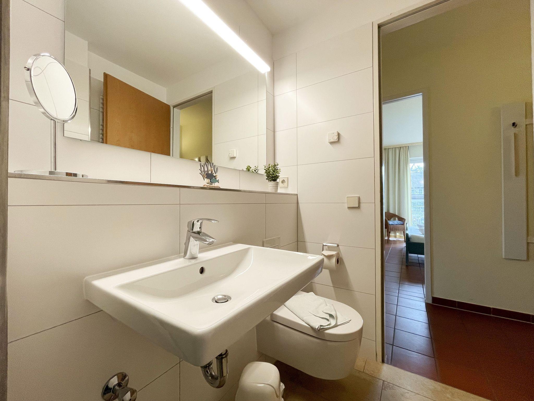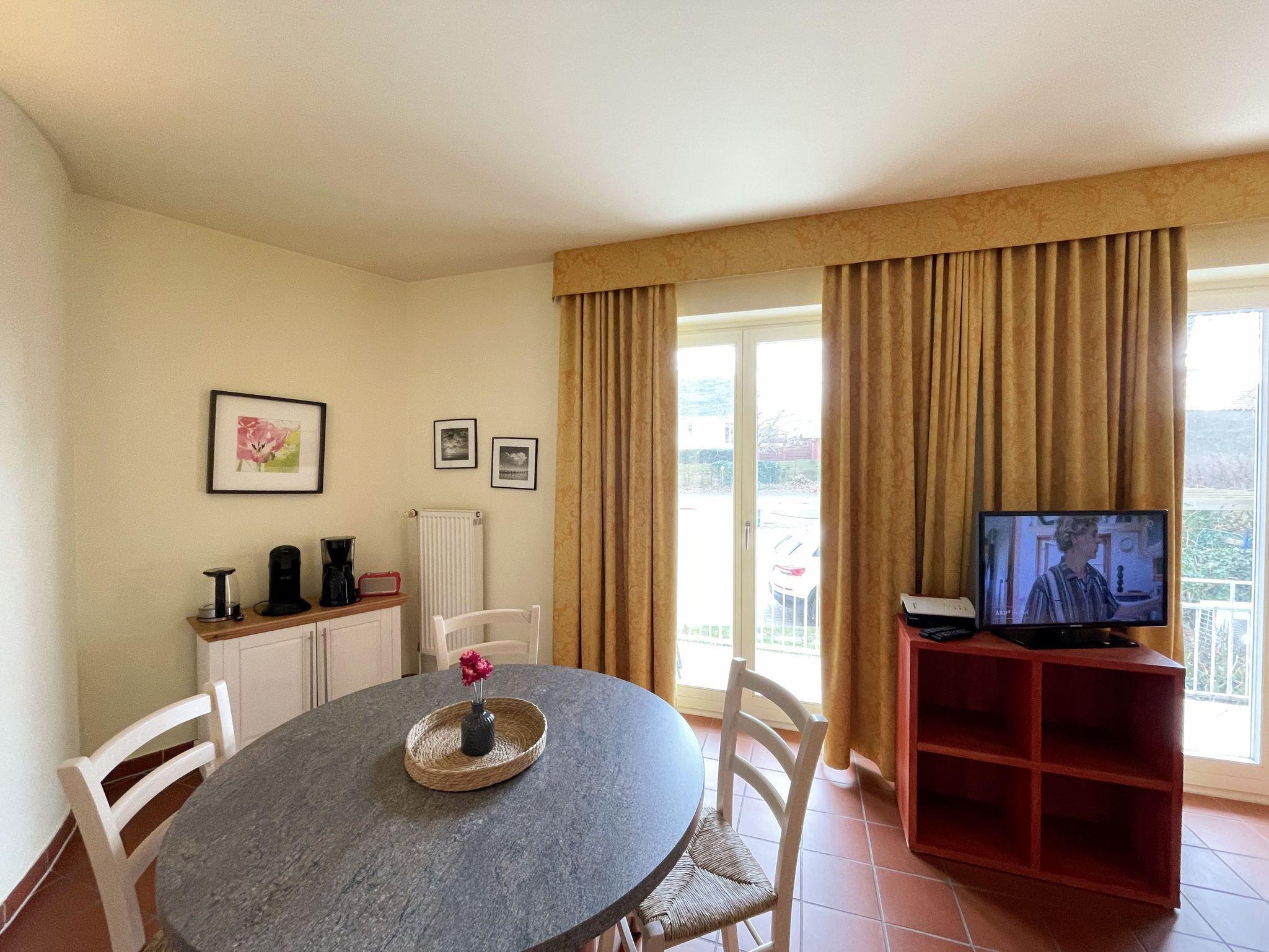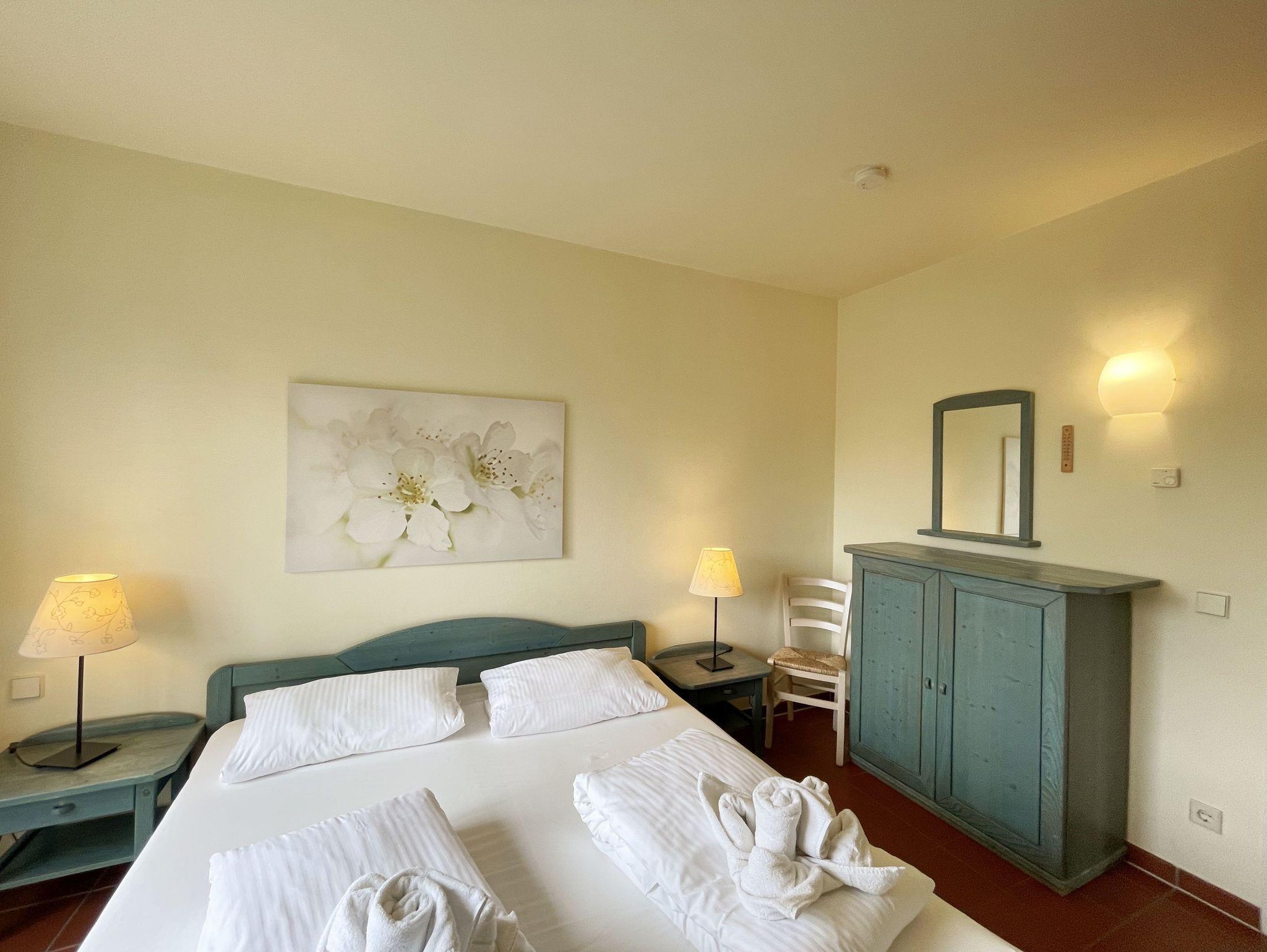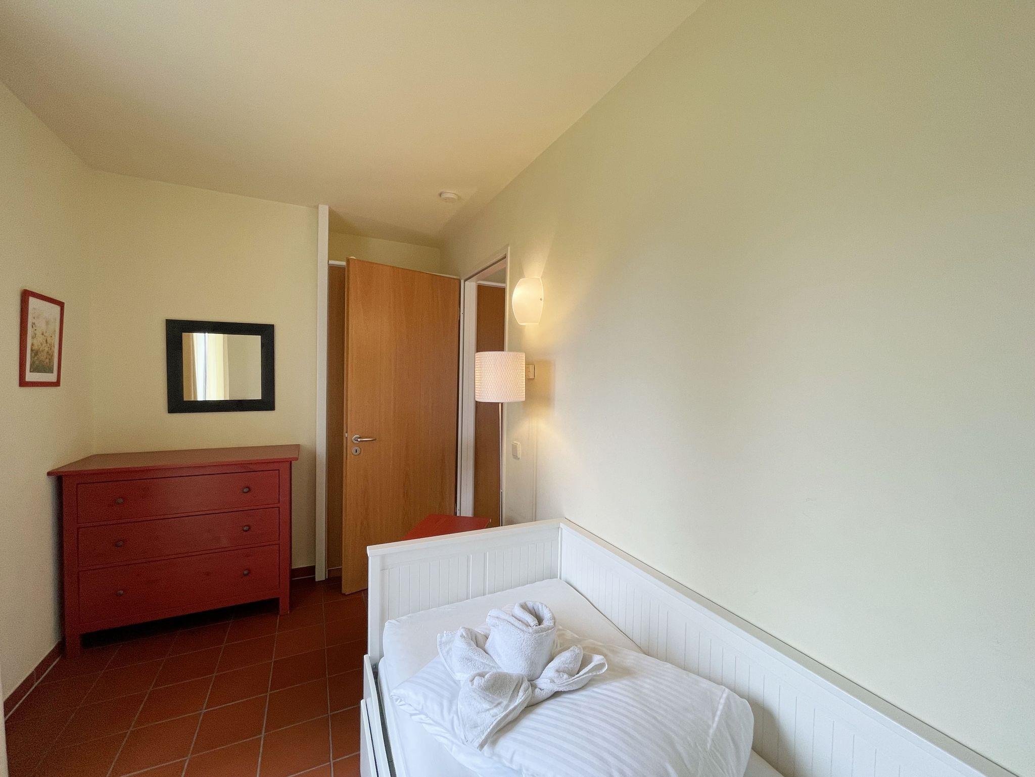 Die geräumige, nach Südwesten ausgerichtete 3-Zimmerwohnung ist etwa 55 qm groß und befindet sich im Hochparterre. Von vorne ist sie über die Freitreppe erreichbar, von der Hofseite aus sind es nur wenige Stufen. Das Appartement ist für 2 bis 6 Personen geeignet. Im Wohnbereich finden Sie eine komfortable Schlafcouch (1,60m x 2,00m), einen LED-Fernseher, einen Essplatz für 6 Personen sowie die Küchenzeile. Sie ist mit Cerankochfeld, Spülmaschine, Backofen, Kaffeemaschine, Wasserkocher, Toaster, Kühlschrank mit Eisfach und allen wichtigen Küchenutensilien ausgestattet. An den Wohnbereich grenzt der bestuhlte Südbalkon. Das gemütliche Schlafzimmer verfügt über ein Doppelbett (2 x 0,90 x 2,00 m) mit 7-Zonen-Matratzen, einen Kleiderschrank und eine Kommode mit Spiegel. Im zweiten, kleineren Schlafzimmer finden Sie ein Kojenbett (2 x 0,80 x 2,00 m), ebenso einen Kleiderschrank und eine Kommode mit Spiegel. Das Bad ist mit WC, Waschbecken und Föhn ausgestattet. Die geräumige Dusche ist ebenerdig zu begehen und mit Glaswänden abgetrennt. In der kühleren Jahreszeit wärmt die angenehme Fußbodenheizung in allen Räumen den Terracottaboden. Auch im Urlaub brauchen Sie auf einen WLAN-Zugang nicht verzichten. Dieser ist für Sie inklusive vorhanden. Ein eigener Stellplatz Nr. 11 für Ihr Fahrzeug befindet sich hinter dem Haus. In einem separaten Raum können mitgebrachte oder geliehene Fahrräder abgeschlossen werden. Auch 1 Vierbeiner ist gegen eine Gebühr ein gern gesehener Gast. Die Erstausstattung eines Wäschepaketes (komplette Bettwäsche, 1 Duschhandtuch, 1 kleines Handtuch) können Sie bis 14 Tage vor Anreise dazu buchen oder durch eigene ergänzen. Ab 2 gebuchten Paketen erhalten Sie einmalig 1 Geschirrhandtuch und 1 Duschvorleger hinzu.