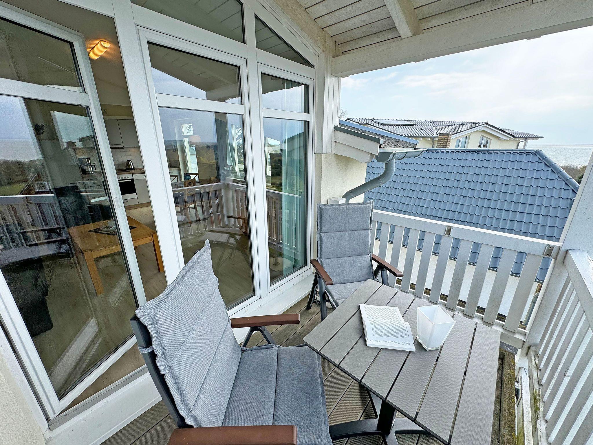 Unsere komfortable Nichtraucherwohnung von ca. 50 qm für 2 bis max. 3 Erwachsene und 1 Kleinkind im Kinderreisebett bis 3 Jahre verfügt über ein Schlafzimmer mit Doppelbett, Kleiderschrank und Nachttischkonsolen. Der Wohnbereich wurde mit einer Sitzecke (Aufbettungsmöglichkeit für die 3. Person), TV-Board und LCD-TV/Mini-Stereo-Anlage eingerichtet. Das Badezimmer ist mit einer Dusche, WC und Fön ausgestattet. Die Küchenzeile bietet einen Esstisch mit 4 Stühlen, Geschirrspüler, 4 Herdplatten mit Backofen, Toaster, Kaffeemaschine, Wasserkocher und diverse Küchenutensilien. Vom bestuhlten sowie dem kleinen Seitenbalkon aus können Sie die einmalige Aussicht auf die Ostsee genießen. Kinderreisebett (ohne Matratze und Bett Inlett) und Hochstuhl können für unsere kleinen Gäste gegen eine Gebühr gestellt werden. WLAN ist für Sie inklusive nutzbar!! Ein PKW-Stellplatz (Nr. 07) sowie eine Unterstellmöglichkeit für Ihre Fahrräder ist am Haus vorhanden. 2 Haustiere sind gegen eine Gebühr gern gesehene Gäste. Die Erstausstattung eines Wäschepaketes (komplette Bettwäsche, 1 Duschhandtuch, 1 kleines Handtuch) können Sie bis 14 Tage vor Anreise gegen einen Aufpreis dazu buchen oder durch eigene ergänzen. Ab 2 gebuchten Paketen erhalten Sie einmalig 1 Geschirrhandtuch und 1 Duschvorleger hinzu.