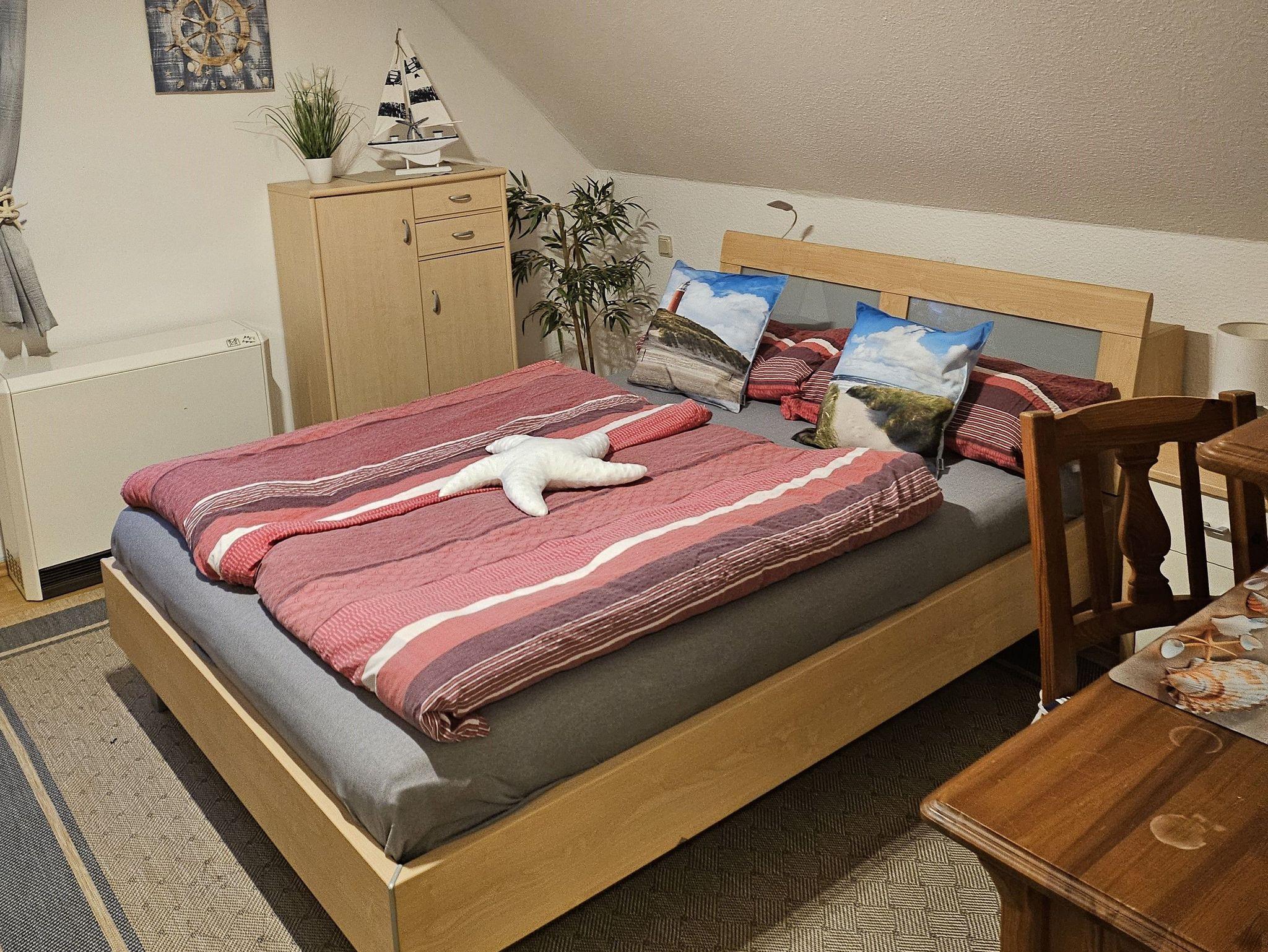Unsere Ferienwohnung Fiete ist eine 45 m² Dachgeschosswohnung bestehend aus einem Schlafzimmer mit individuell verstellbarem Bett, einem Wohnzimmer mit ausziehbarer großer EckCouch und einem SMART-TV, einer voll ausgestatteteten Küche (Spüle, Herd, Backofen, Kühlschrank, Mikrowelle, Toaster, Wasserkocher, Kaffeemaschine+PAD Maschine) und einem Badezimmer mit Dusche und WC.Bei Ihrer Anreise, bekommen Sie ein Wilkommensgruß.