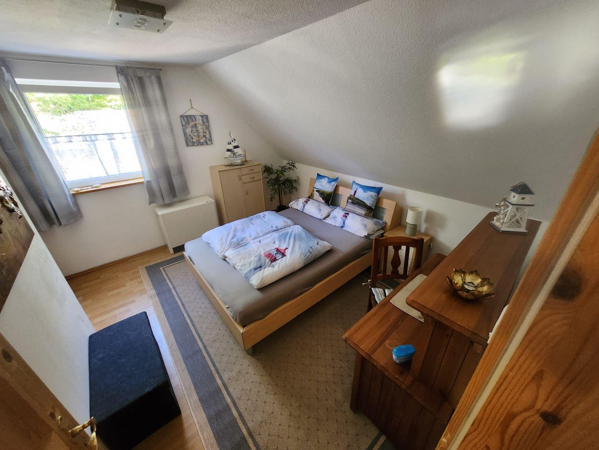 1. Die Wohnung befindet sich im Obergeschoss links.Schlafzimmer und Wohnzimmerfenster sind zum Wald gerichtet.