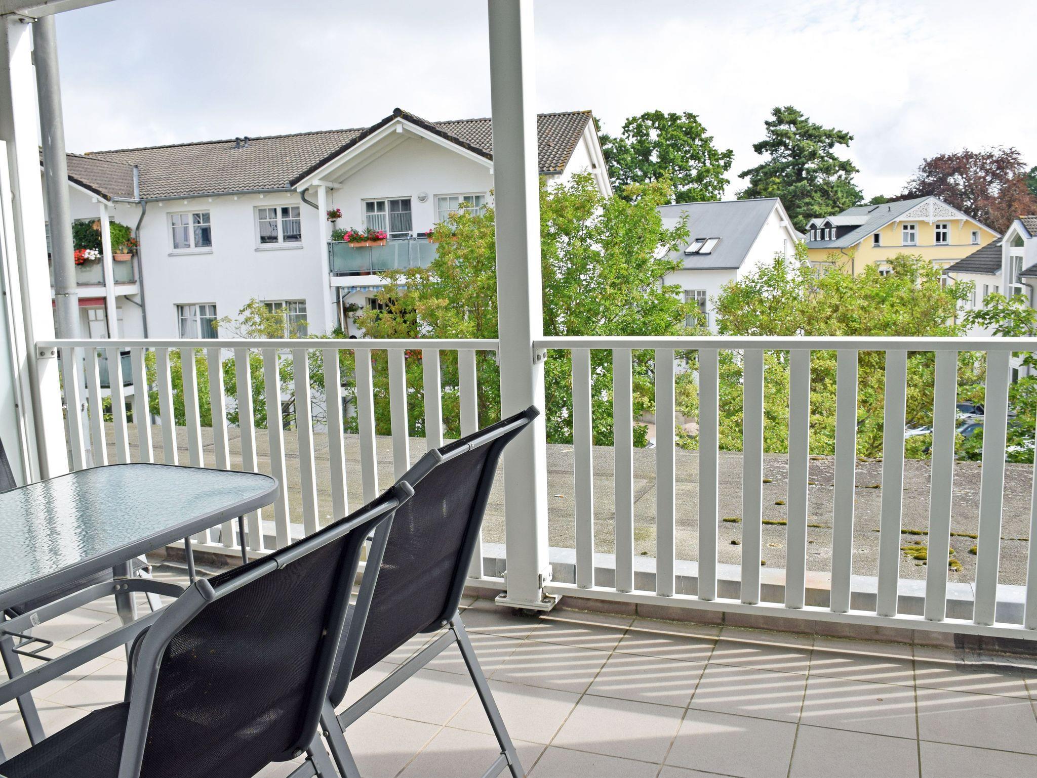Der schöne Balkon mit Gartenmöbeln lädt zu gemütlichen Stunden ein. Hier können Sie die Abende bei einem Glas Wein ausklingen lassen und jederzeit die gute Ostseeluft und Sonne auf Rügen genießen.