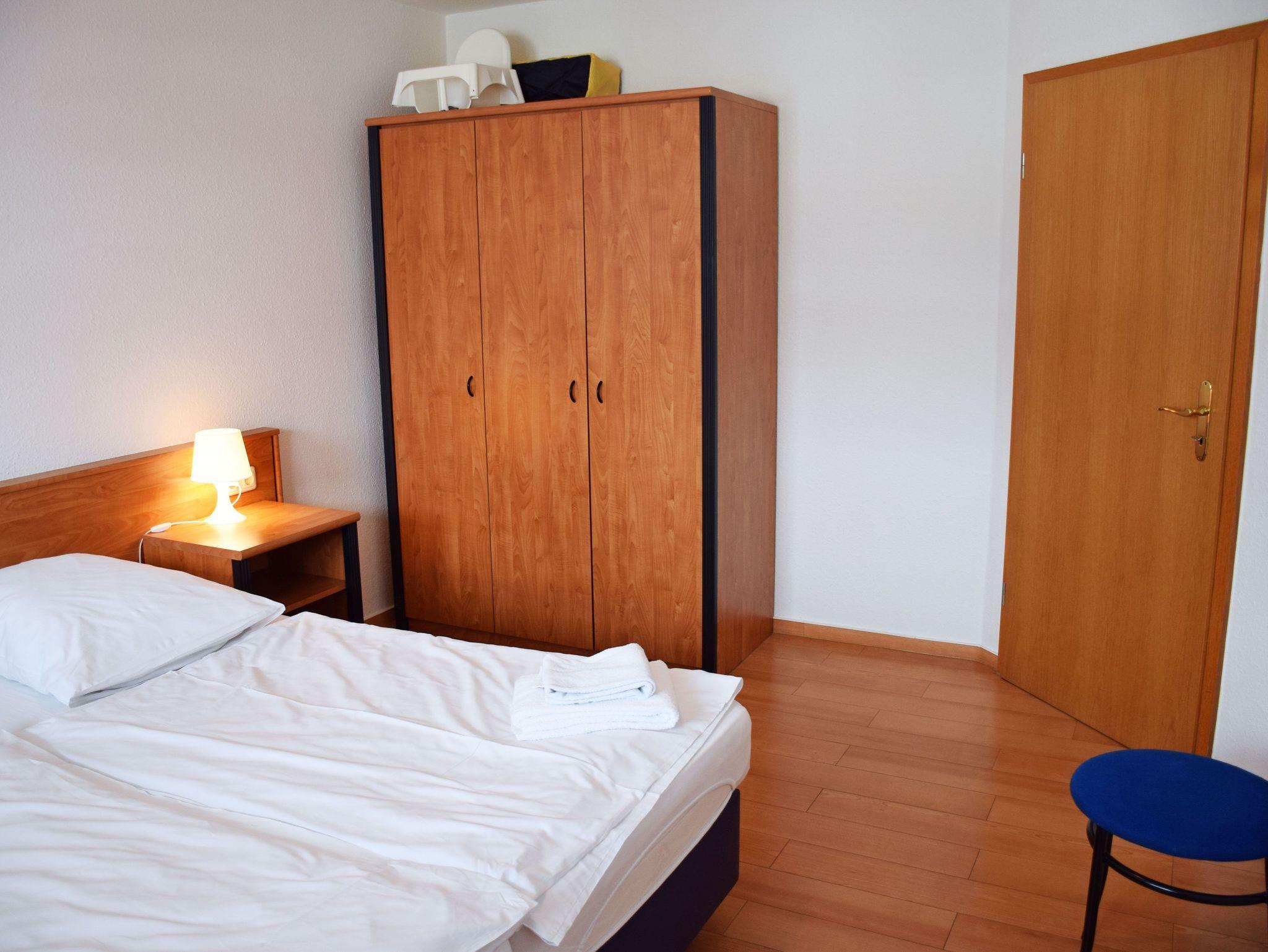 Schlafzimmer mit einem Doppelbett (180 x 200 cm) und großem Kleiderschrank