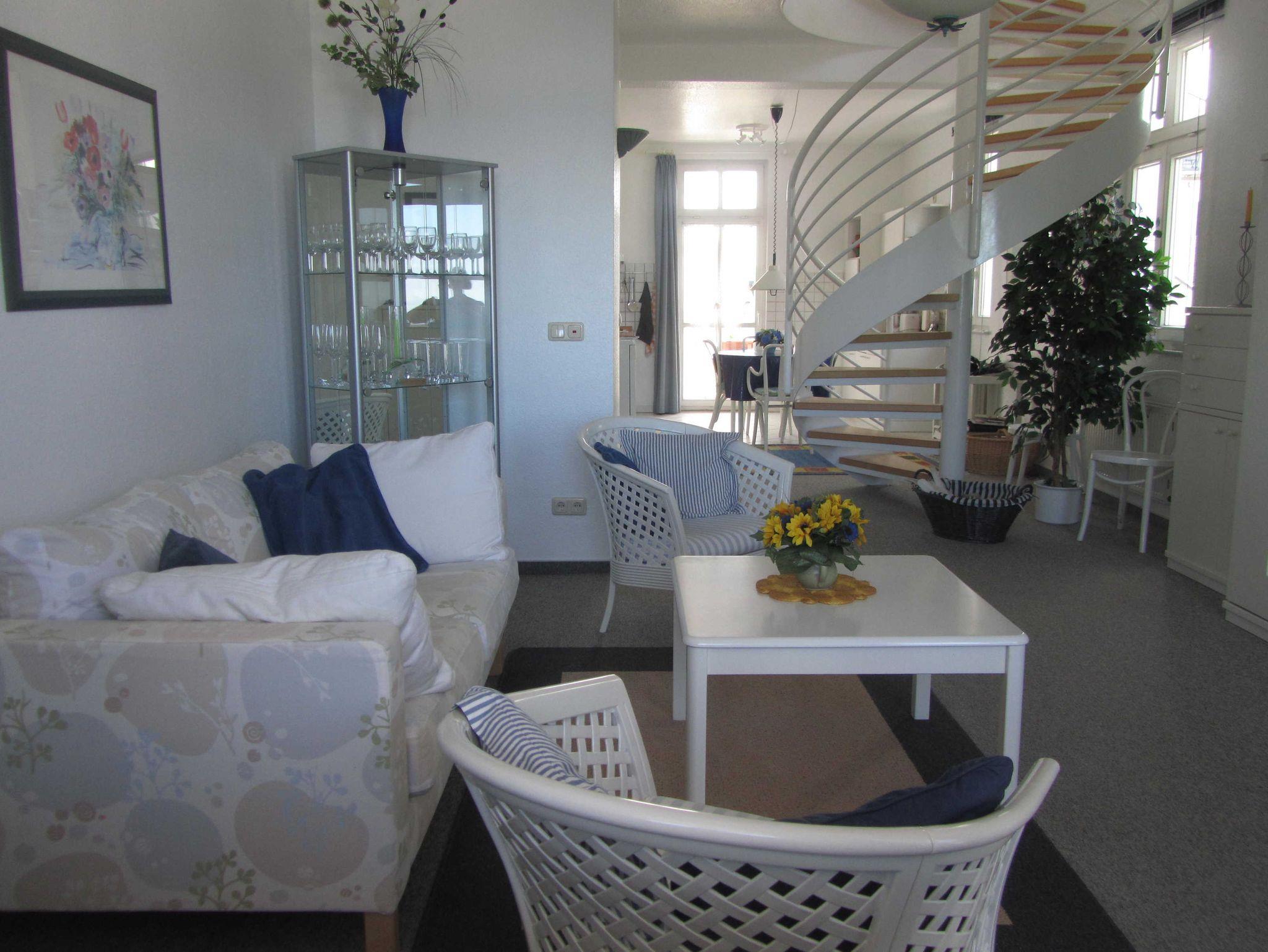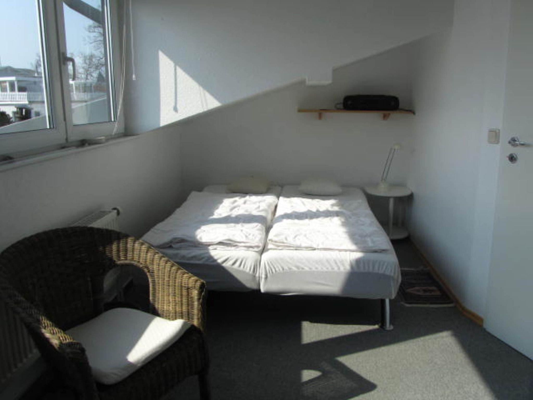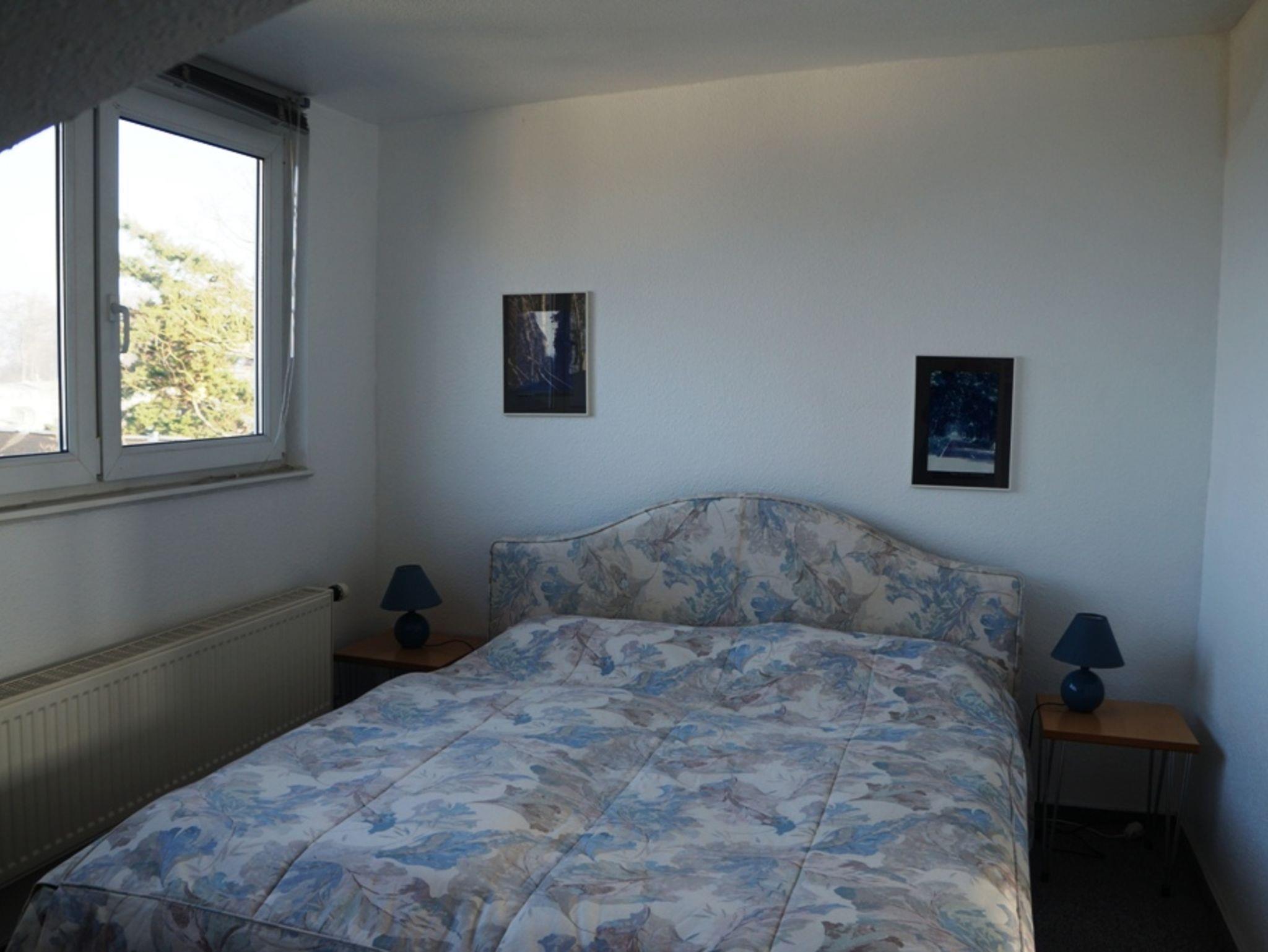 Über eine Wendeltreppe gelangen Sie ins Dachgeschoss zu den beiden Schlafzimmern mit jeweils einem französischen Bett ( 1,40 * 2,00 m), großem Kleiderschrank und einer Korbstuhlgarnitur.