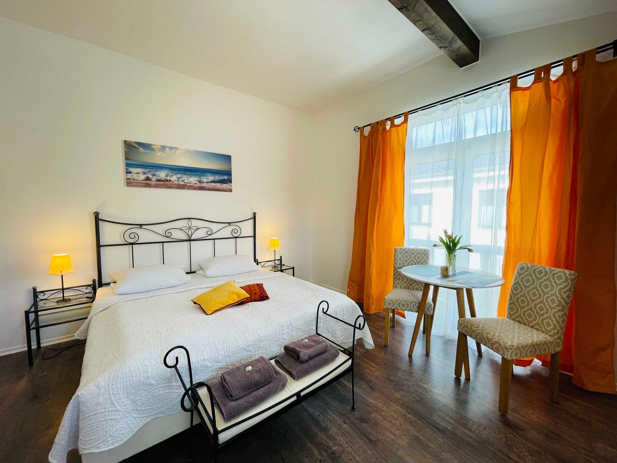 Es erwarten Sie sechs geräumige und stilvoll eingerichtete Appartements für je zwei Personen (Apartment 6 für 3 Personen).