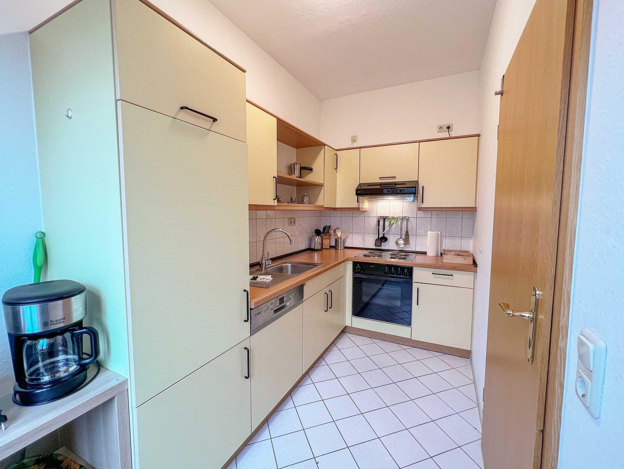 1 separate Küche, ausgestattet mit: 4-Platten-Kochfeld, großer Backherd, Dunstabzugshaube, großer Kühlschrank mit Gefrierfach, Geschirrspüler, Toaster, Kaffeemaschine, Wasserkocher und Küchenutensilien.
