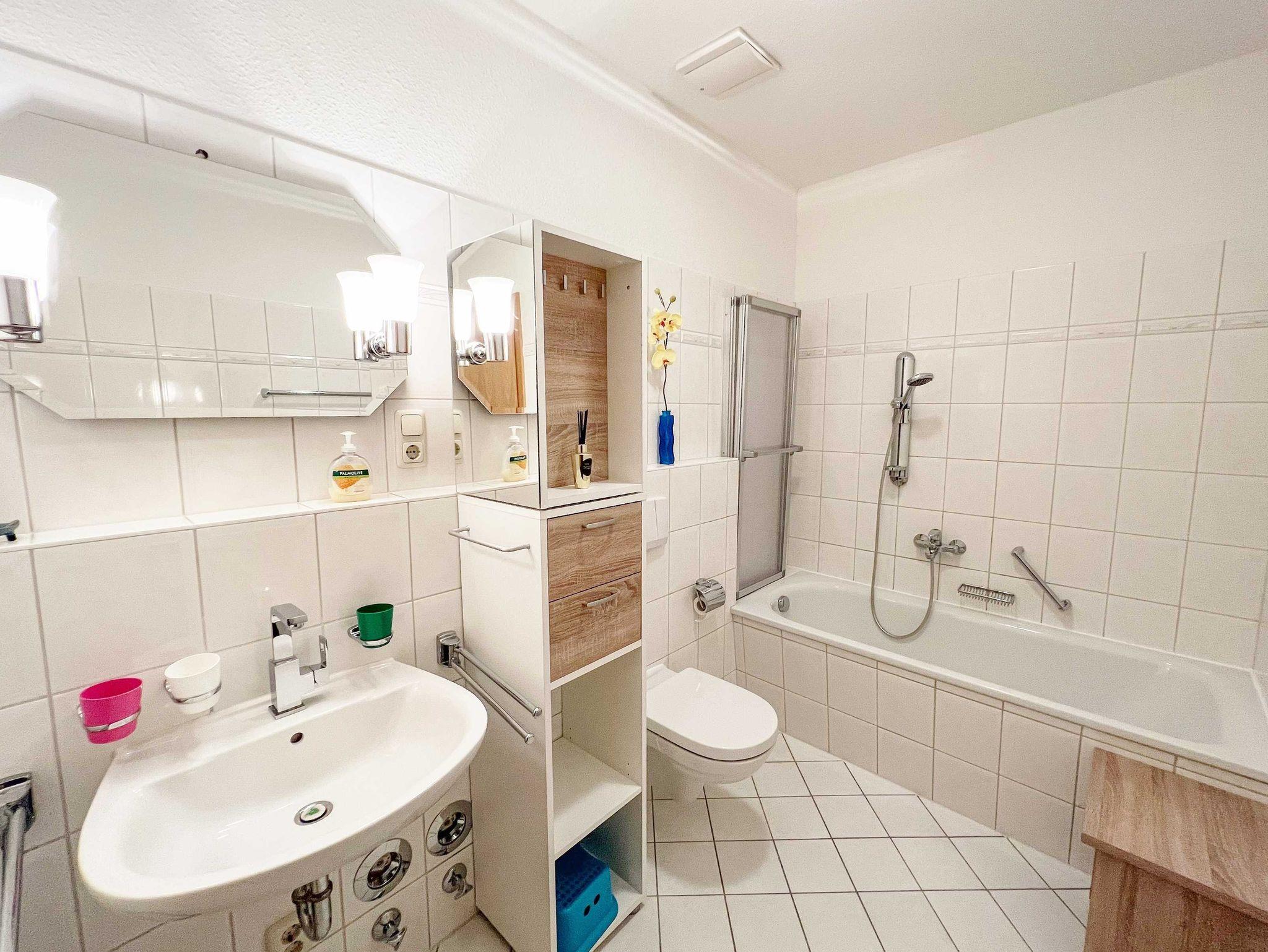 Ein großzügiges Badezimmer mit Duschbad und WC gehört mit zur Wohnung.