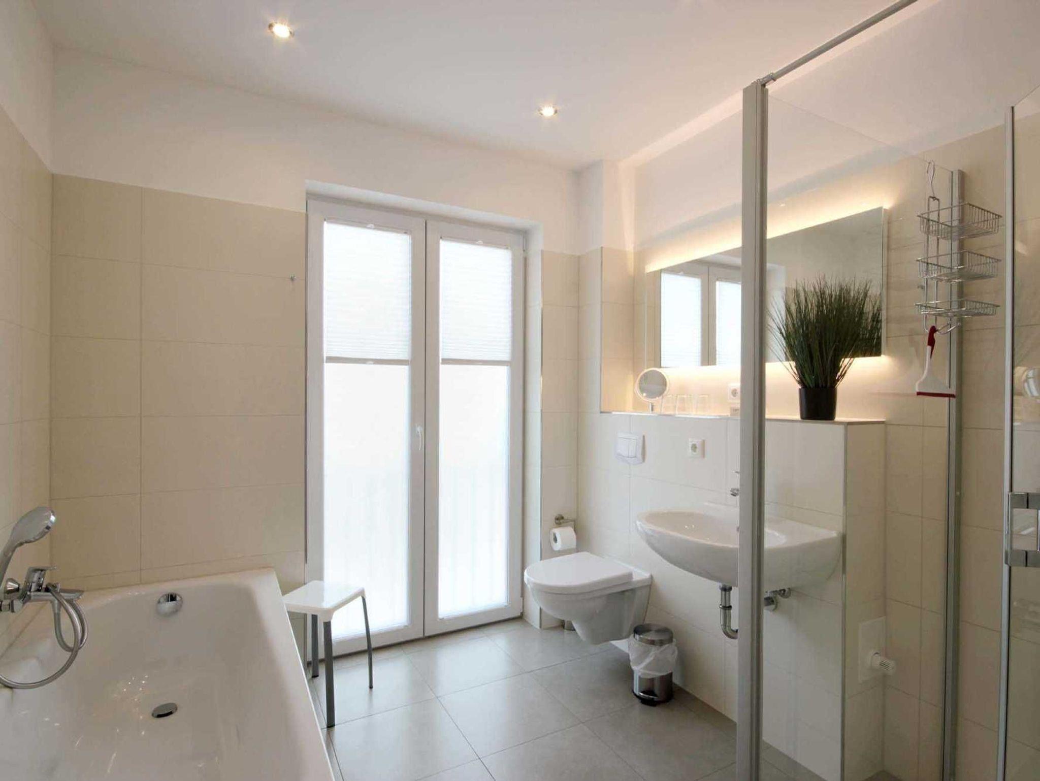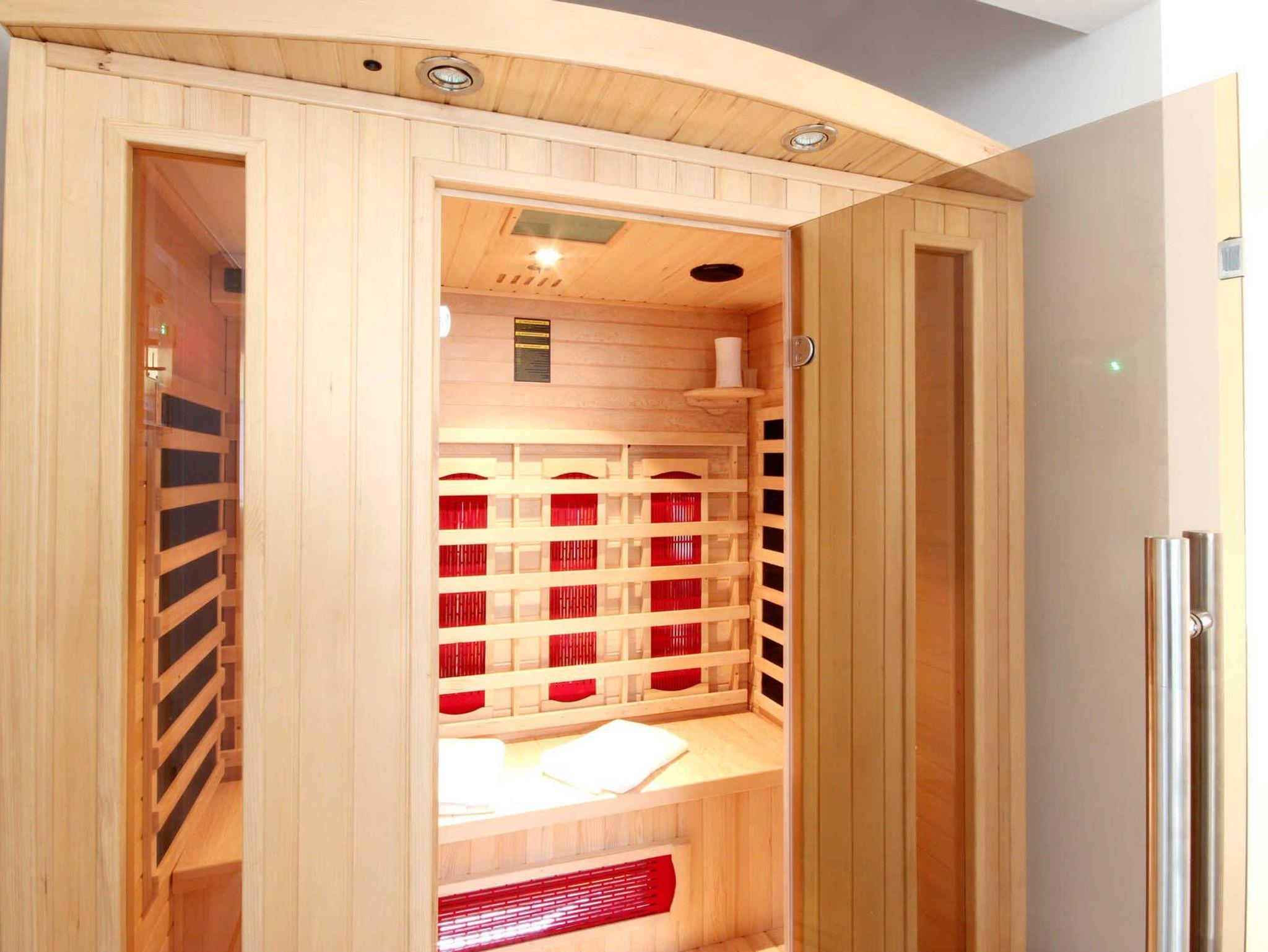 Über eine Treppe gelangen Sie in das Obergeschoss des Hauses mit 3 separaten Schlafzimmern. Hier erwarten Sie himmlische Träume in 2 gemütlichen Boxspringbetten und einem Standard-Doppelbett. In jedem Schlafraum befinden sich 1-2 Kleiderschränke. 2 Schlafräume haben einen weiteren Flachbildfernseher (43 Zoll). Ein Schlafzimmer verfügt über den direkten Zugang zum Balkon. Auf dieser Etage befindet sich nicht nur ein weiteres Tageslicht-Bad mit Dusche,Badewanne, Waschtisch und WC, sondern auch eine hauseigene Infrarotsauna (Münzbetrieb).