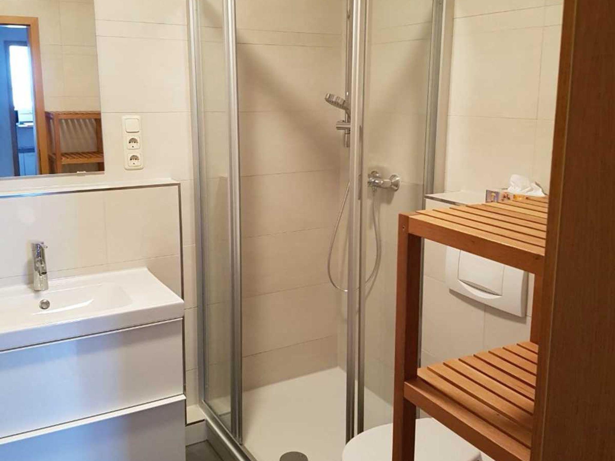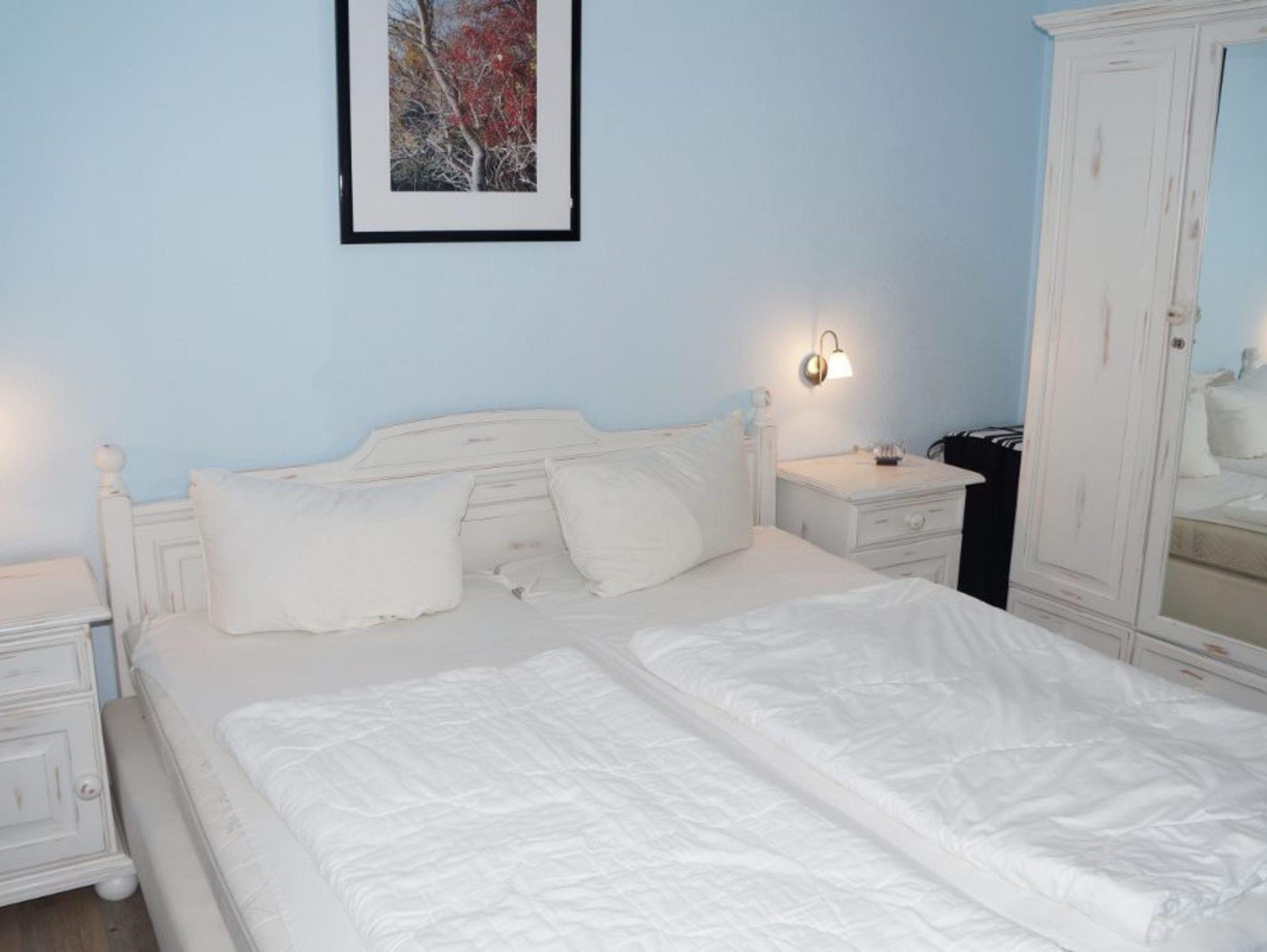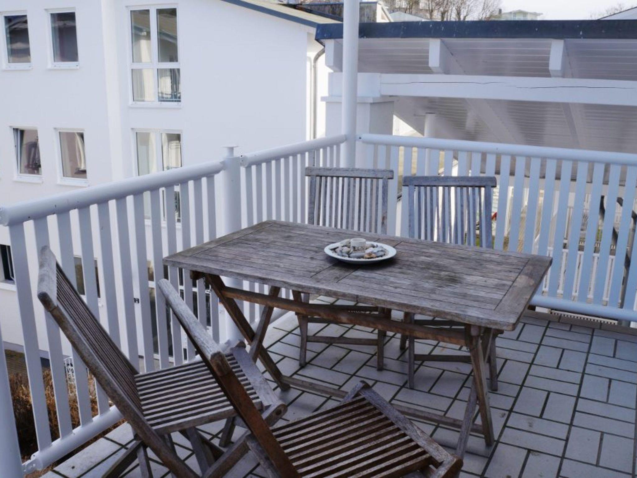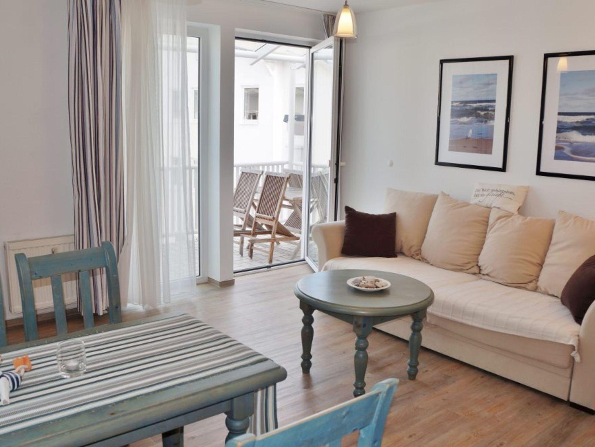 Das 2-Raum-Appartement 17 der Villa Karola befindet sich im 2. OG und verfügt über ca. 50 m² Wohnfläche und einen großzügig mit Gartenmöbeln bestuhlten Balkon, der zum gemeinsamen Frühstück im Freien einlädt. Der Balkon ist vom Wohnzimmer und Schlafzimmer begehbar. Der helle Wohn- und Essbereich des Appartements bietet neben einer großen bequemen Couch mit Schlaffunktion auch einen modernen Flatscreen-TV mit DVD/Heimkinoanlage. In der separaten Küche macht das Kochen im Urlaub richtig Spaß, denn die Einrichtung umfasst neben Geschirr und sämtlichen Küchenutensilien Ceranfeld, Kühlschrank, Geschirrspülmaschine, Backofen, sowie Kaffeemaschine, Wasserkocher und Toaster. Das Schlafzimmer ist liebevoll mit einem Doppelbett und einem geräumigen Kleiderschrank möbliert und auch das Duschbad lässt keine Wünsche offen. Das Appartement ist für 2-4 Personen buchbar.