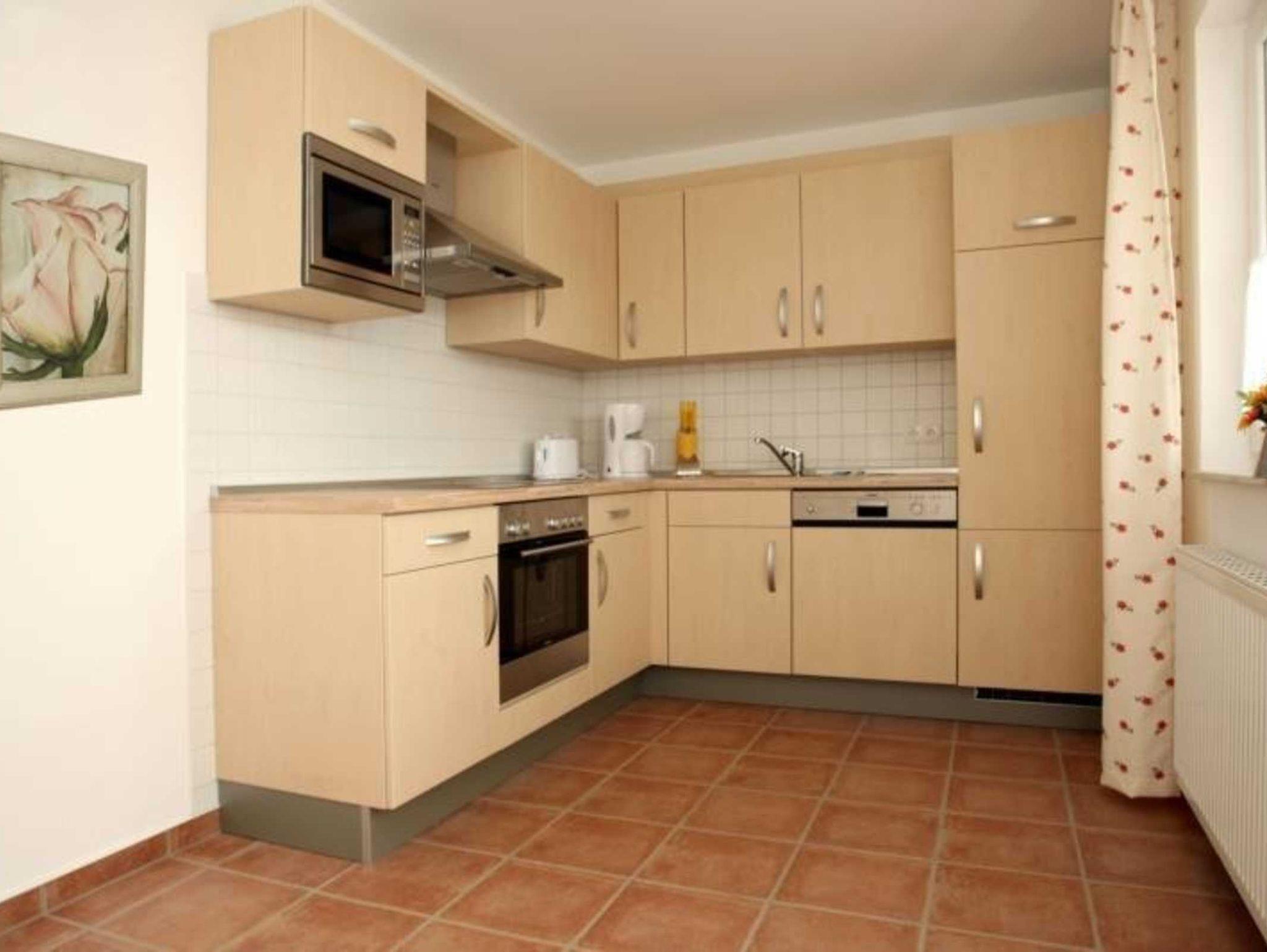 4-Platten Ceranfeld- Backofen- Mikrowelle- Kaffeemaschine, Wasserkocher- Toaster- Geschirrspülmaschine- Kühlschrank mit 3-Sterne Gefrierfach- separater Essbereich