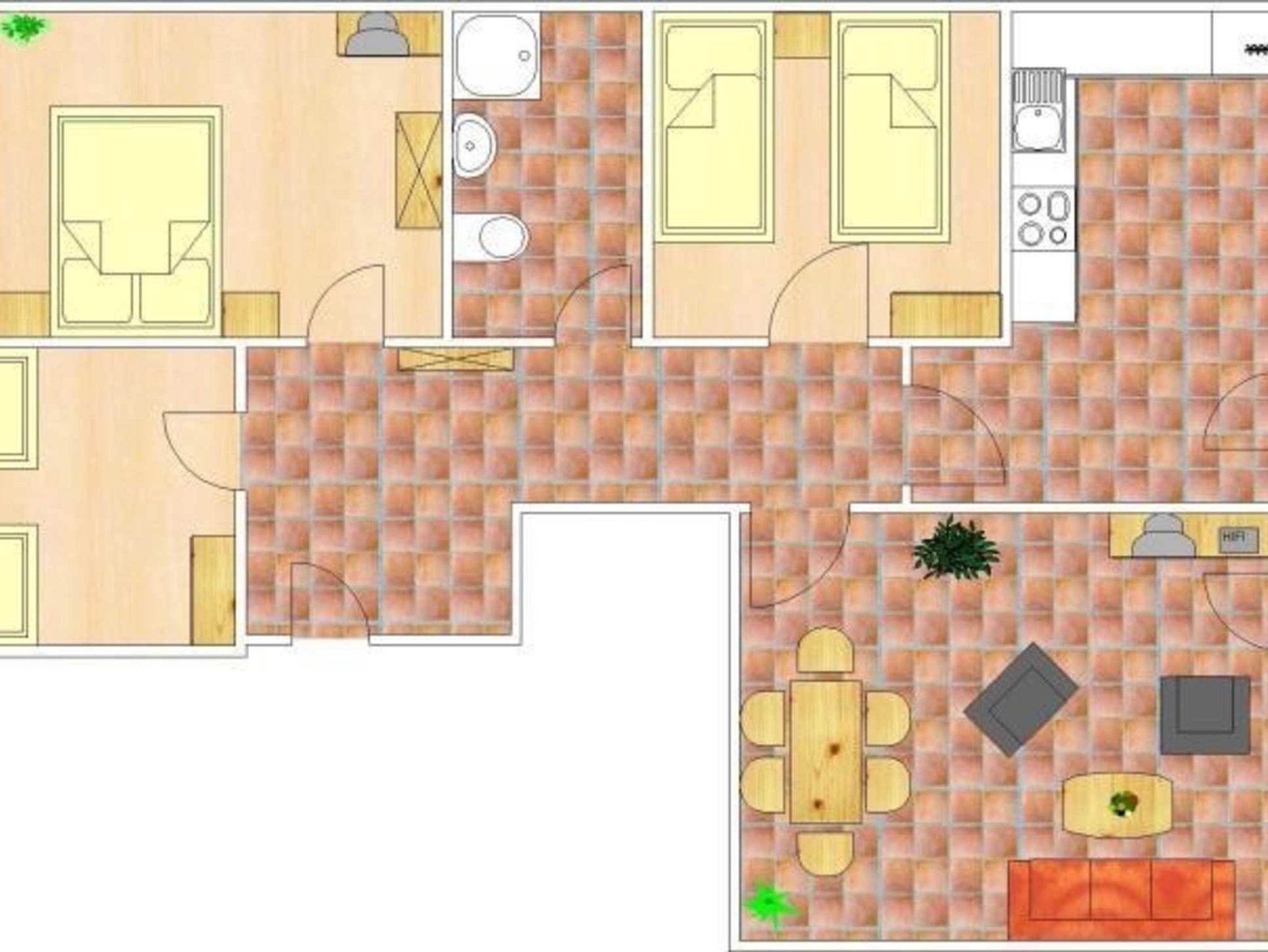 3 Schlafzimmer für jeweils zwei Personen. Separate Küche, Badezimmer und großer Balkon. Flur, Wohnzimmer und Küche sind gefliest, die Schlafzimmer mit Laminat ausgestattet.