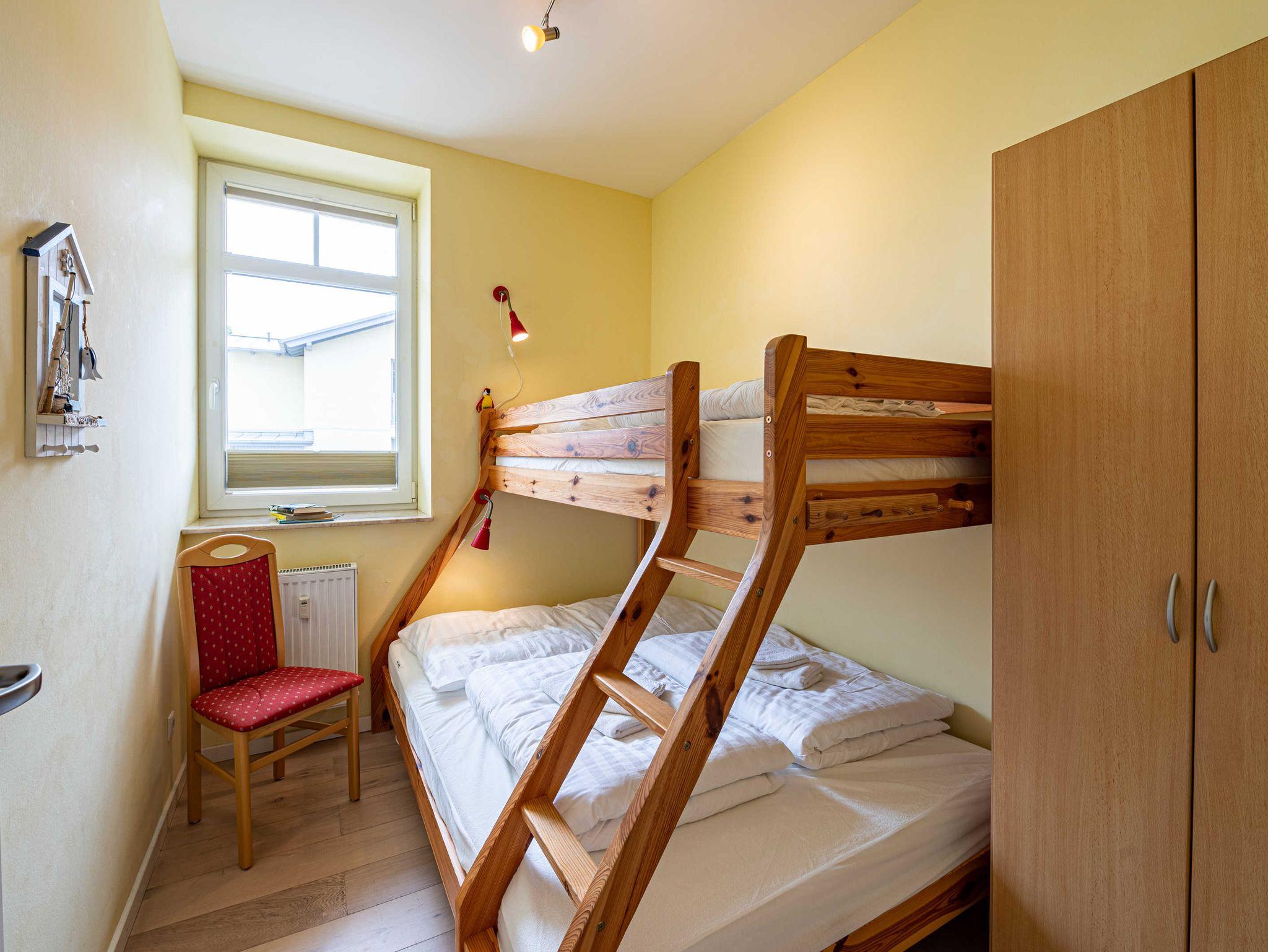 Schlafen 2: Doppelstockbett (unten 1,40 x 2,00 m oben 0,90 x 2,00 m) Verdunkelungsmöglichkeit,