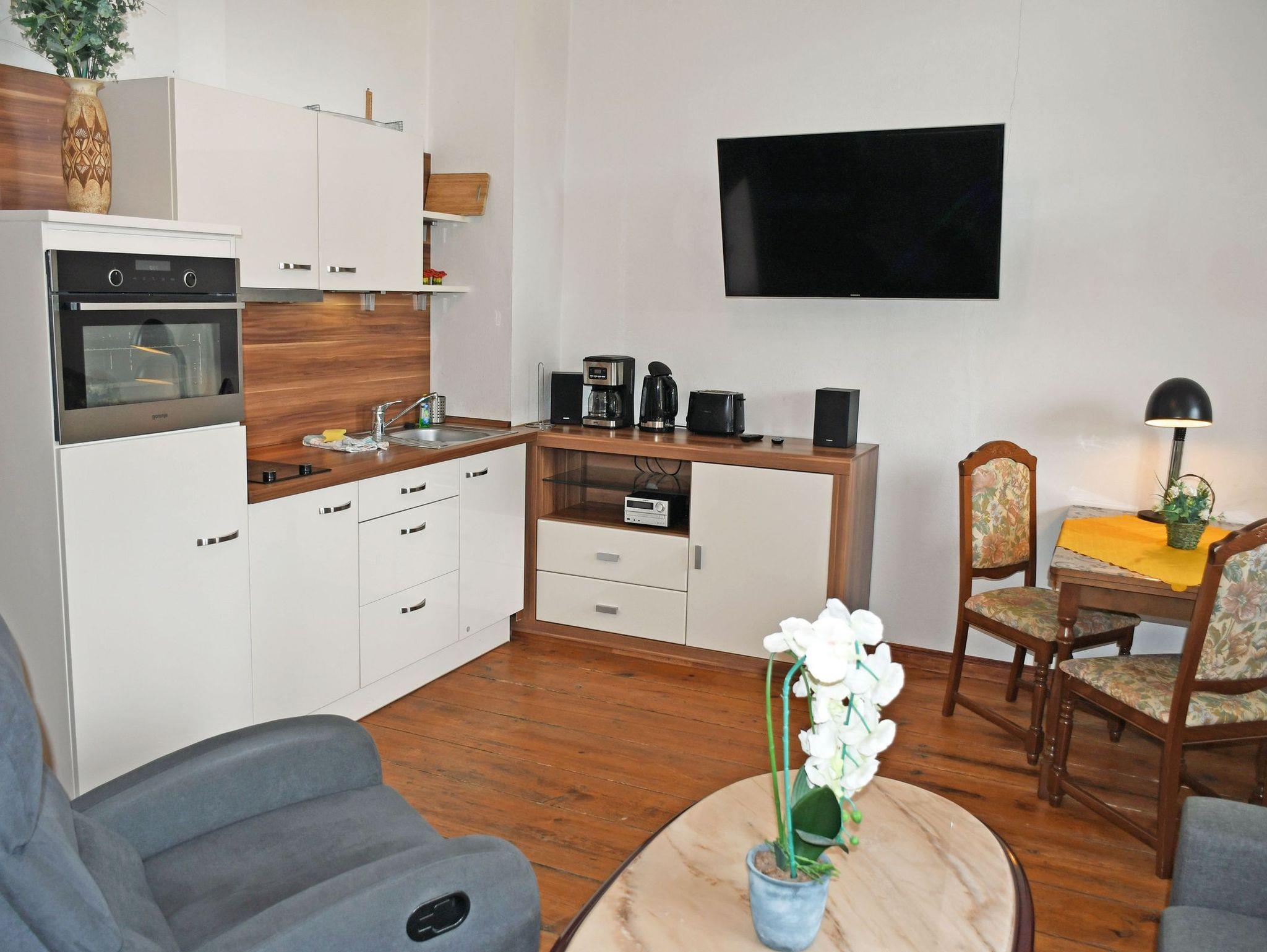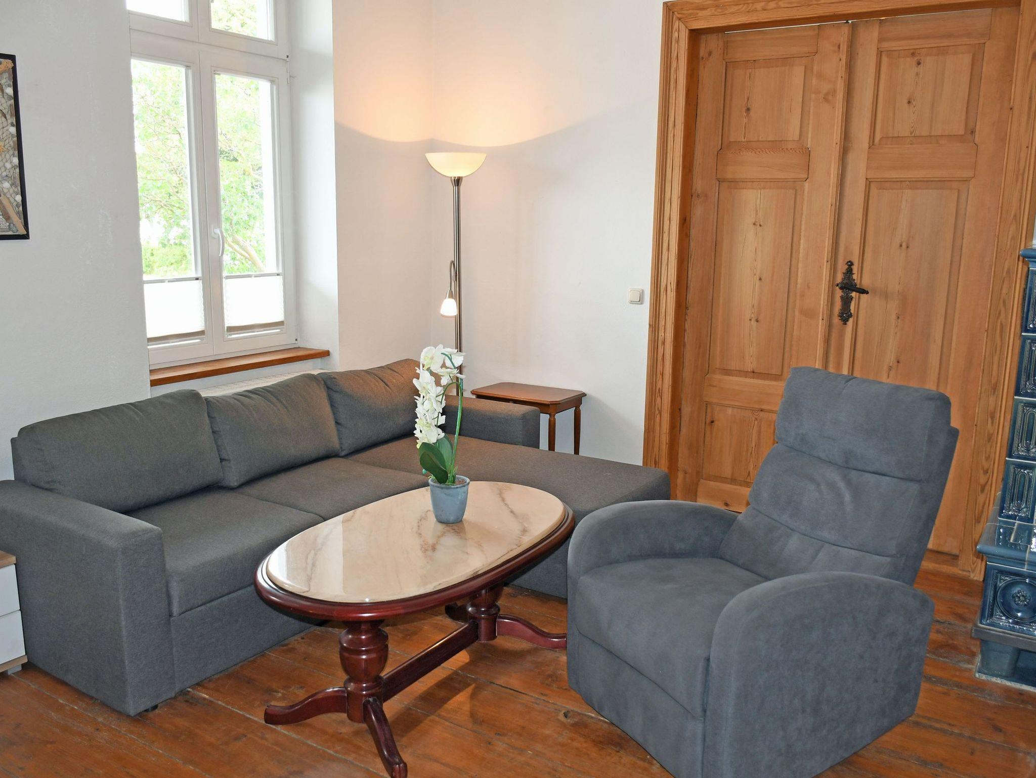 Die vier Nichtraucher-Ferienwohnungen (separater Eingang, 25-35 qm, 1 Wohnzimmer, 1-2 Schlafzimmer, Küchenzeilen, Bad mit Dusche oder Wanne und WC, WLAN-Internet, max. 2 - 4 erwachsene Gäste und ein Kind im Kinderreisebett) sind modern und komfortabel eingerichtet. Zum Objekt gehört im Erdgeschoss ein großer Aufenthaltsraum mit kleiner Bibliothek und Kamin, der zum Verweilen und Entspannen einlädt. Der Innenhof mit einem Grillkamin sowie einer allgemein zugänglichen Terrasse ist für alle Urlauber des Hauses nutzbar.