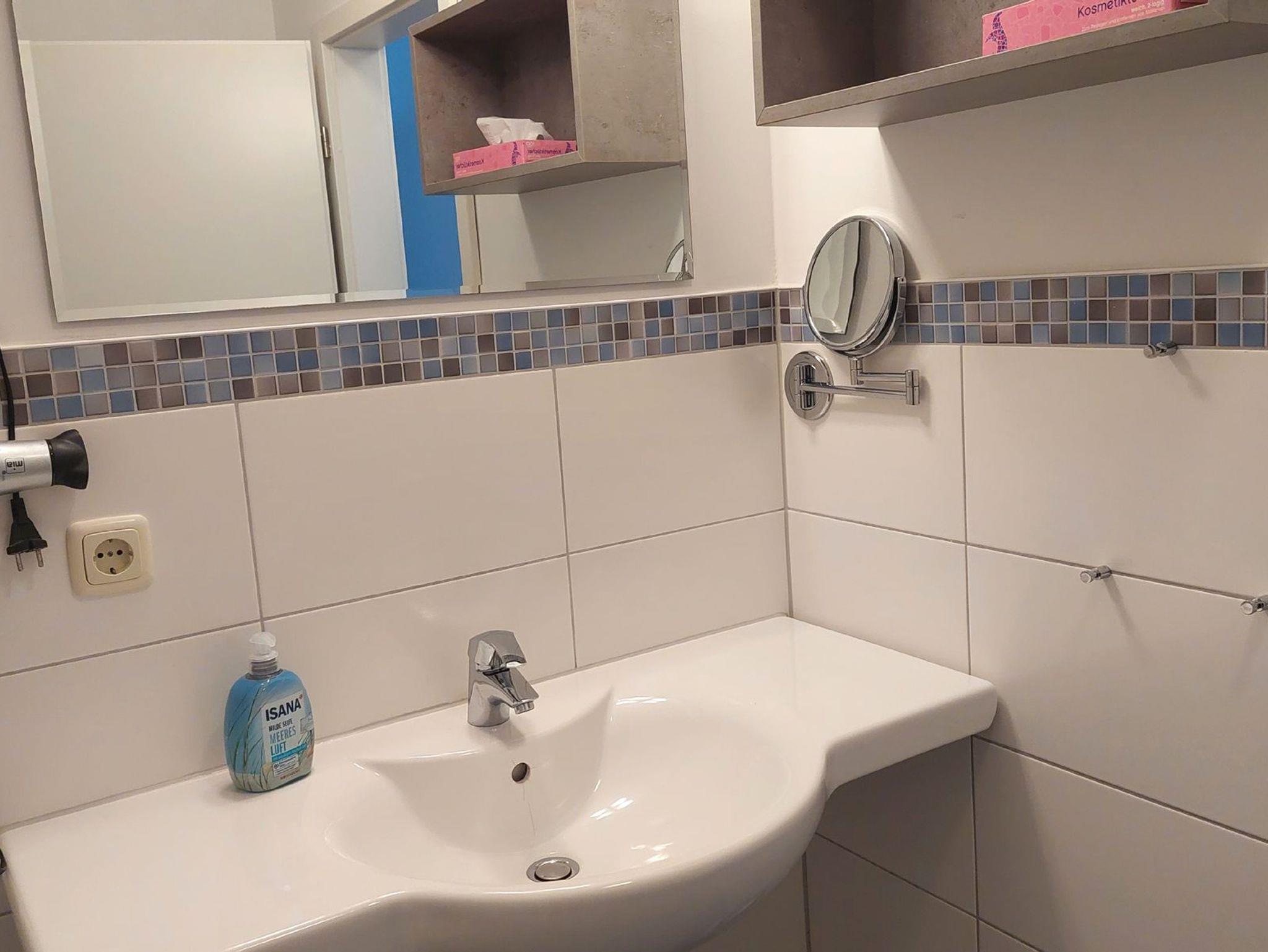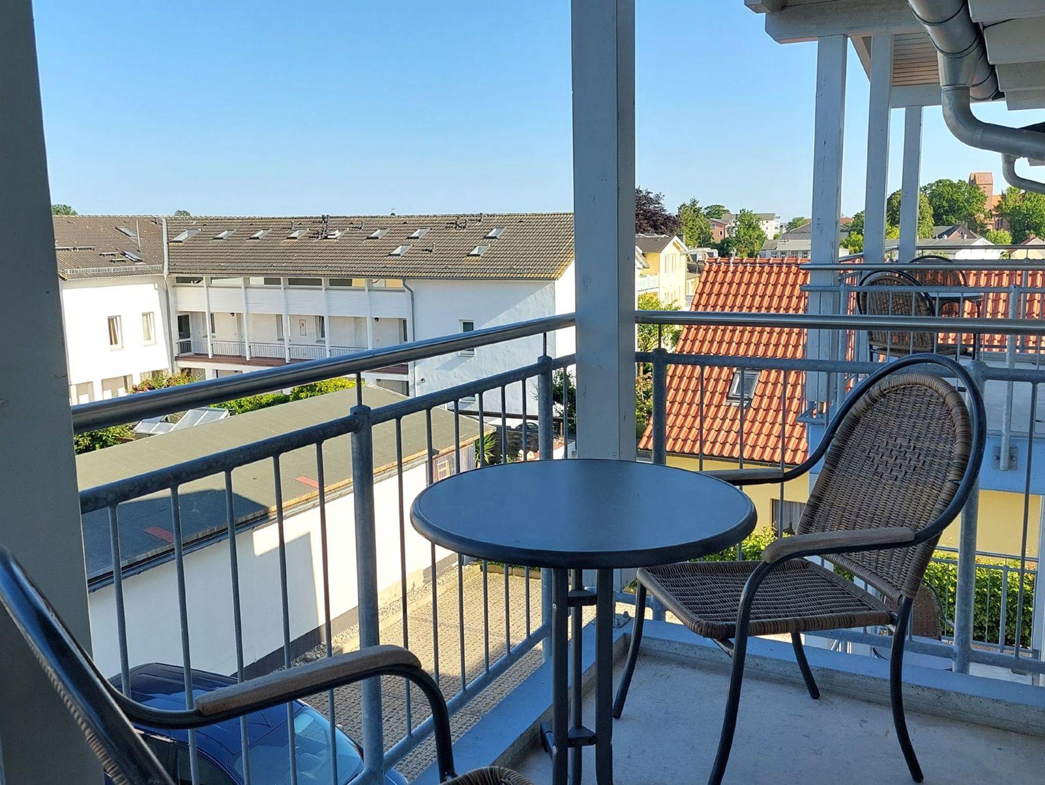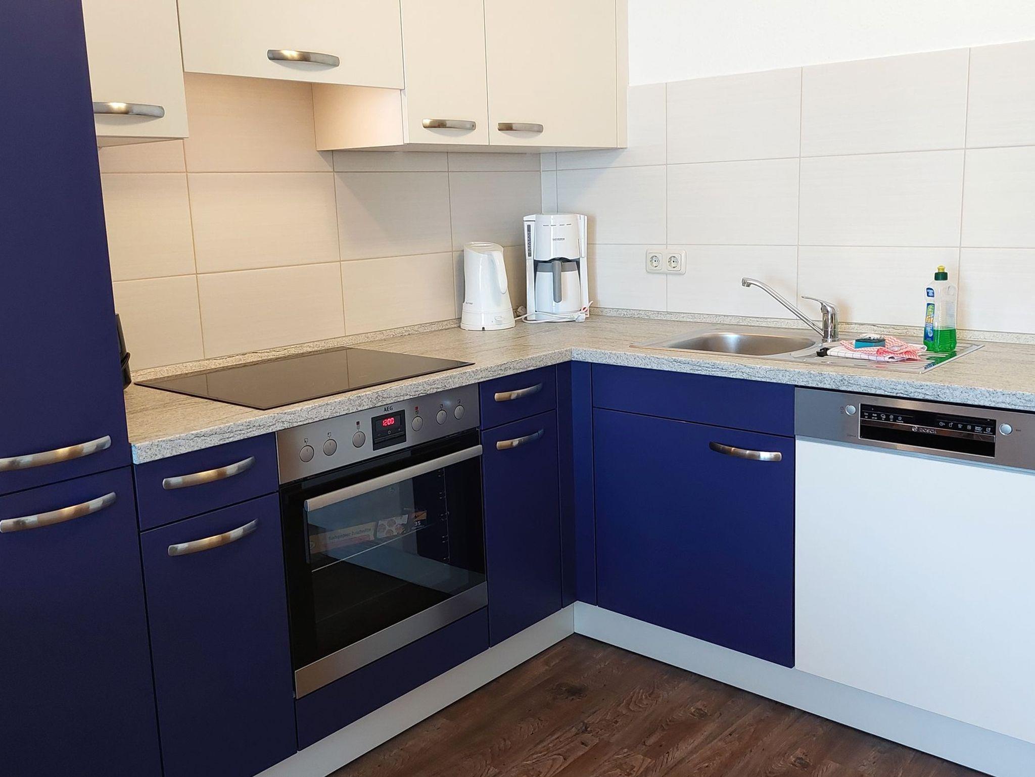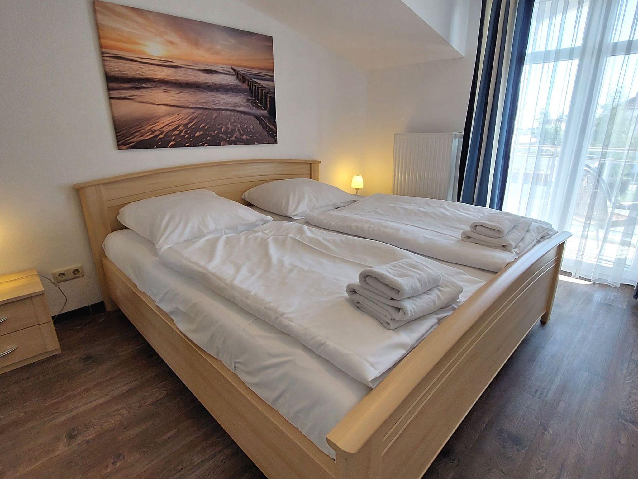 Diese freundliche Wohnung ist aufgeteilt in einen Wohnraum mit Balkon und integrierter Küchenzeile, ein Schlafzimmer ebenso mit Zugang zum Balkon und ein Duschbad mit Waschtisch und WC. Das Wohnzimmer begrüßt Sie mit einem Schlafsofa und Sessel sowie Flachbild-TV. Das Schlafzimmer verfügt über ein Doppelbett (1,80m x 2m) sowie einen Kleiderschrank. Die Küchenzeile ist mit Backofen, Geschirrspüler, Cerankochfeld, Kühlschrank mit kleinem Gefrierfach, Cerankochfeld, Mikrowelle, Kaffeemaschine, Wasserkocher und Toaster ausgestattet. Highlights: Kostenfreies WLAN sowie ein frei wählbarer PKW-Stellplatz direkt am Haus.