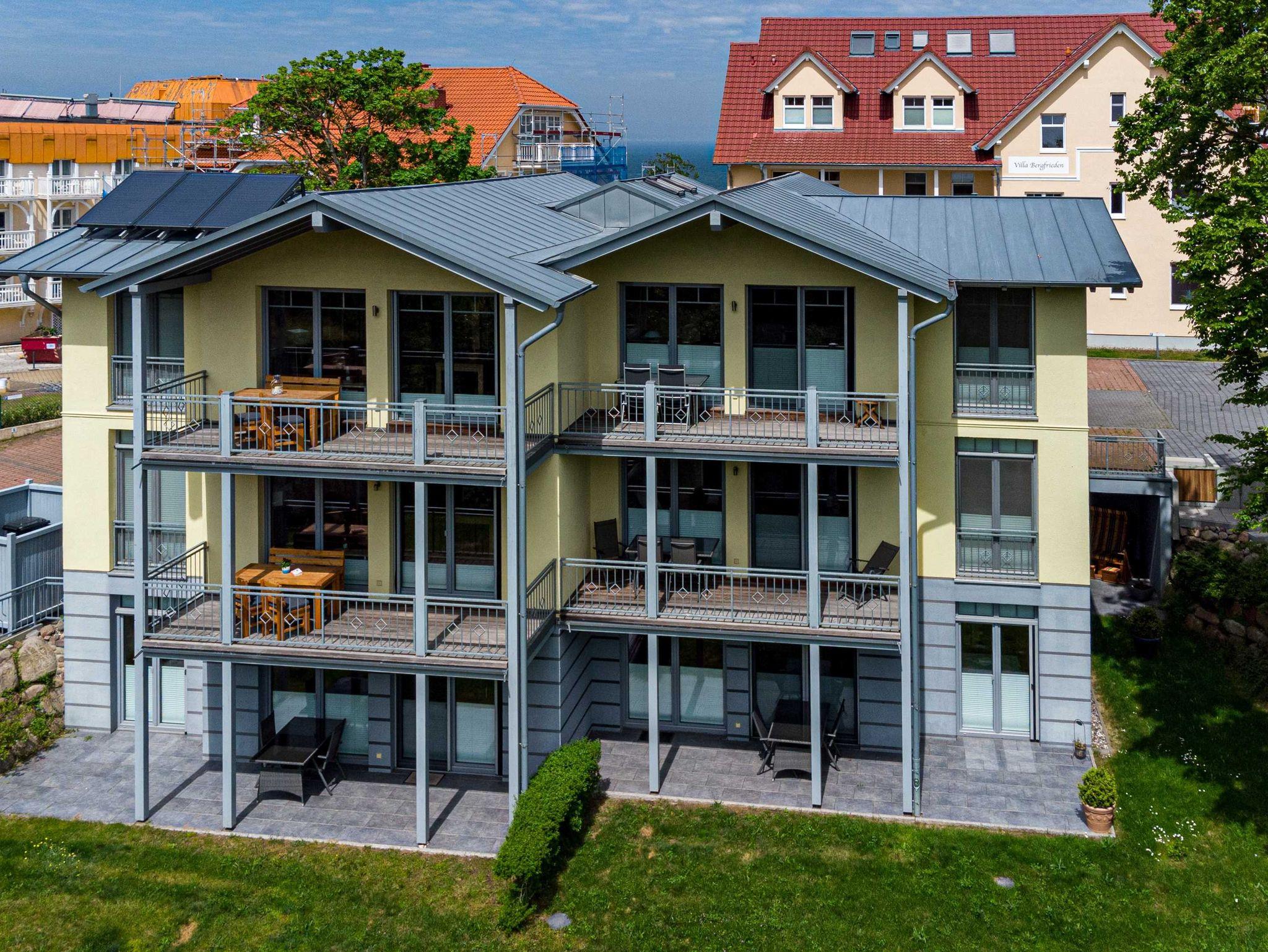 Die in 2010 erbaute Villa mit Blick ins Grüne und zum Meer ist mit modernen komfortablen Wohnungen ausgestattet. Die großzügigen überdachten Süd-Terrassen/-Balkone mit Blick in die herrliche Landschaft des Nordperd laden zu jeder Tageszeit ein, die Natur und frische Seeluft zu genießen.