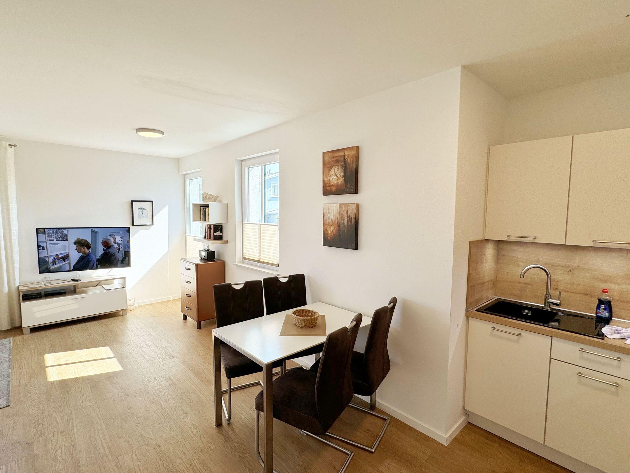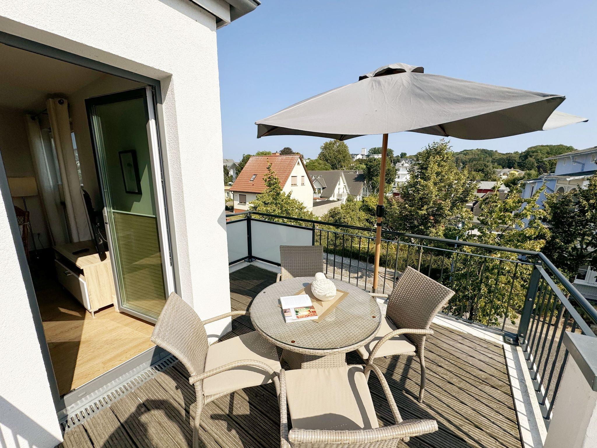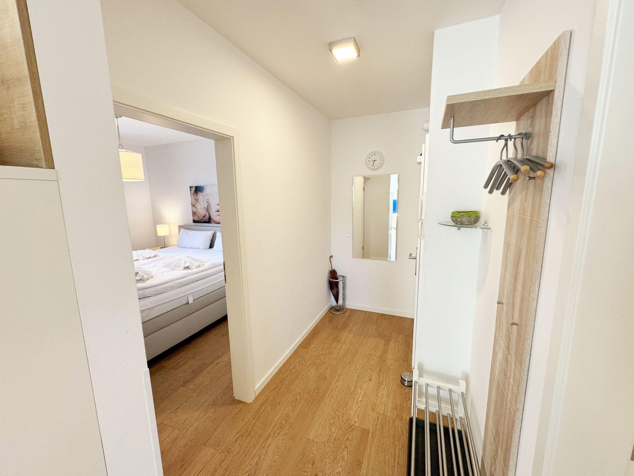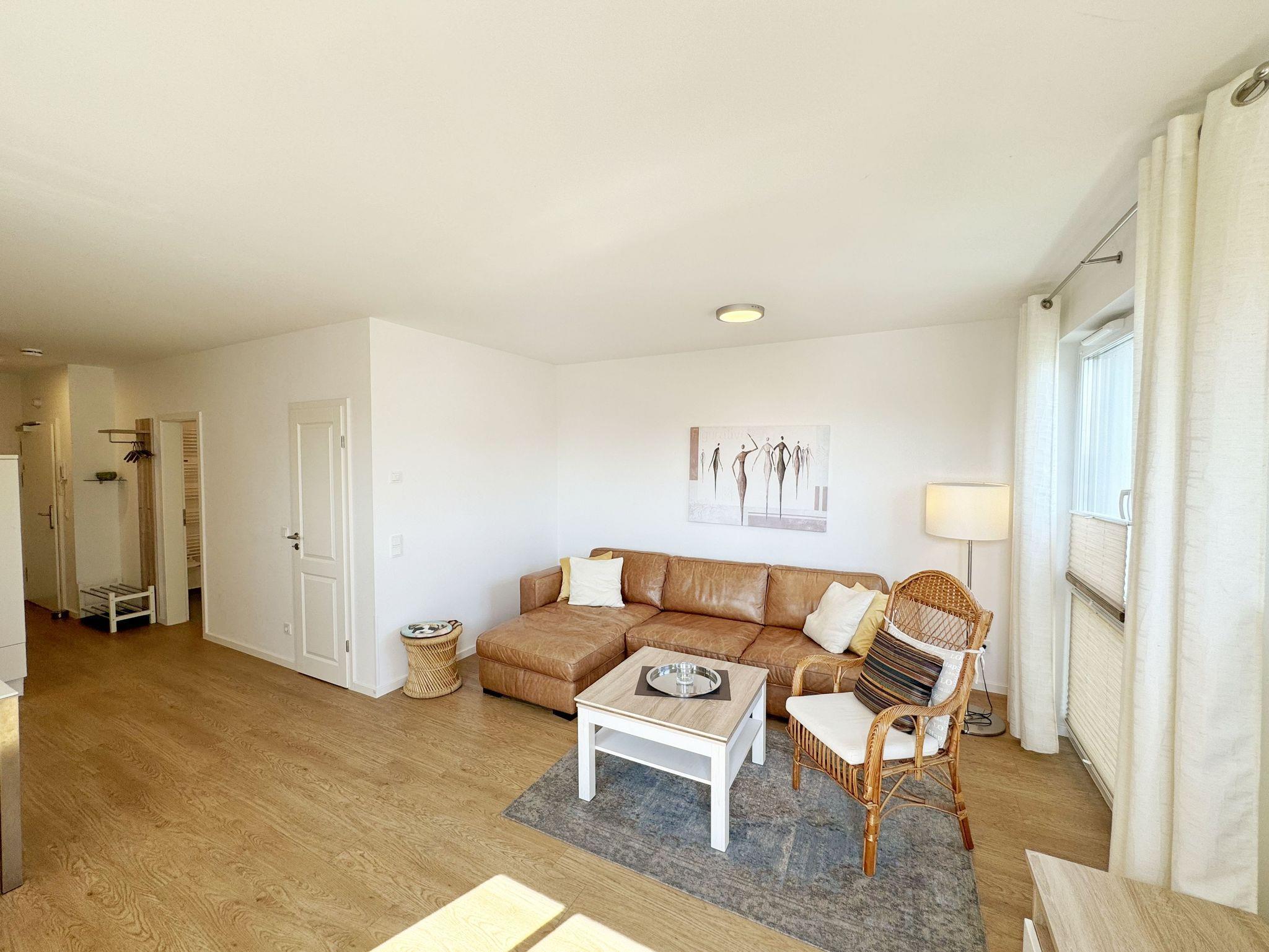 Die Wohnung Nr. 4 der Villa Anni ist eine komfortable, ca. 57 m² große und stilvoll eingerichtete Nichtraucherferienwohnung im ersten Obergeschoss. Sie bietet Ihnen ausreichend Platz für 2 bis 3 Personen. Der kombinierte Wohn-/Koch- und Essbereich mit der modernen und integrierten Küchenzeile lässt mit Ceranfeld, Backofen, Geschirrspüler, Mikrowelle, Kühlschrank mit Gefrierfach, Kaffeemaschine, Wasserkocher, Toaster und diversen Küchenutensilien keine Wünsche offen. Der Essbereich fügt sich der Küchenzeile an. Der offene Wohnbereich verfügt über eine gemütliche Sitzecke (Liegefläche 1,50m x 2,00m) mit Couchtisch, eine Leselampe, ein TV mit CD-Player, DAB-Radio und einen Blu-Ray Player. Auch auf einen Internetanschluss (WLAN) müssen Sie in Ihrem Urlaub nicht verzichten. Dieser ist für Sie inklusive! Eine Auswahl an Gesellschaftsspielen und Urlaubslektüre sorgt für eine gelungene Abwechslung. Der nach Nord/Osten mit Blick Richtung Meer ausgerichtete, und bestuhlte Balkon mit Sonnenschirm ist direkt vom Wohnbereich aus zu erreichen. Das Schlafzimmer verfügt über ein Boxspringbett mit Tonnentaschenfederkernmatratzen (1,80m x 2,00m), Nachttischablagen, Flachbild-TV und einen Kleiderschrank. Für einen ruhigen Schlaf sorgt eine Verdunklungsmöglichkeit sowie ein Insektenschutzgitter. Das Bad ist mit einer ebenerdigen Dusche, Waschplatz, Kosmetikspiegel, WC, Handtuchheizkörper und Fön ausgestattet. Im Schlafzimmer ist ein Insektenschutzgitter vorhanden. Alle Räumlichkeiten sind mit einer Fußbodenheizung versehen und sorgen für eine angenehme Wärme. Ein eigener PKW-Stellplatz (Nr. 4) befindet sich in der Tiefgarage (Einfahrtshöhe: 2,00 m) des Hauses. 1 kleiner Hund ist gegen eine Gebühr in der Wohnung erlaubt! Die Erstausstattung eines Wäschepaketes (komplette Bettwäsche, 1 Duschhandtuch, 2 kleine Handtücher) können Sie bis 14 Tage vor Anreise gegen einen Aufpreis dazu buchen oder durch eigene ergänzen. Ab 2 gebuchten Paketen erhalten Sie einmalig 1 Geschirrhandtuch und 1 Duschvorleger hinzu.