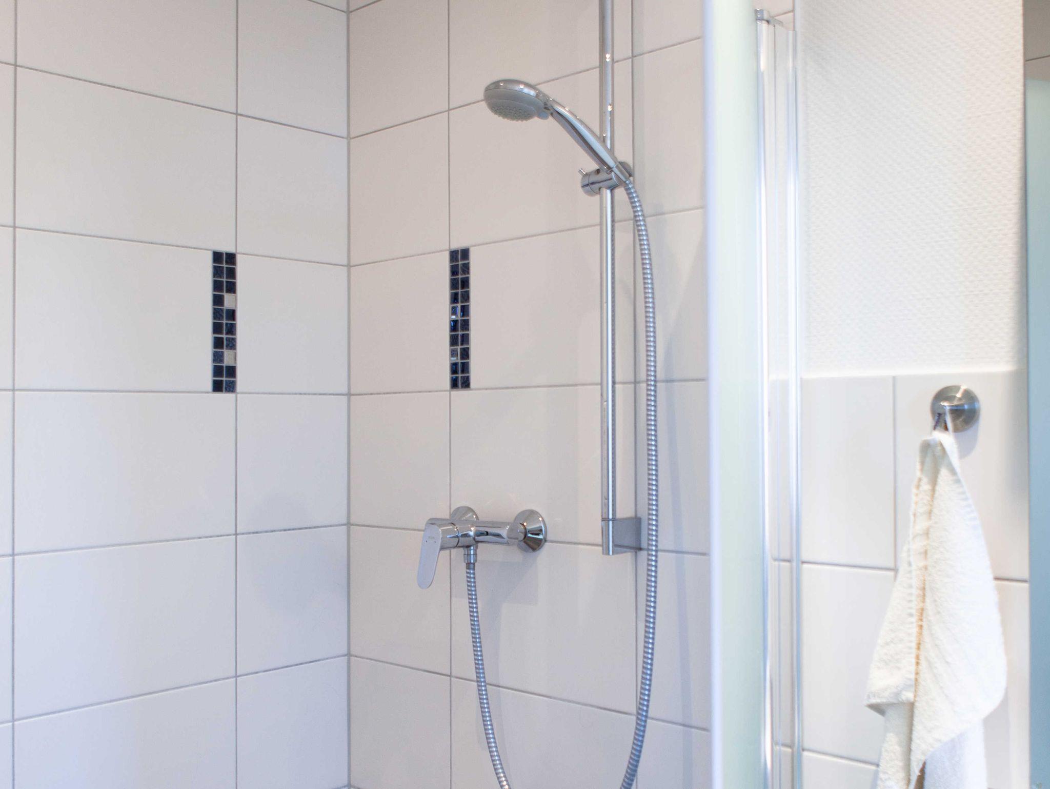 Die 70m² große Ferienwohnung mit seitlichem Meerblick befindet sich im Einfamilienhaus des Vermieters und wird über einen gemeinsamen Flur betreten.