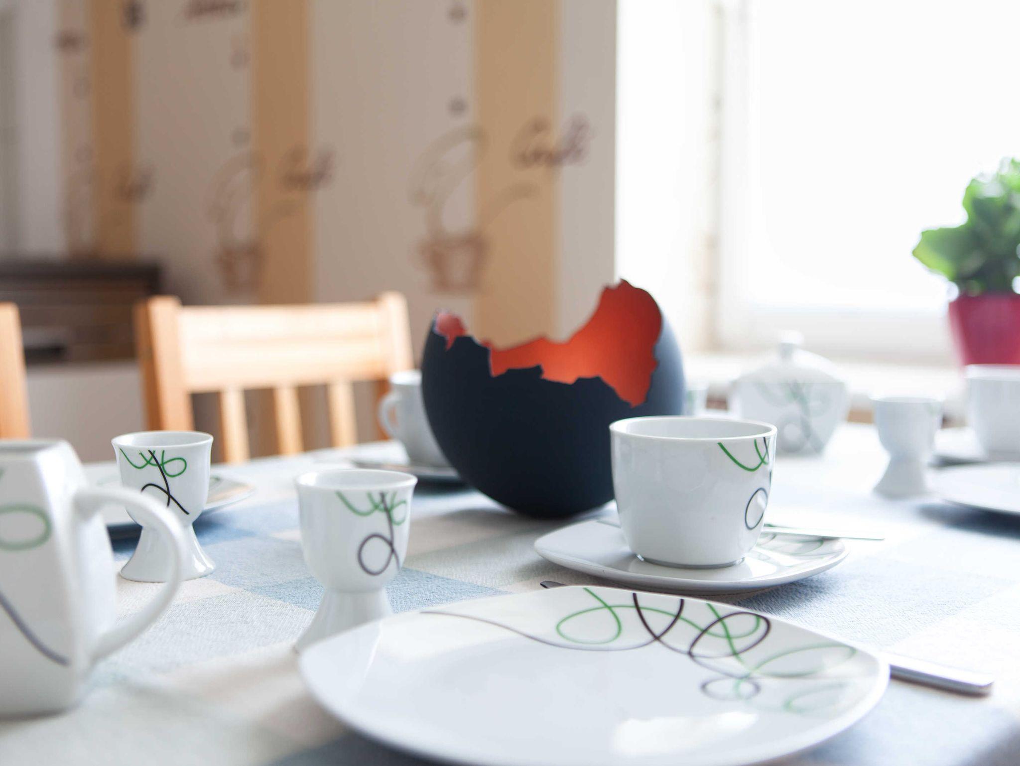 Die Ferienwohnung besteht aus einem Wohnzimmer mit Schlafcouch und TV, einem Schlafzimmer mit Doppelbett (180x200; getrennte Matratzen) und Kleiderschrank, einer separaten Küche mit Ceranherd, Backofen, Geschirrspüler, Kaffeemaschine, Essbereich mit Esstisch sowie ein Badezimmer mit Dusche und WC.