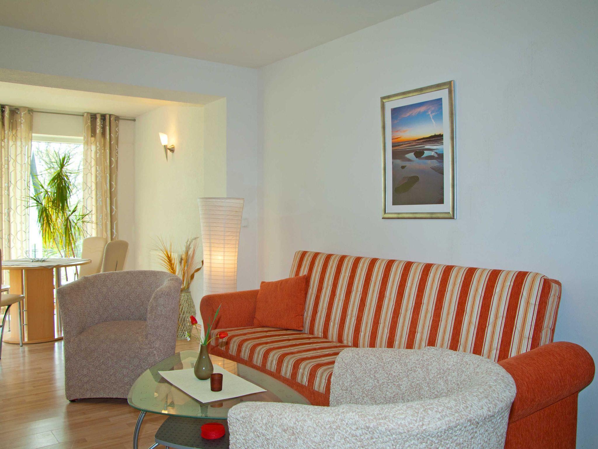 Einkaufsmöglichkeiten sowie der Nordstarnd mit seiner Seebrücke. Zum Ortszentrum sind es nur ca. 10 min zu Fuss. Hier befinden sich alle Geschäfte, Gaststätten und auch medizienische Einrichtungen.