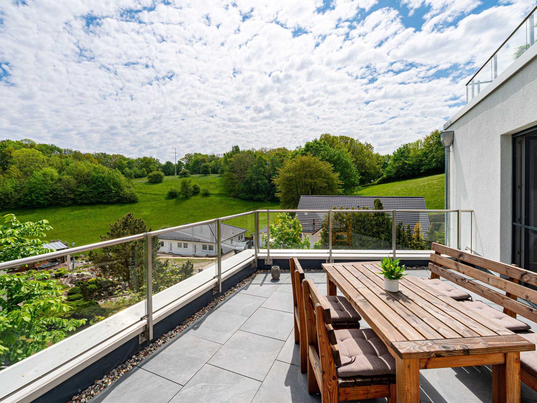 Das in 2019 neu erbaute Terrassenhaus mit seinem außergewöhnlichen Stil besticht durch seine