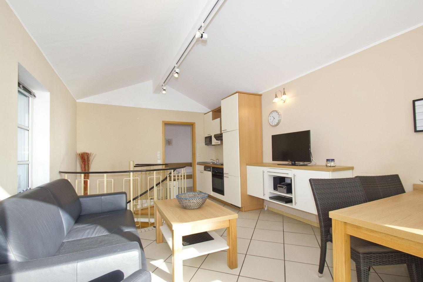 WOHNEN // Wohnraum mit Essbereich, Esstisch mit 5 Stühlen, Sitzgarnitur, Kabel-TV, Radio, CD-Player ++