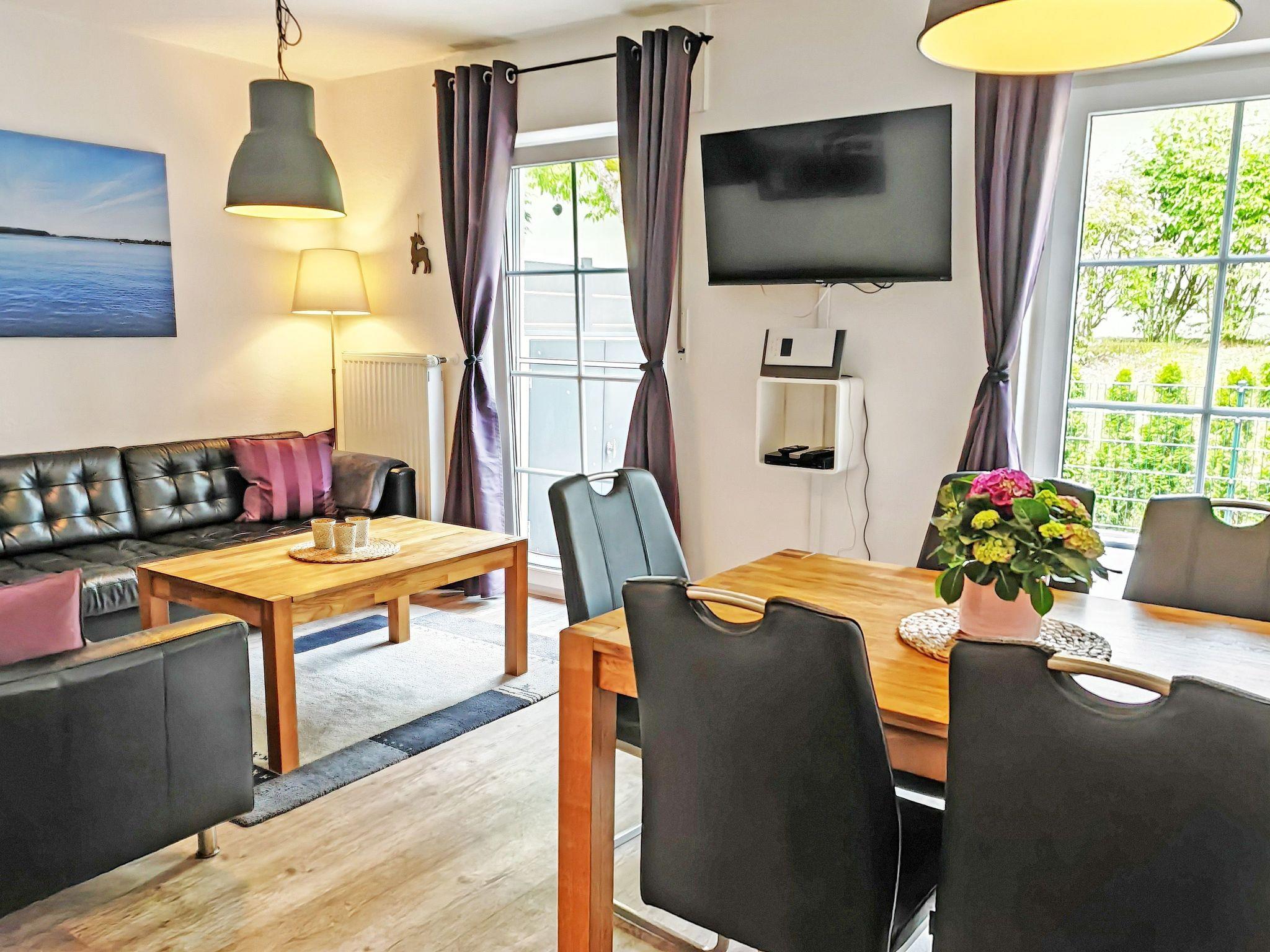 Newly furnished 4-star holiday home 200 metres from Lake Plau and only a 2-minute walk to the beautiful bathing area. Very quietly situated holiday park with playground, table tennis room, bike hire and private bathing area. Our holiday home Urlaub mit Hund am Plauer See has an exclusive interior with WLAN, LED-LCD 40' HD-SAT-TV with Blu-Ray player, play corner with toys and painting materials, children's books, children's music, portable MP3/CD player, two children's high chairs, two travel cots, changing table, stair gate. 3 bedrooms, guest WC and a bathroom with large shower. Outside there is: 1 barbecue, a beach chair, terrace with six seats in the garden and large parasol. With changing table, nappy pail, Tripp Trapp, stair gate upstairs and downstairs, our house is perfectly equipped for holidays with (small) children. Dogs are welcome! The large terrace is completely fenced in! Our holiday home Urlaub mit Hund am Plauer See has an exclusive interior with WLAN, LED-LCD 40' HD-SAT-TV with Blu-Ray player, play corner with toys and painting materials, children's books, children's music, portable MP3/CD player, 2 x high chair, 2 x travel cot, changing table, stair gate. three bedrooms, guest toilet and a bathroom with large shower. Outside there is: barbecue, two sun loungers, fully fenced terrace with 6 seats in the garden and large parasol.