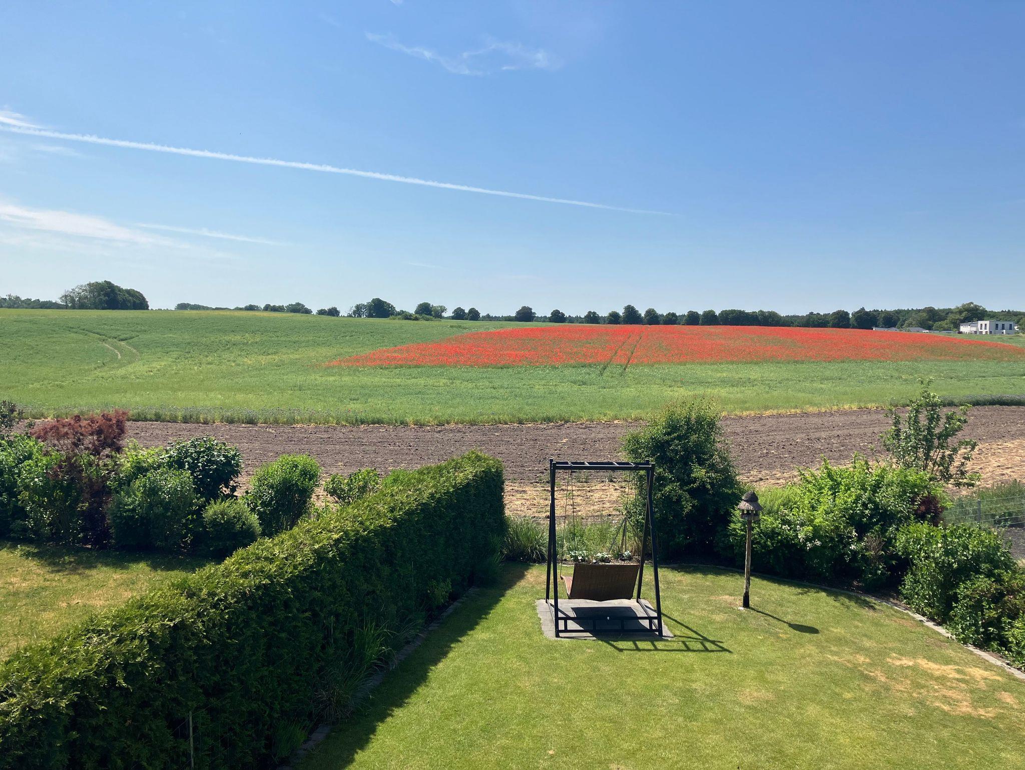 Die große Fensterfront bietet Ihnen einen traumhaften Blick auf die umliegenden Felder und schafft eine lichtdurchflutete und offene Atmosphäre. Auf dem Balkon können Sie die frische Luft genießen und den Blick schweifen lassen. Hier erwartet Sie außerdem ein Whirlpool, der Ihnen wohltuende Entspannung und Luxus bietet. Im hauseigenen Schuppen können Sie bequem Ihre Fahrräder oder Golftaschen unterstellen. 2 Golftrolleys sind vorhanden.