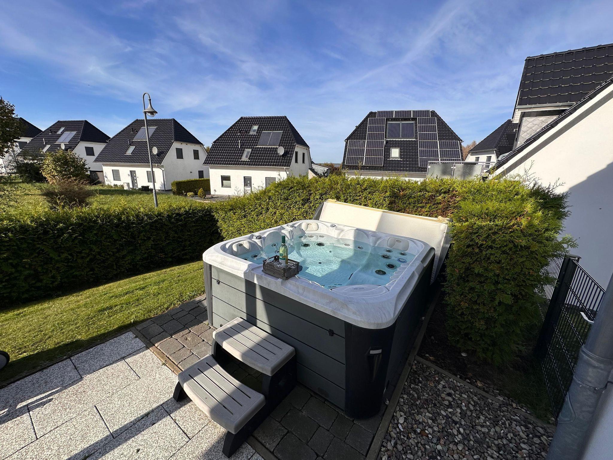 Der ganzjährig beheizte Außenwhirlpool mt 38 Grad Wassertemperatur und Hydromassagejets lädt zur Entspannung ein und ist auch bei kälterem Wetter ein Highlight.