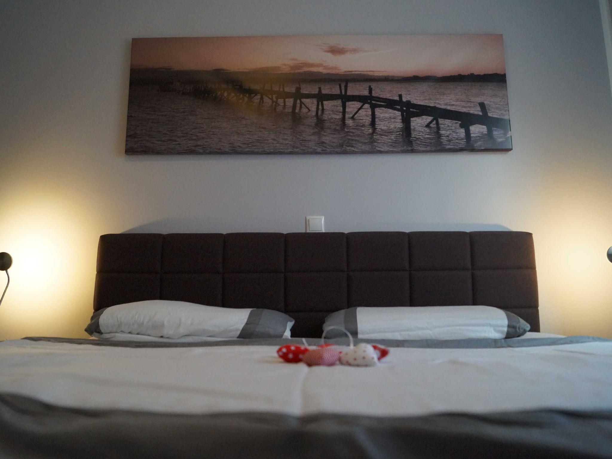 Die Schlafzimmer sind mit jeweils 180x200cm großen Doppelbetten ausgestattet.