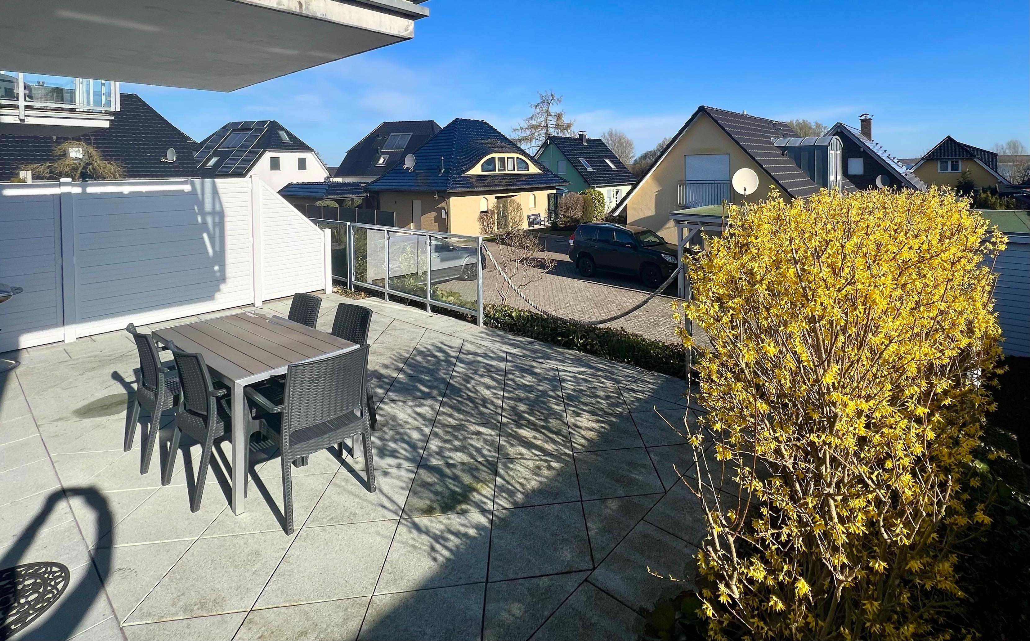 Die Kapitänsterrasse liegt in unmittelbarer Nähe zum Fleesensee.