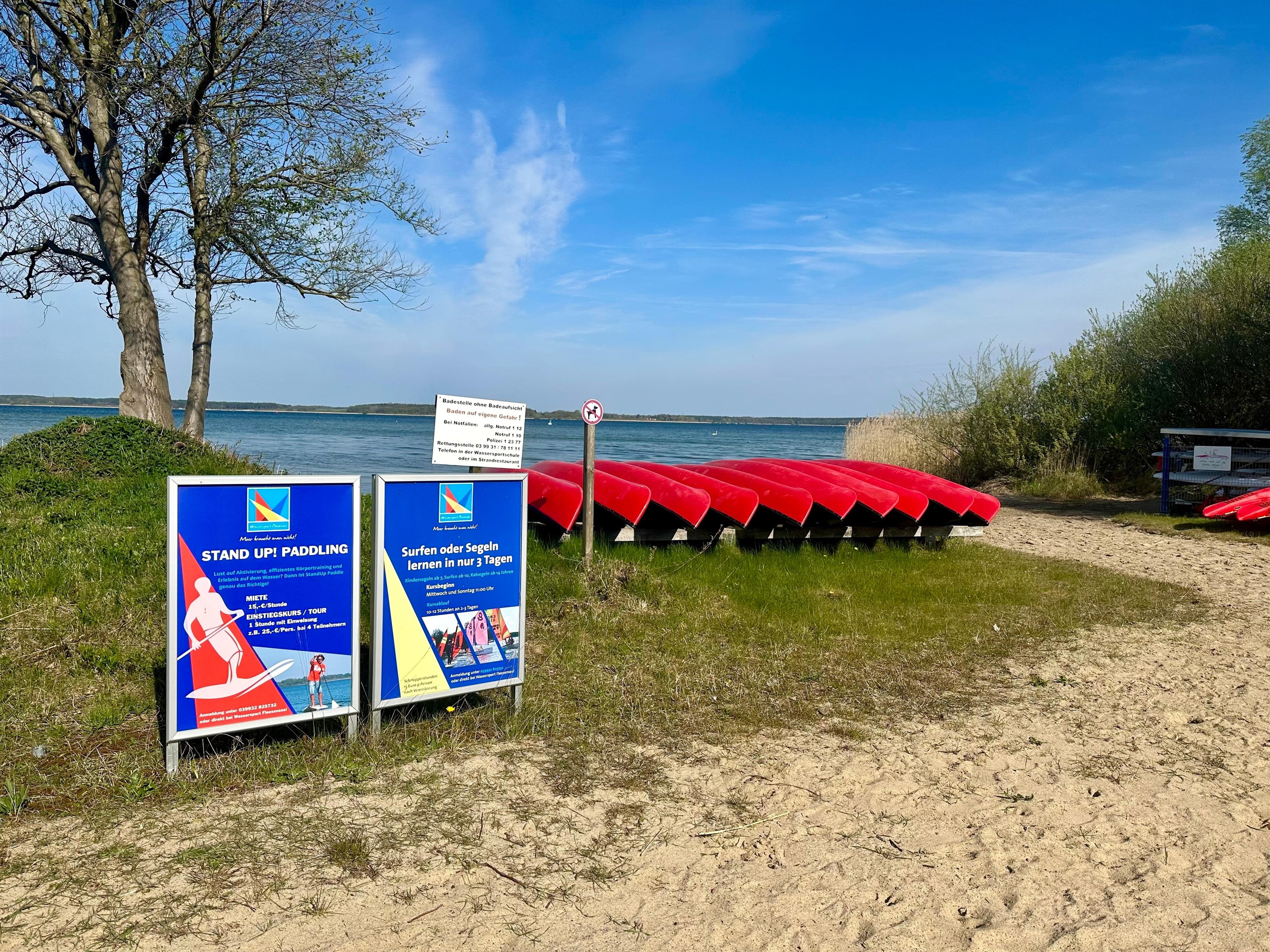 Der Robinson Beachclub, die Strandwirtschaft ,mehrere Spielplätze, der eingezäunte Hundestrand mit Zugang zum See so wie der Yachthafen sind fußläufig gut zu erreichen.