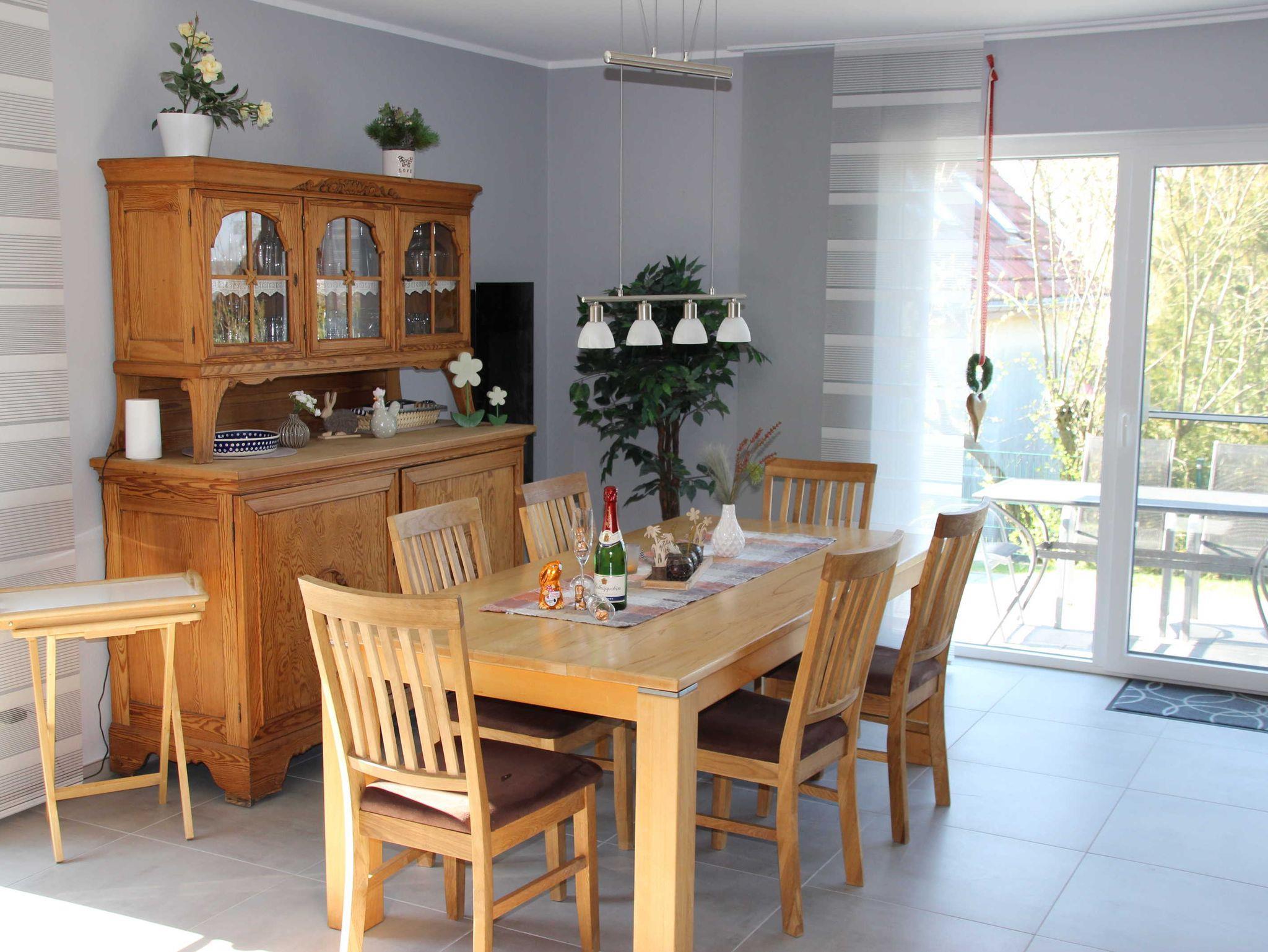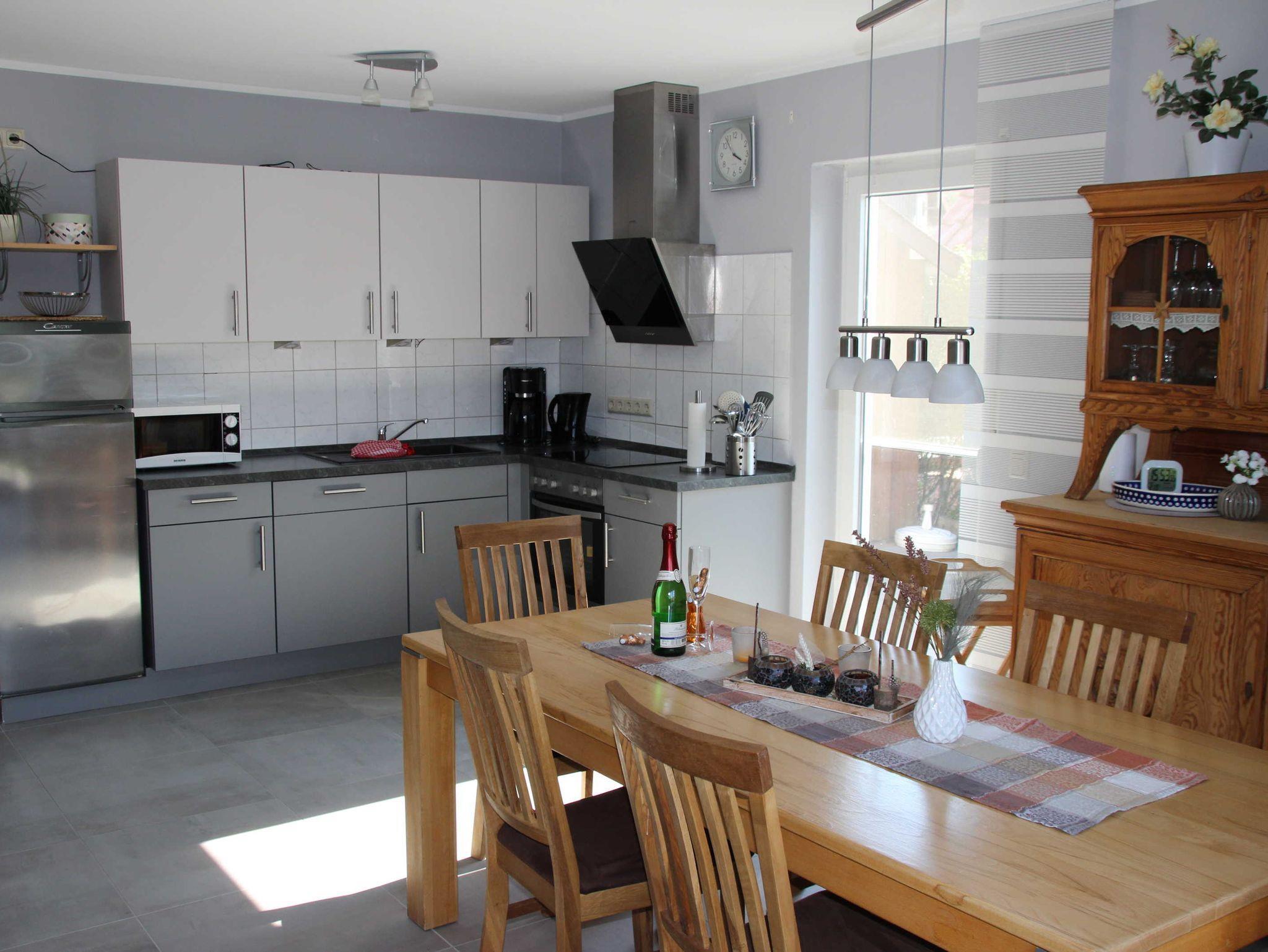 Im Erdgeschoss befindet sich der großzügige Wohn- und Essbereich, die voll ausgestattete Einbauküche,