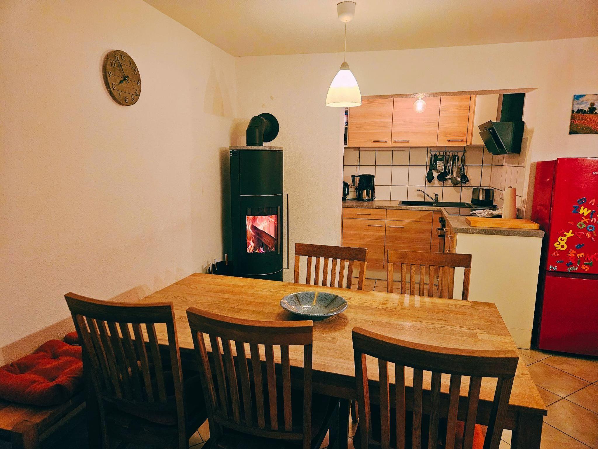Zur Ausstattung gehören zudem kostenfreies WLAN (mit schnellem Glasfaseranschluss), große Waschmaschine, Fön, kleine Spülmaschine, ein Backofen mit Ceran-Kochfeld & Dunstabzugshaube, Mikrowelle, Kühl-Gefrier-Kombi, Toaster, Kaffeemaschine, Wasserkocher, Mixer, hochwertiges Geschirr & Kochutensilien, Verdunklungsmöglichkeiten, Kuscheldecken & -kissen, teilweise Insektenschutzgaze in den Fenstern, ein Staubsauger, eine Spieleauswahl & ein Büchertauschregal.