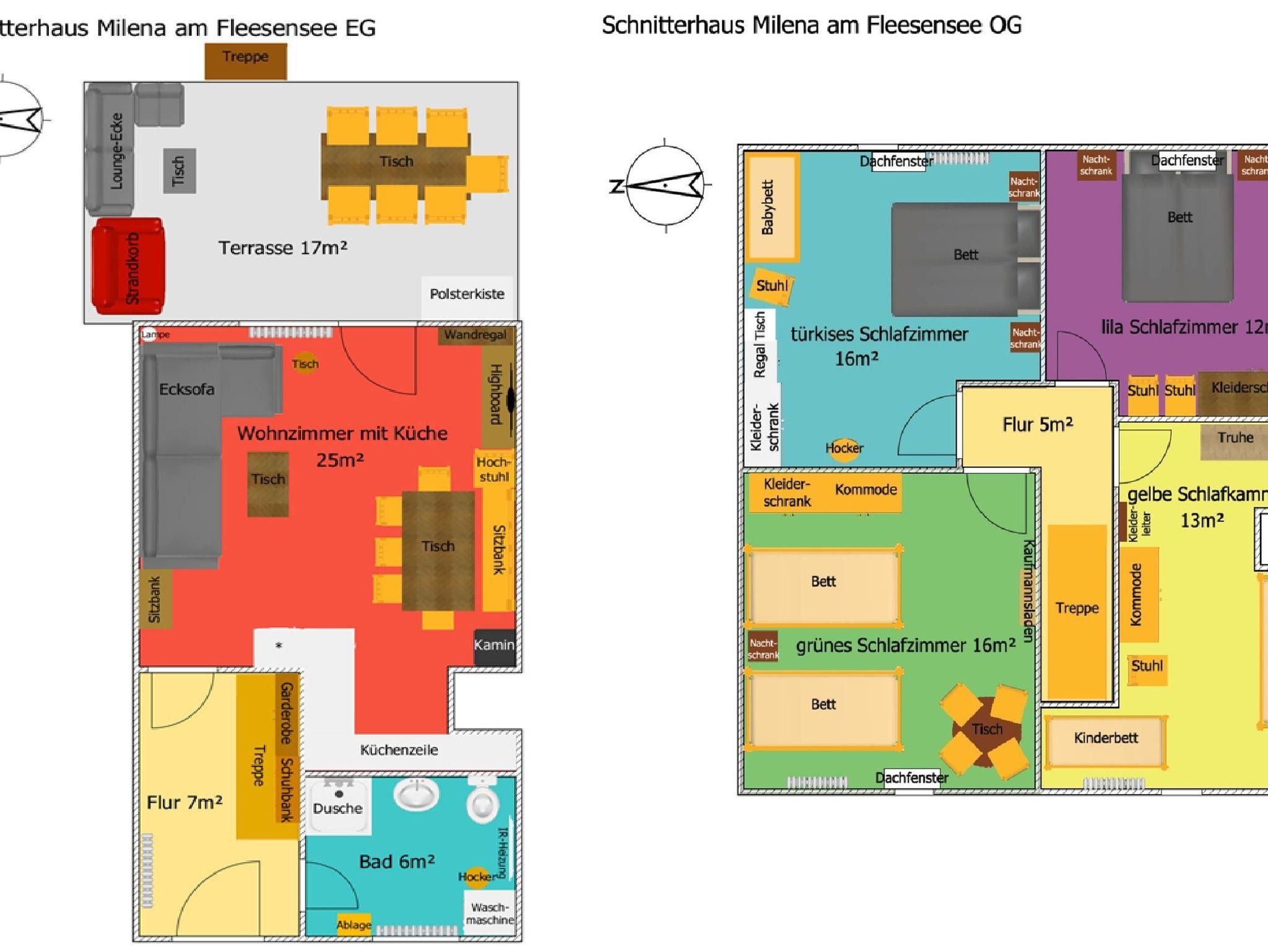 Für unsere kleinsten Gäste gibt es einen Hochstuhl, einen klappbaren Wickeltisch, ein zusätzliches Babygitterbett (bis 3 Jahre) & ein zusätzliches Kinderbett (bis ca. 8 Jahre) (beide nicht auf die max. 7 Personen & bis 3 Jahre auch nicht auf den Preis angerechnet), Kindergeschirr, Spielzeug in Haus & Garten sowie einen Bollerwagen, mit dem man sorgenfrei am Waldrand entlang alle Sachen zum 2 Minuten entfernten Strand transportieren kann.