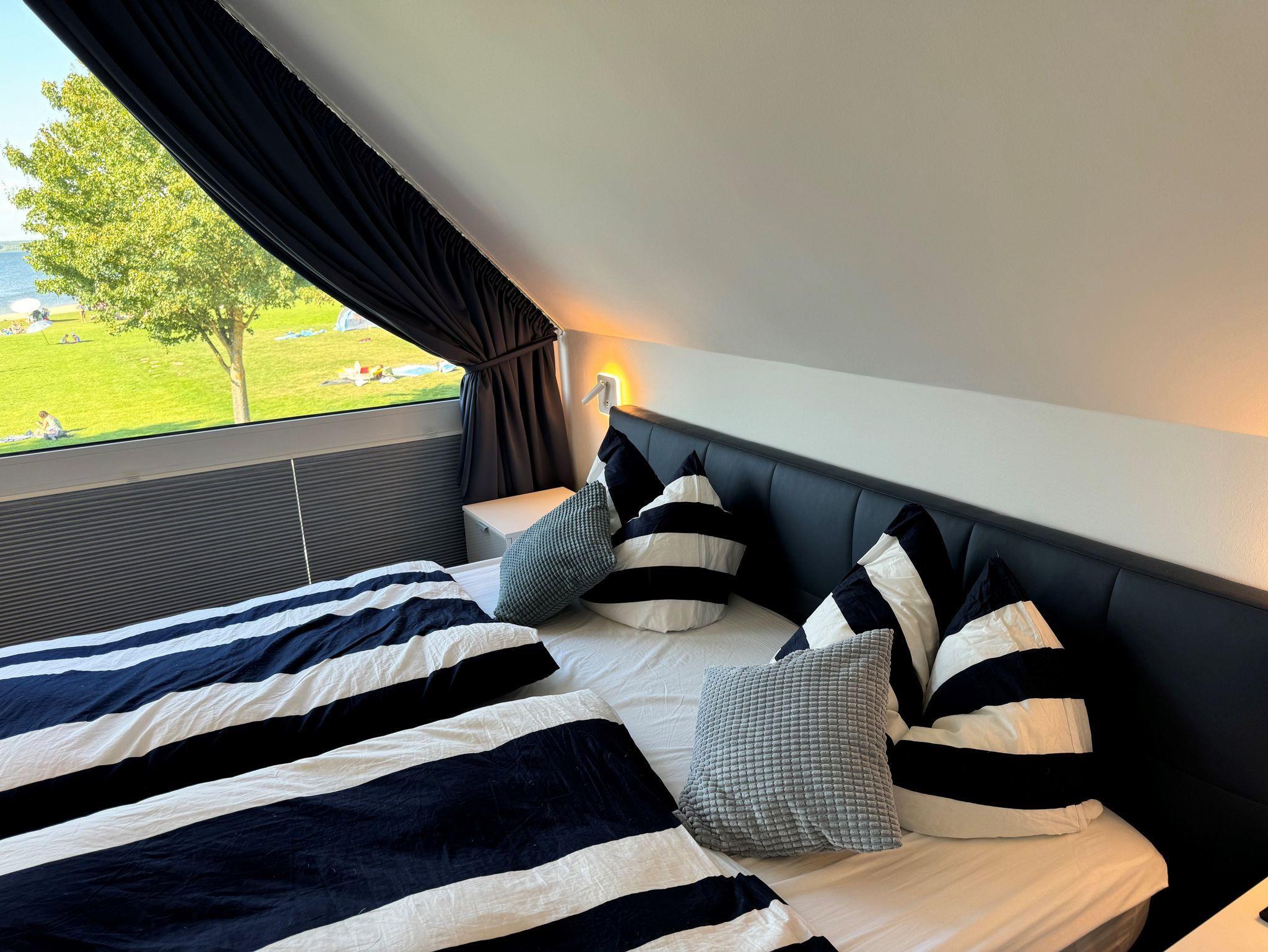 Willkommen in Ihrem Strandhaus am See ? ein luxuriöser Rückzugsort, der keine Wünsche offen lässt. Dieses Ferienhaus besticht durch seine direkte Seelage und bietet eine außergewöhnliche Kombination aus modernem Komfort und natürlicher Schönheit. Hier finden Sie die perfekte Balance zwischen Entspannung und exklusivem Wohnen. Das Strandhaus Marie-Team bietet auf 103m² puren Luxus und Komfort. Die beiden Schlafzimmer sind mit bequemen Boxspringbetten ausgestattet und garantieren erholsamen Schlaf. Dazu kommen zwei moderne Badezimmer, die höchsten Ansprüchen gerecht werden. Der großzügige Wohn- und Essbereich ist das Herzstück des Hauses. Mit seinem Kamin und den großen Panoramafenstern, die einen atemberaubenden Blick auf den See bieten, ist dieser Raum perfekt für entspannte Abende mit Familie und Freunden. Die moderne Küche lässt keine Wünsche offen. Mit hochwertigen Geräten und umfangreicher Ausstattung bietet sie alles, was Sie für kulinarische Highlights benötigen. Eine moderne Klimaanlage garantiert jederzeit angenehme Temperaturen im gesamten Haus.